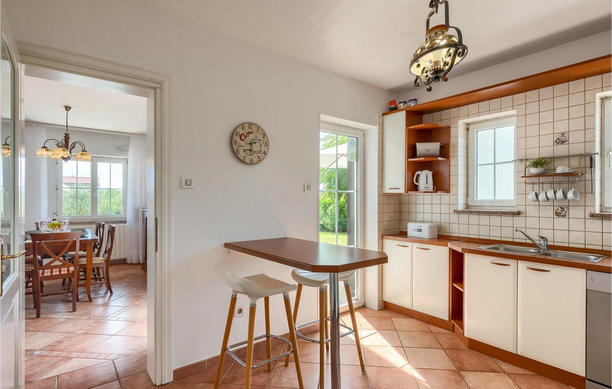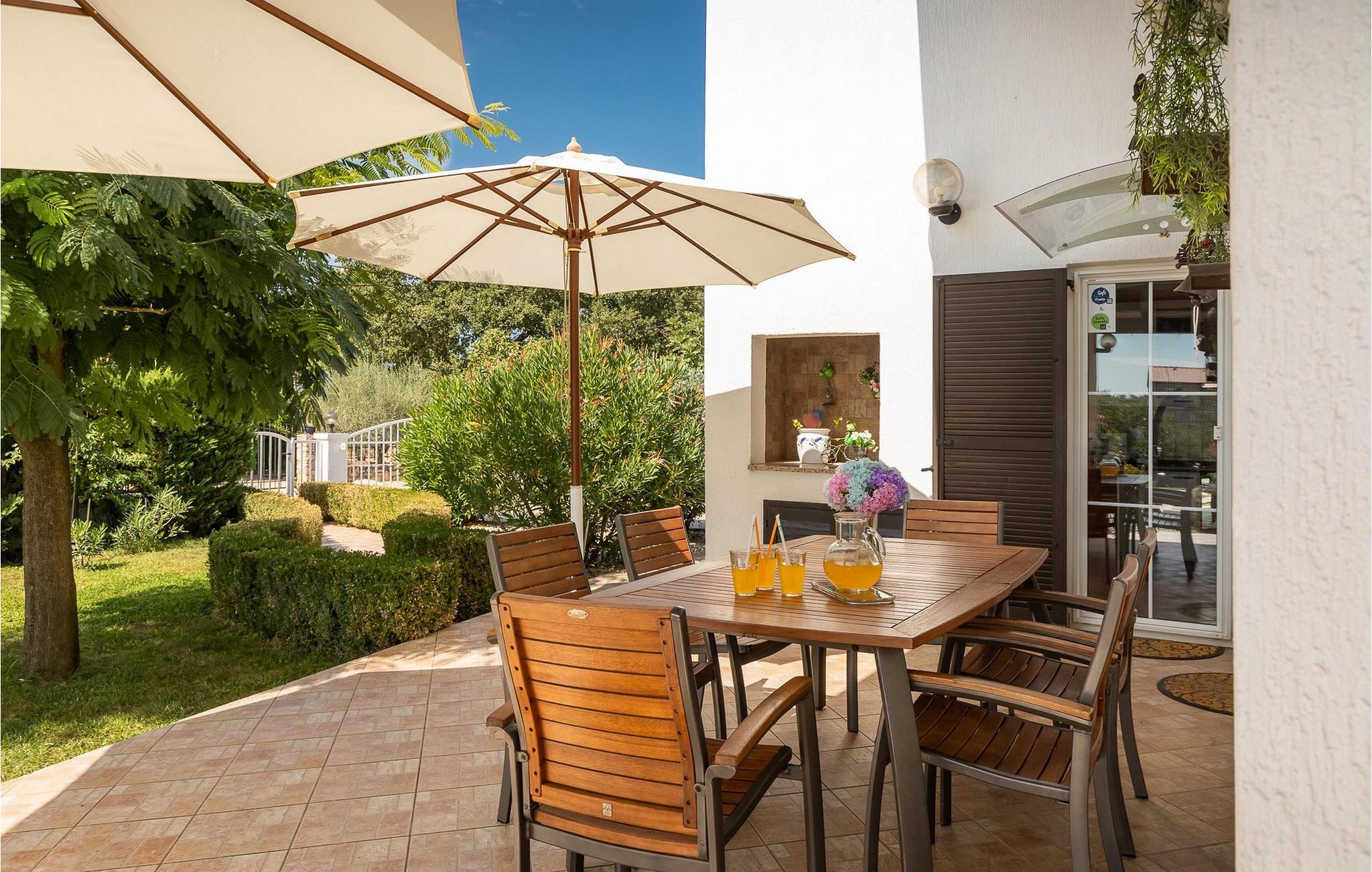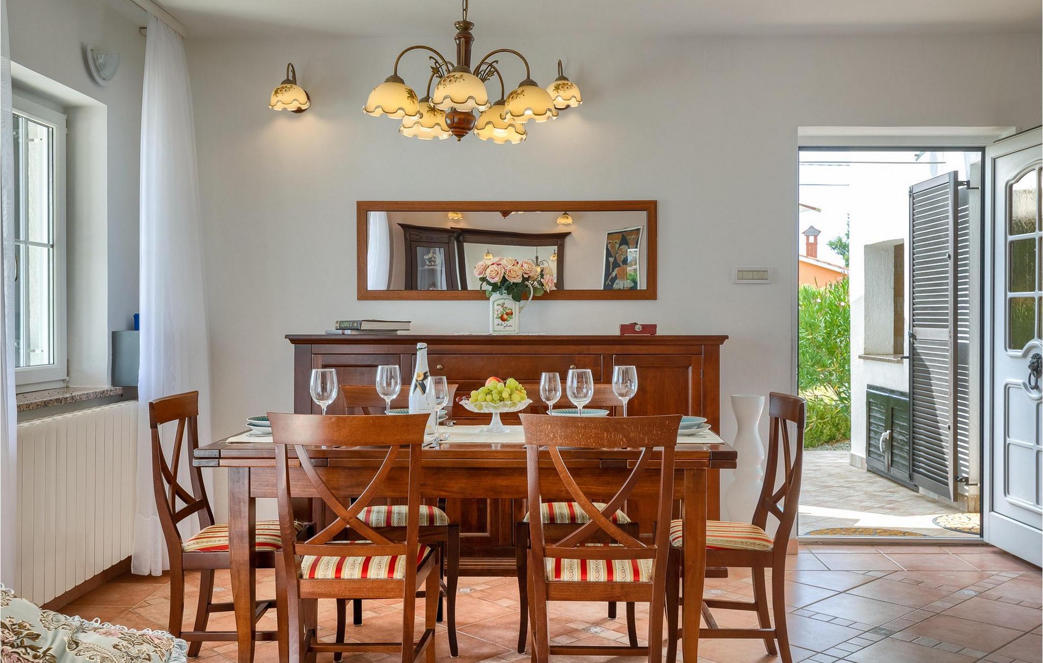 Även om villan bara ligger 5 kilometer från stranden, är det mycket troligt att du kommer att tillbringa större delen av din semester i villans fantastiska utomhusområde. Prova poolen, ta sedan skydd i skuggan av ett av parasollerna, ta en skiva vattenmelon och unna dig ett glas uppfriskande dryck för att svalka dig under varma sommardagar. Dina barn kan leka på lekplatsen medan du kopplar av i uteserveringen. Äventyrliga resenärer kommer att upptäcka att de 4 cyklar som finns tillgängliga i villan är det bästa sättet att utforska området runt villan, som ligger i en liten by nära turistattraktionen Porec. Dess läge nära havet kommer att glädja alla strandbesökare, eftersom den vackra Spadici-stranden liksom den berömda turistorten Zelena Laguna i Porec ligger bara en kort bilresa från villan. Porec erbjuder en mängd olika sten- och stenstränder och det vackra turkosa Adriatiska havet kommer att ta andan ur dig! Om du är mer intresserad av historia och kultur kan du ta en promenad genom det historiska centrumet och besöka Euphrasian Basilica, en UNESCO World Heritage Site. Istrien är också känt för sina goda transportförbindelser, så du kan snabbt nå alla andra populära turistmål som Novigrad, Umag eller Pula med bil. För den som vill ha en aktiv semester finns den vackra gruscykelvägen Parenzana i närheten. Leden sträcker sig längs en tidigare järnväg från Porec till Trieste och är verkligen det bästa sättet att lära känna Istrien på två hjul!