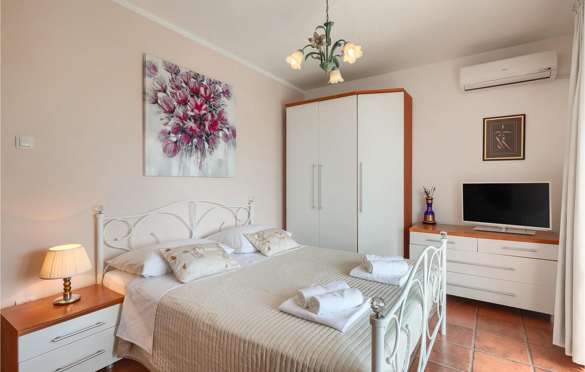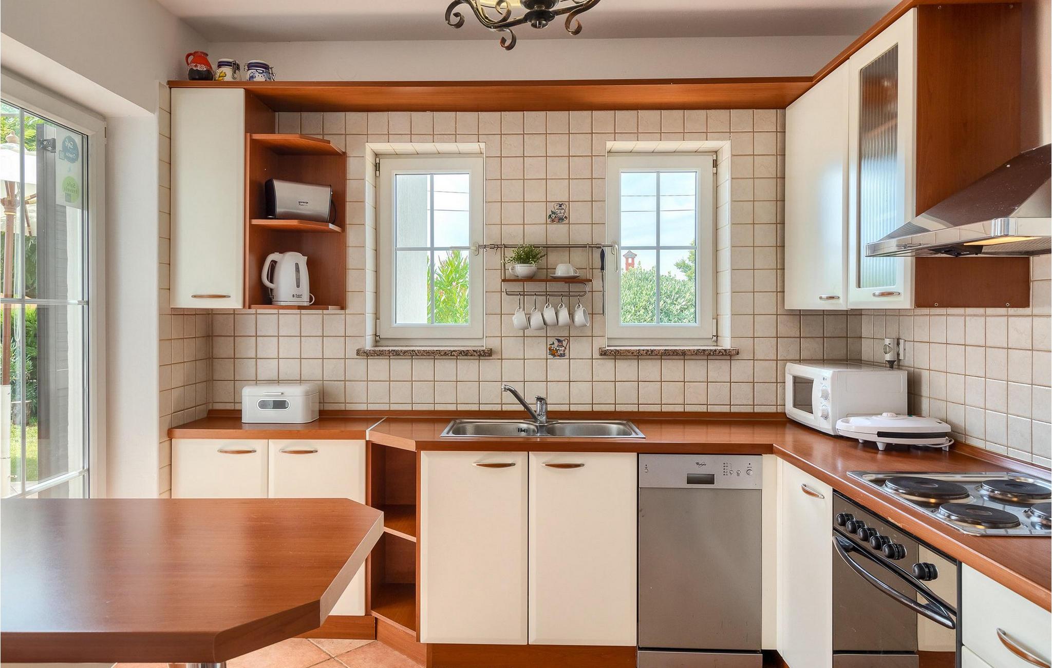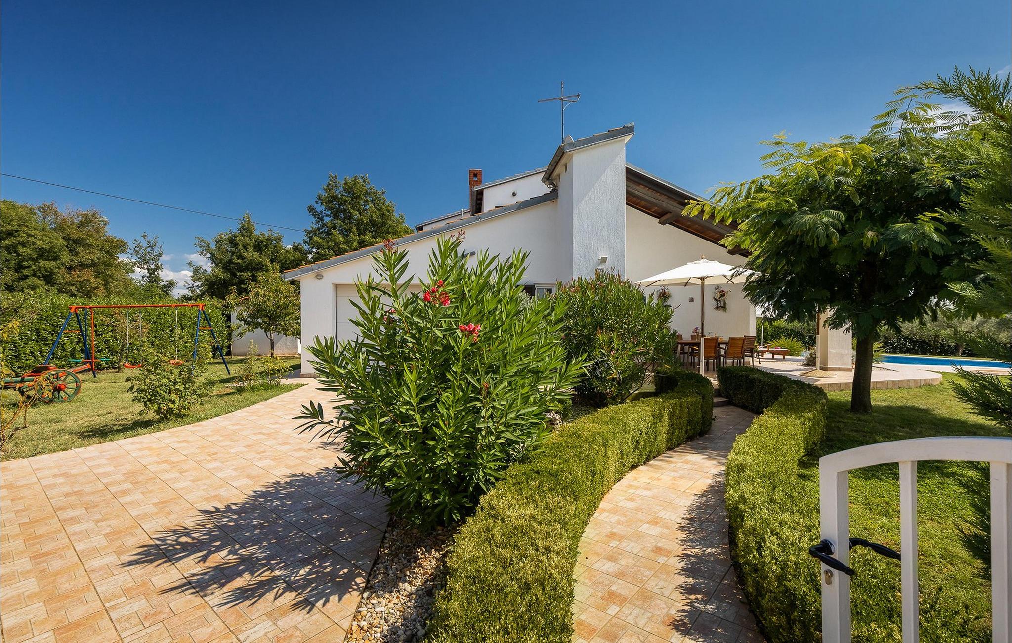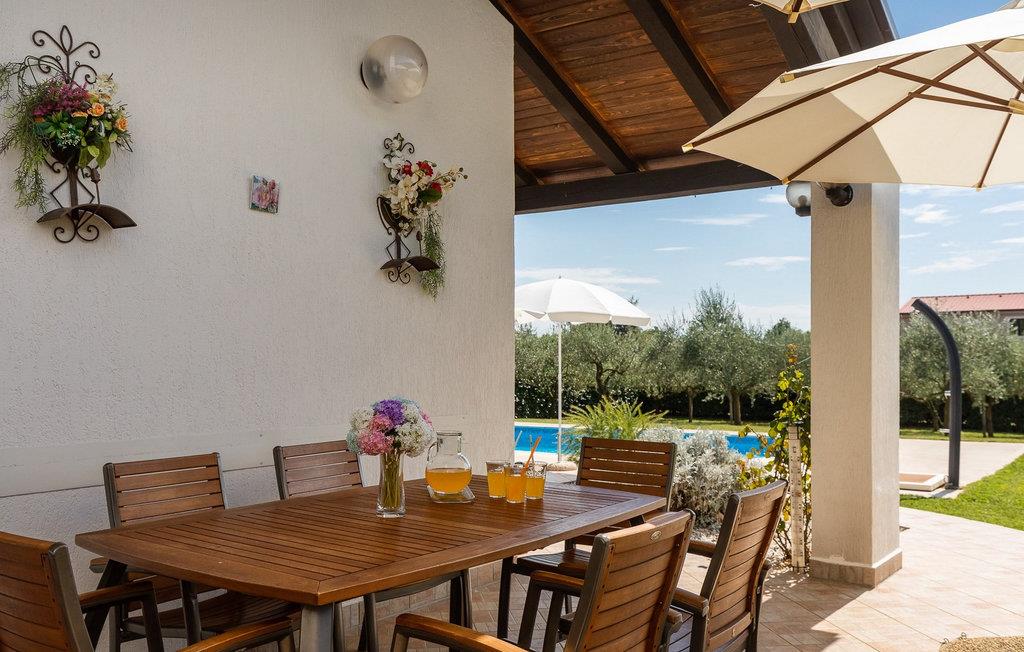 Även om villan bara ligger 5 kilometer från stranden, är det mycket troligt att du kommer att tillbringa större delen av din semester i villans fantastiska utomhusområde. Prova poolen, ta sedan skydd i skuggan av ett av parasollerna, ta en skiva vattenmelon och unna dig ett glas uppfriskande dryck för att svalka dig under varma sommardagar. Dina barn kan leka på lekplatsen medan du kopplar av i uteserveringen. Äventyrliga resenärer kommer att upptäcka att de 4 cyklar som finns tillgängliga i villan är det bästa sättet att utforska området runt villan, som ligger i en liten by nära turistattraktionen Porec. Dess läge nära havet kommer att glädja alla strandbesökare, eftersom den vackra Spadici-stranden liksom den berömda turistorten Zelena Laguna i Porec ligger bara en kort bilresa från villan. Porec erbjuder en mängd olika sten- och stenstränder och det vackra turkosa Adriatiska havet kommer att ta andan ur dig! Om du är mer intresserad av historia och kultur kan du ta en promenad genom det historiska centrumet och besöka Euphrasian Basilica, en UNESCO World Heritage Site. Istrien är också känt för sina goda transportförbindelser, så du kan snabbt nå alla andra populära turistmål som Novigrad, Umag eller Pula med bil. För den som vill ha en aktiv semester finns den vackra gruscykelvägen Parenzana i närheten. Leden sträcker sig längs en tidigare järnväg från Porec till Trieste och är verkligen det bästa sättet att lära känna Istrien på två hjul!