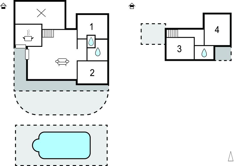 Två sovrum ligger på bottenvåningen, det ena är möblerat med en dubbelsäng och det andra med två enkelsängar. De andra två sovrummen ligger på övervåningen, båda med en dubbelsäng. Det finns ett badrum med dusch på varje våning. Glöm vardagens bekymmer och stress och unna dig äntligen en god natts sömn.