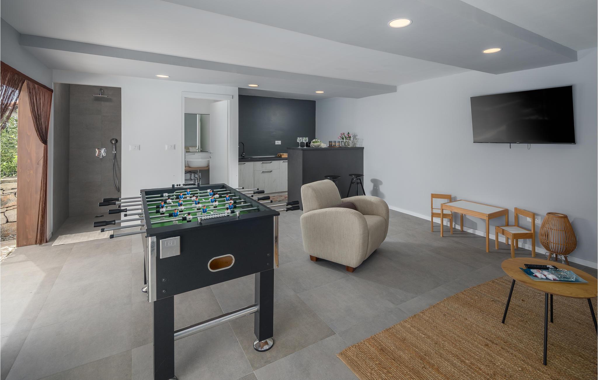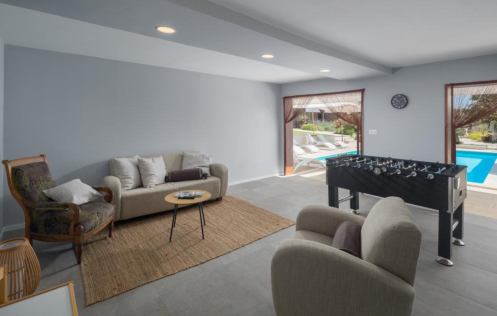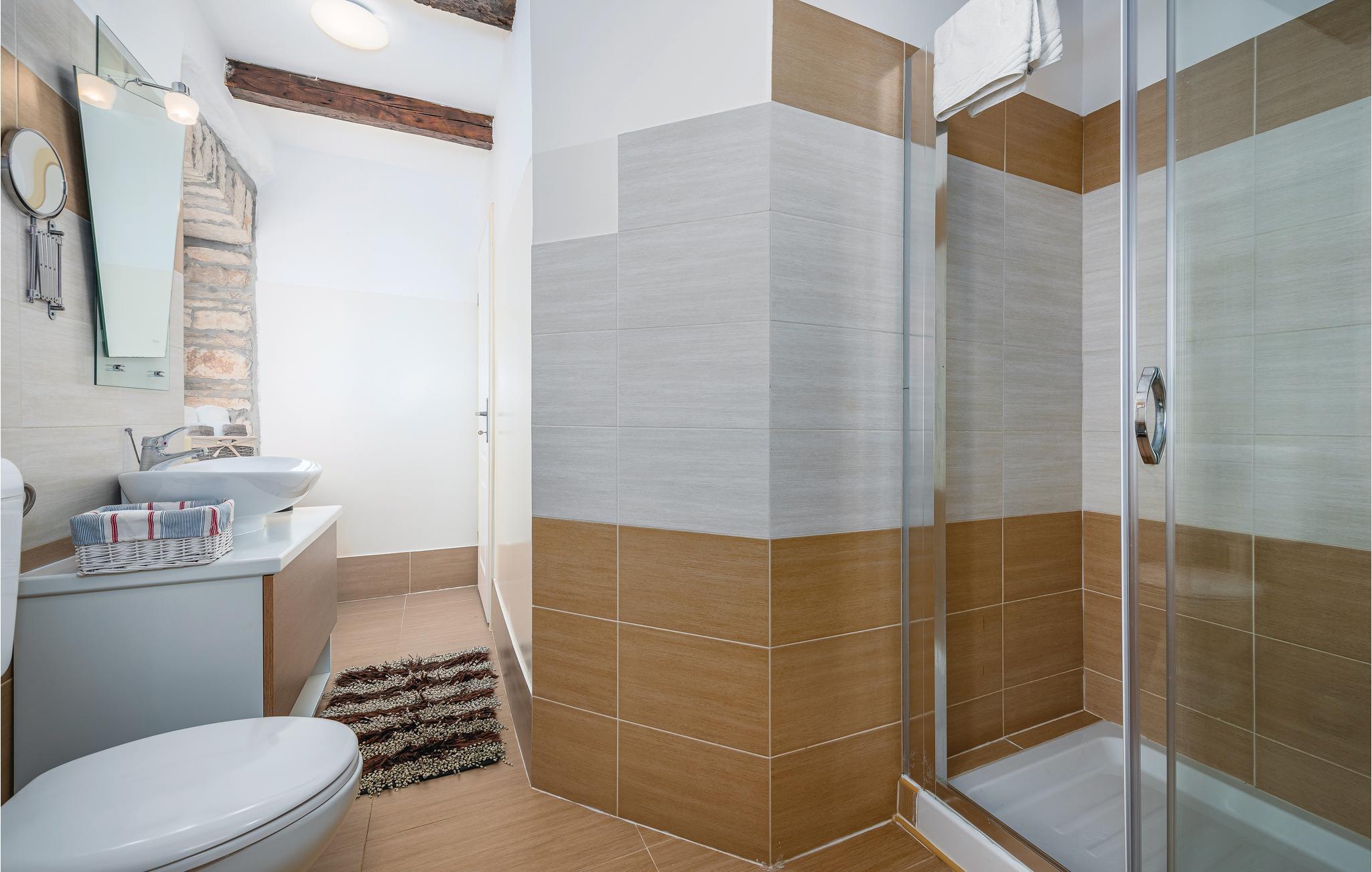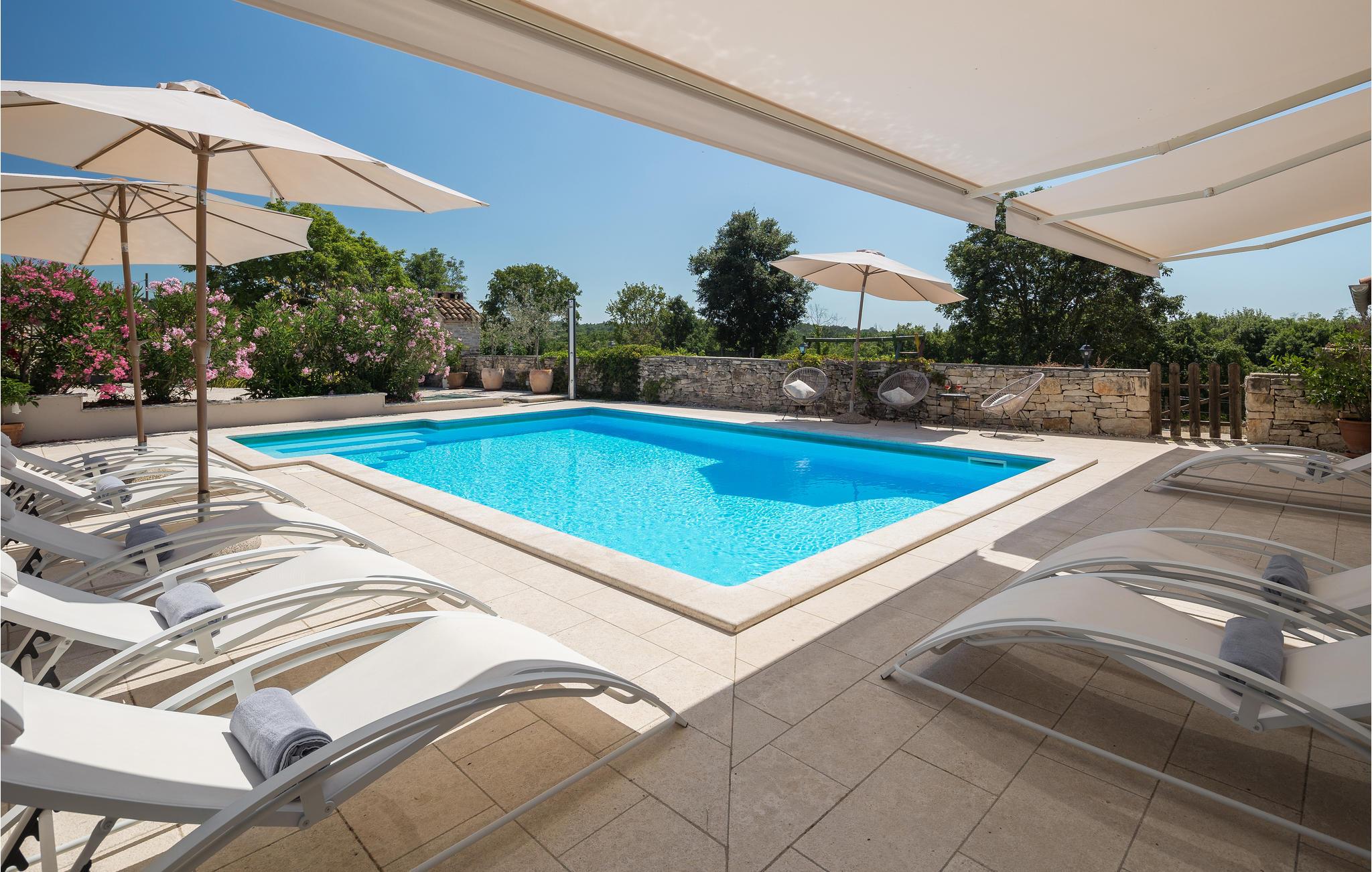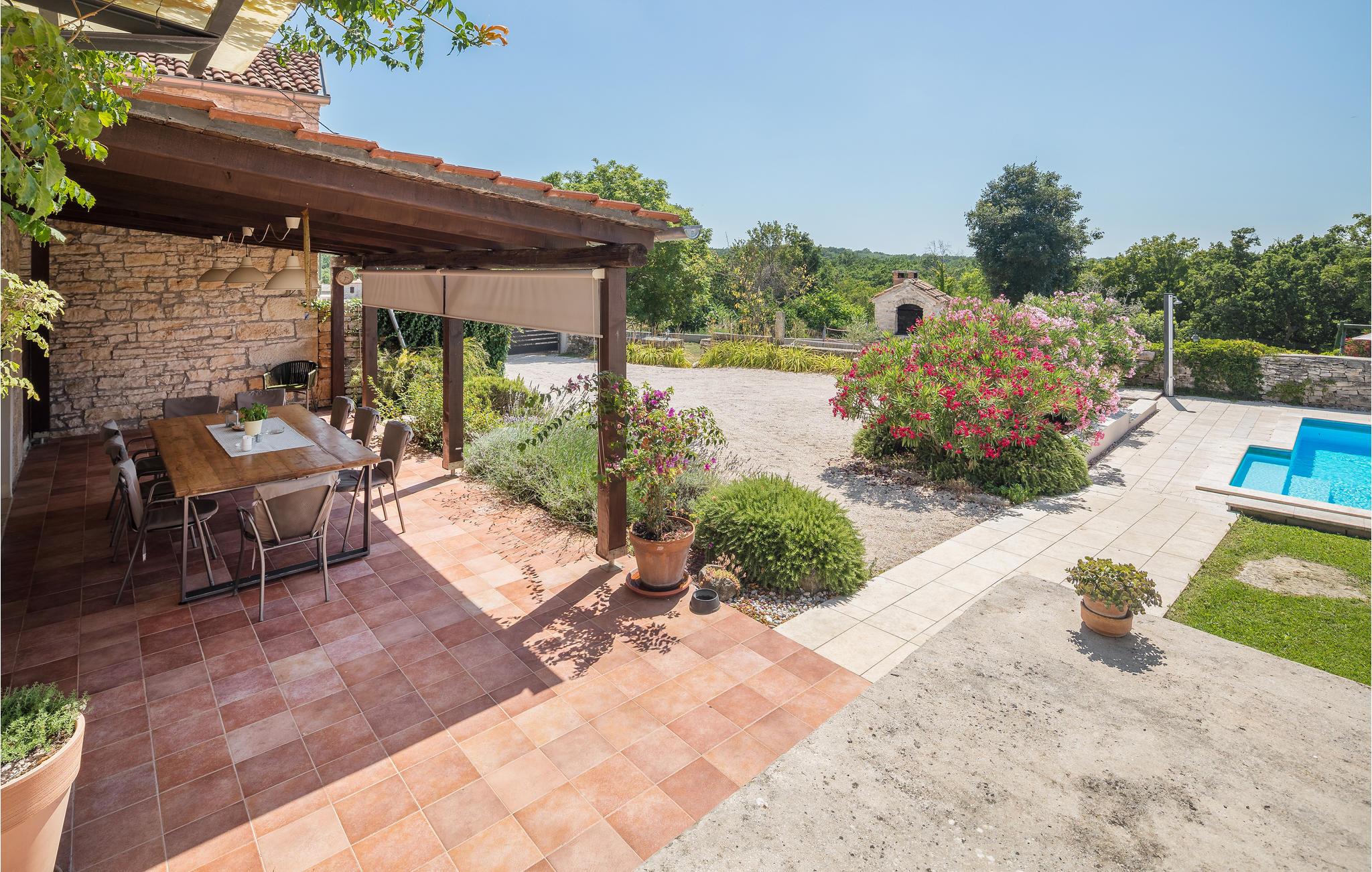 Detta autentiska stenhus ligger i byn Jakovici i Istrien. Det byggdes för många år sedan och renoverades med bibehållande av det traditionella utseendet. Interiören är anpassad till dagens livsstil och erbjuder allt du behöver för en semester. På bottenvåningen finns vardagsrum, kök, matsal, sovrum och badrum, medan det på övervåningen finns tre sovrum och två badrum. Den stora innergården består av två delar. Den första, helt slutna delen har en pool, solterrass och grill. Därefter kommer en gräsmatta för badmintonspel eller volleyboll.