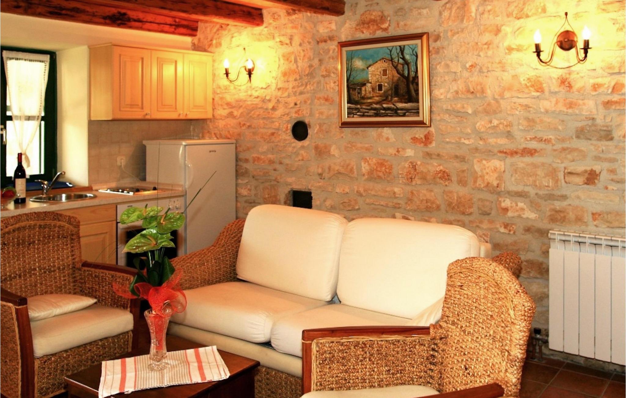 Villa Bassi ligger i en lugn by i centrala Istrien, men bara en kort bilresa från de turistiska kuststäderna. Villan har plats för upp till 3 vuxna och 1 barn, vilket gör den idealisk för familjer. Fastigheten är helt inhägnad och erbjuder en privat pool med solstolar att koppla av i. Det finns också en matplats utomhus och en grill där du kan tillaga läckra måltider och testa dina matlagningskunskaper. Villans bottenvåning består av ett vardagsrum med öppen planlösning och ett fullt utrustat kök och matplats, samt en toalett och en taverna med öppen spis. På första våningen finns två mysiga sovrum och ett badrum. Ett sovrum har en dubbelsäng och ett sovrum har en större enkelsäng. I vardagsrummet finns också en bäddsoffa som är lämplig för ett litet barn. Villan har 2 luftkonditioneringsenheter, internetuppkoppling och en parkeringsplats för 2 bilar. Låt dig förtrollas av den istriska charmen i Villa Bassi och njut av en lugn och avkopplande semester.Villa Bassi ligger i den lugna byn Jakovici i centrala Istrien som är den perfekta reträtten från det stressiga vardagslivet såväl som från de trånga turiststäderna. Kuststäderna som Porec och Rovinj ligger bara en kort bilresa bort. Där hittar du en mängd olika kaféer, barer och restauranger. Njut av det utsökta medelhavsköket som erbjuds på restaurangerna. Koppla av på de vackra stränderna och dyk ner i det kristallklara vattnet. "Konstnärernas stad Groznjan ligger på en kulle och erbjuder en fantastisk utsikt över det idylliska landskapet. Här anordnas många film- och musikfestivaler. Upptäck det fantastiska istriska landskapet genom att vandra eller cykla. Vi rekommenderar också de medeltida bergsstäderna Motovun och Groznjan. Besök amfiteatern i Pula eller nationalparken Brijuni. Istrien erbjuder verkligen allt man kan önska sig för en spännande men ändå avkopplande semester.