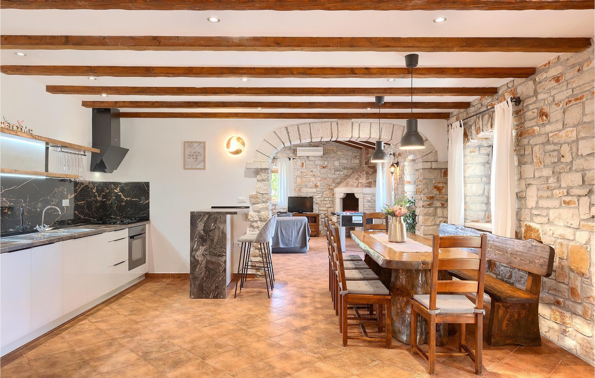 Den inbjudande gräsmattan i utomhusområdet inbjuder dig att njuta av din tid där och ligga bredvid poolen i en solstol under ett parasoll. Om parasollet inte ger tillräckligt med skugga och skydd finns det också en täckt terrass med en grill där du kan njuta av måltider tillsammans. Villan har en egen parkeringsplats för upp till tre fordonVillan ligger strax utanför och inom gångavstånd från byn Kringa. Kringa ligger i centrala Istrien, 5 kilometer söder om Tinjan på platsen för järnåldersbyggnader, senare en romersk fästning, den näst största bosättningen i kommunen Tinjan. Regionen är känd för sin mat och det finns många bra restauranger i närheten. Det inre av Istrien med bergsbyar och vackra landskap är perfekt för bilkörning, cykling och vandring. Den adriatiska kusten och turistorten Porec, Istriens alla stränder, alla historiska platser och andra intressanta platser ligger bara en kort bilresa bort. En livsmedelsaffär, en bar och en utmärkt taverna ligger inom gångavstånd. Pula och nationalparken Brijuniöarna ligger 45 minuter bort. Från Porec kan du också ta en båttur till Venedig i Italien.