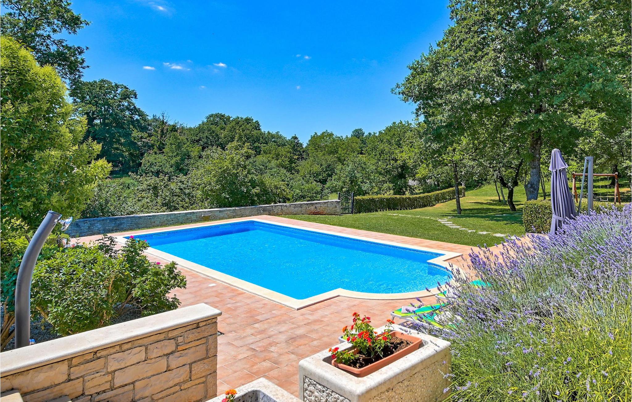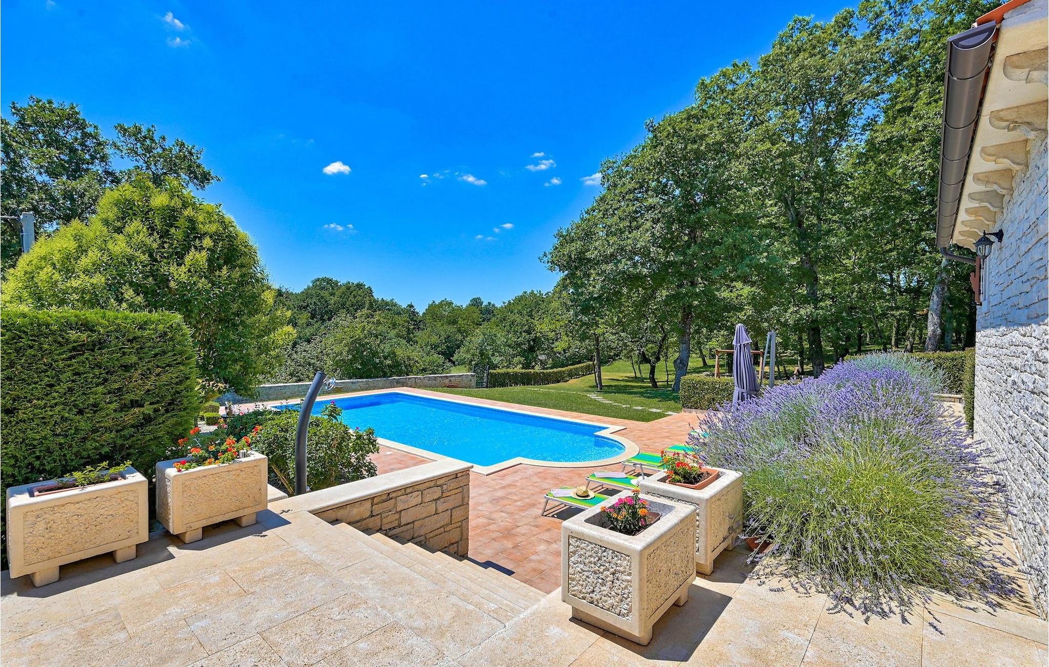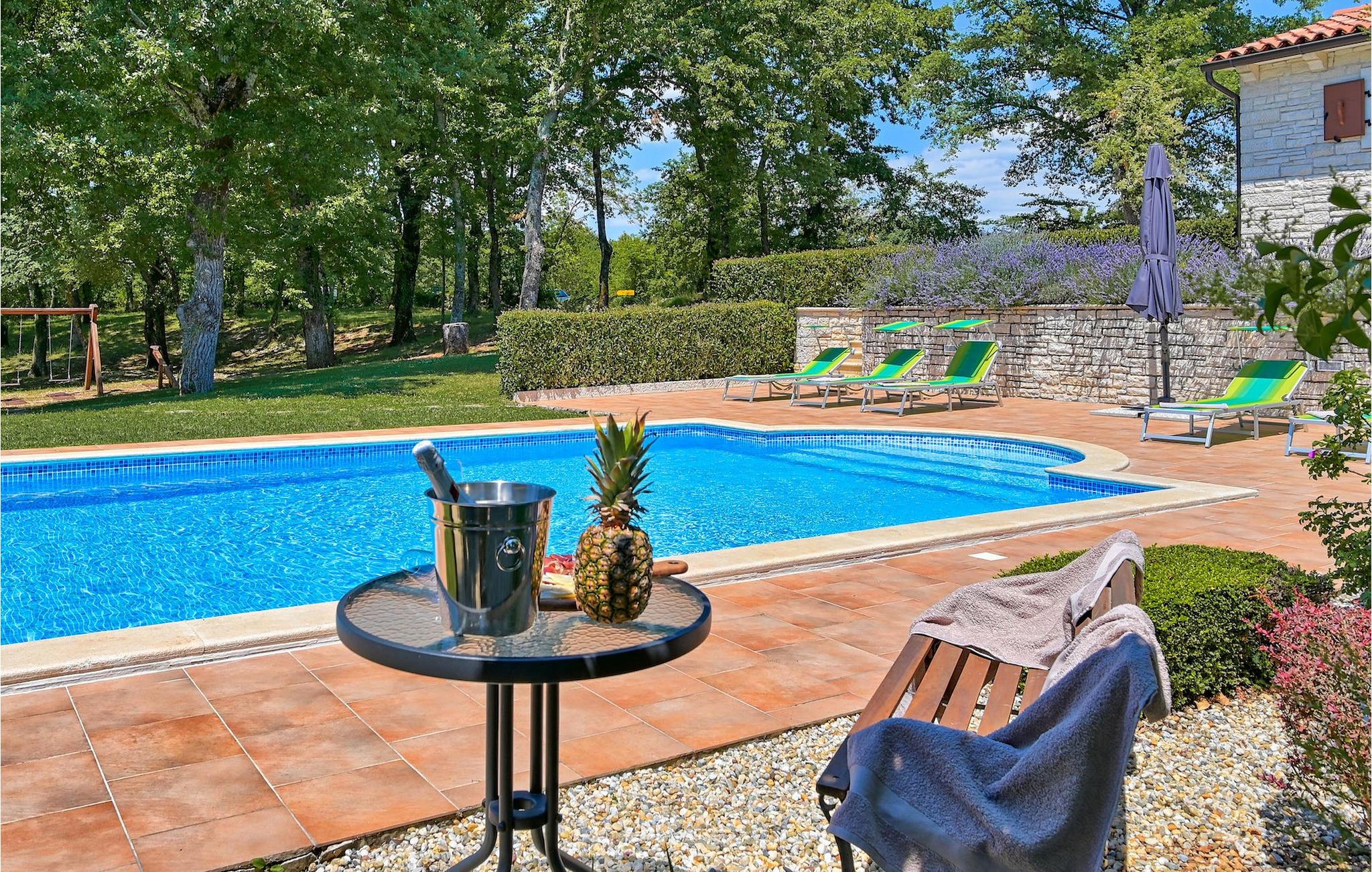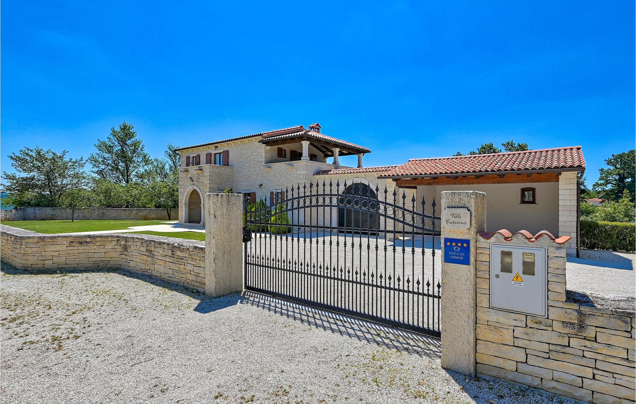 Om du vill tillbringa din semester i en charmig villa omgiven av grönska, är Villa Kata det perfekta valet för dig. Villan ligger i den vackra byn Kringa nära Porec och kan rymma upp till 8 personer. På bottenvåningen i denna villa hittar du ett fullt utrustat kök, från vilket ett rymligt vardagsrum med öppen spis sträcker sig. Bredvid finns ett sovrum med eget mysigt badrum. På övervåningen finns de återstående två sovrummen med dubbelsängar, var och en med eget badrum. Hela interiören utstrålar värme från färgtoner som är mycket lugnande och avkopplande. Från ett sovrum har du tillgång till en härlig terrass där du kan njuta av en hisnande utsikt över de vackra omgivningarna. Men du kommer att älska att spendera tid ute eftersom denna villa erbjuder 3900m2 grönt utrymme. Utanför hittar du en rymlig pool med solstolar och en utomhusdusch, samt en grill och trädgårdsmöbler. Men det är inte allt! Den viktigaste egenskapen hos denna villa är en lekplats där dina barn kan ha kul medan du kopplar av vid poolen.