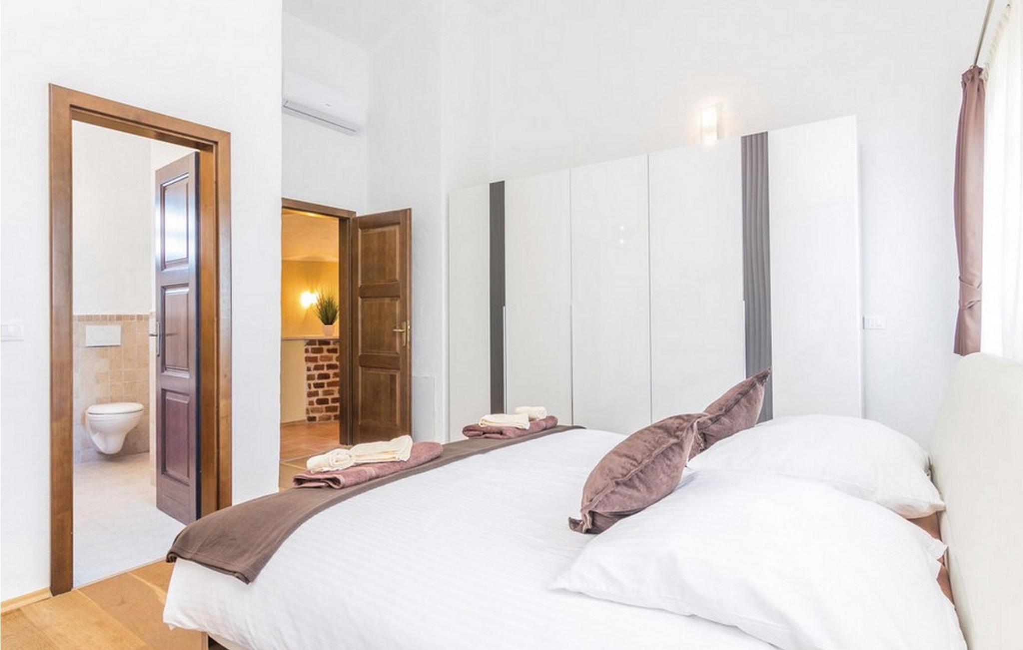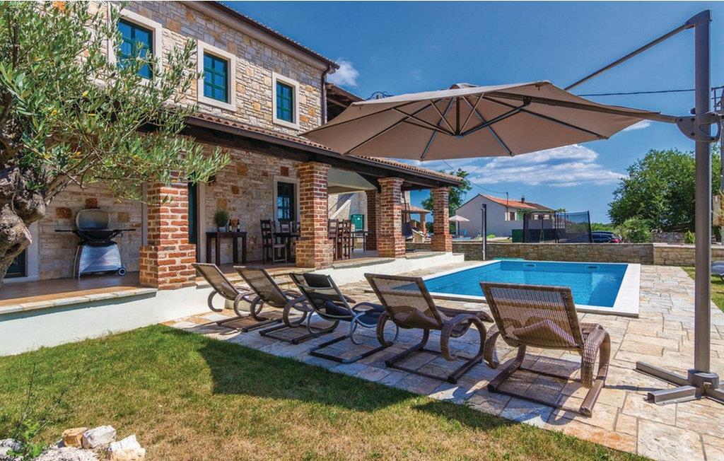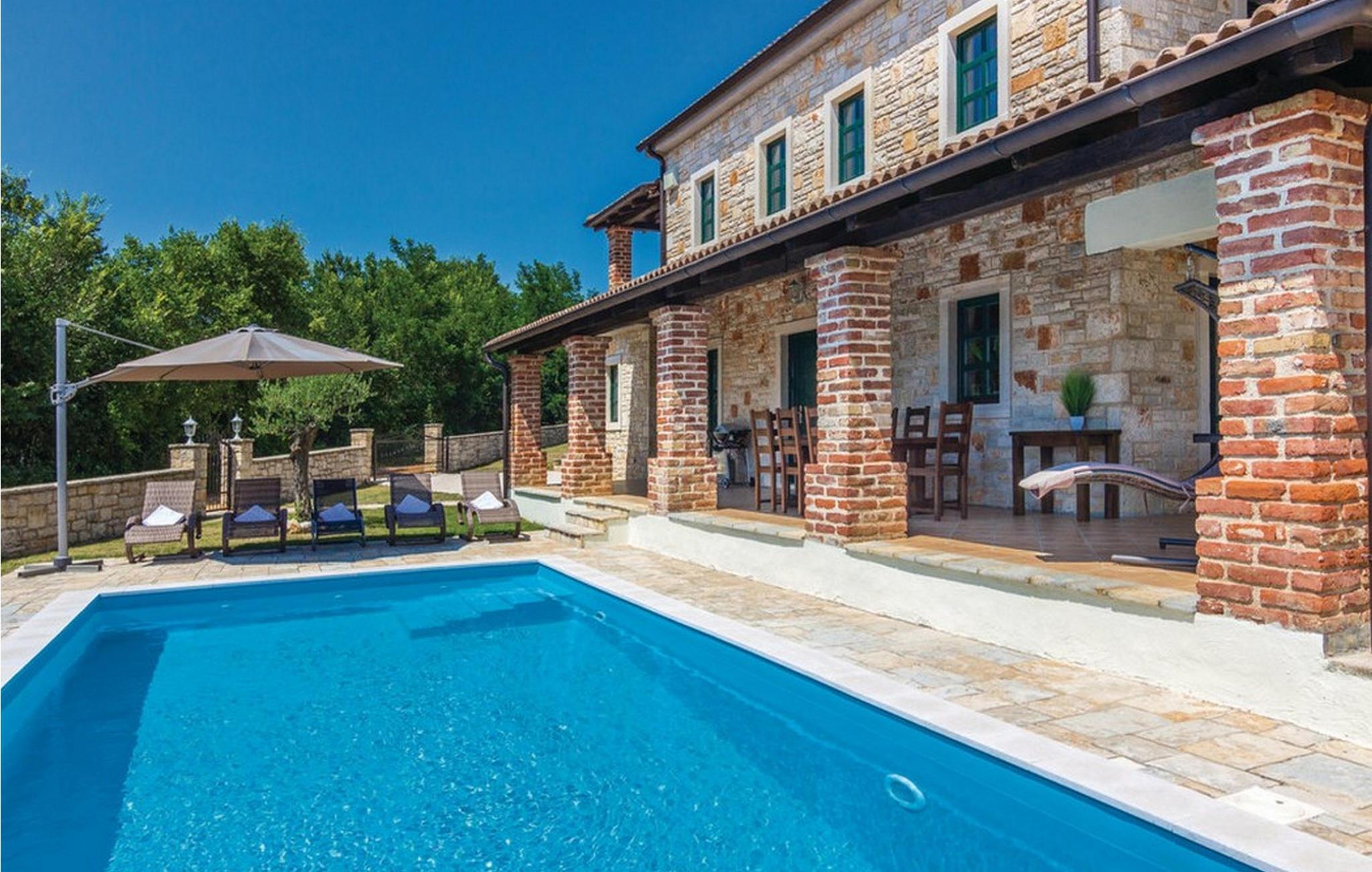 Villa Celine Istria ligger i staden St Lovre? i det vackra Istrien. Detta vackra traditionella istriska stenhus är perfekt för alla natur- och grönskaälskare, liksom för dem som söker lugn och avkoppling. I kontrast till exteriören är interiören i villan modern och minimalistisk. Villan har 4 sovrum med dubbelsängar. Ett av rummen ligger lite längre bort från de andra och har eget badrum och en del av terrassen, vilket gör det perfekt för dem som vill njuta av absolut avskildhet. Det finns också 3 rymliga badrum med badkar, ett med duschkabin och en separat toalett. Här finns också ett fullt utrustat, charmigt kök med matplats, ett mysigt vardagsrum med en vacker öppen spis och tre täckta terrasser, perfekt för en eftermiddagspaus. Villan har också golvvärme. Förutom en pool (32 m²) omgiven av solstolar (8), där du kan ta ett uppfriskande dopp varje dag, finns det också en grillplats och trädgårdsmöbler på innergården där du kan koppla av helt privat med ett gott glas vin och förbereda färsk mat för din familj och vänner. För sportiga gäster finns det en tyngdlyftningsmaskin samt en gunga för de små och en parkeringsplats för tre bilar. Sv. Lovre? är en av de bäst bevarade medeltida städerna i Istrien, känd för sina massiva murar och torn från den venetianska perioden, samt många kulturella och historiska monument. De underbara restaurangerna, tavernorna och pizzeriorna i vackra omgivningar lovar dig stunder av oförglömliga kulinariska läckerheter. Förutom den oförglömliga smaken av det traditionella istriska köket erbjuder St Lovre? dig olika underhållnings- och rekreationsmöjligheter, till exempel cykelleder, vandring, ridning, fiske i sötvatten, zip-line ovanför den berömda Pazin-grottan och olika wellness-, spa- och spa-erbjudanden fitnesscenter. Unna dig en perfekt semester i Sv. Lovre? och Villa Celine. *Vaktmästare och nyckelutlämning på plats. Husdjur är tillåtna på detta boende enligt ägarens bedömning eller mot en avgift.