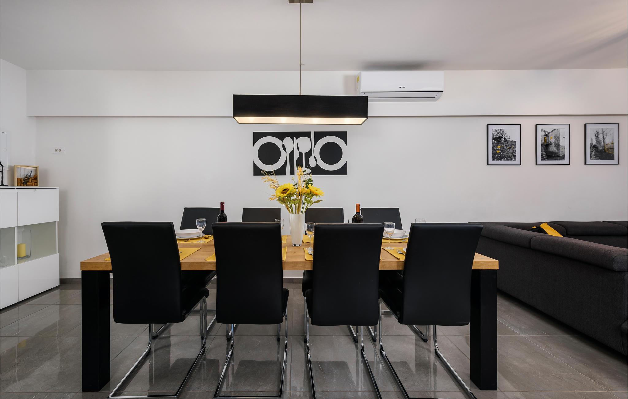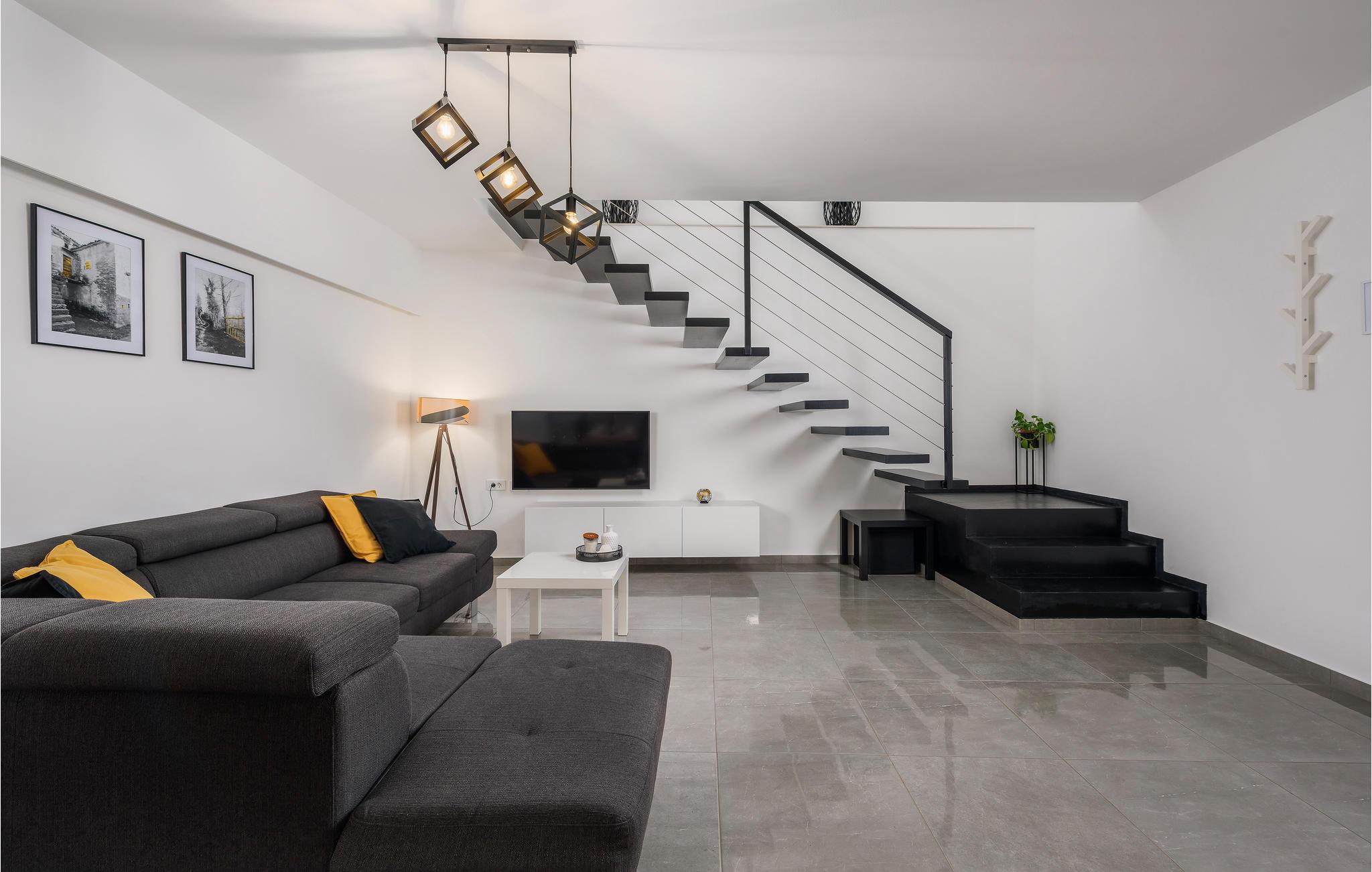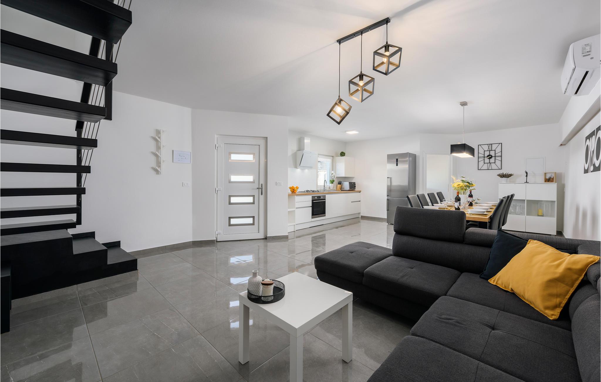 Detta nybyggda, särskilt moderna hus erbjuder dig semesterkomfort av en speciell typ. Du kan se fram emot en elegant inredning och en ljus, vänlig atmosfär i alla rum på båda våningarna, från sovrummen till det öppna köket/vardagsrummet med matplats.