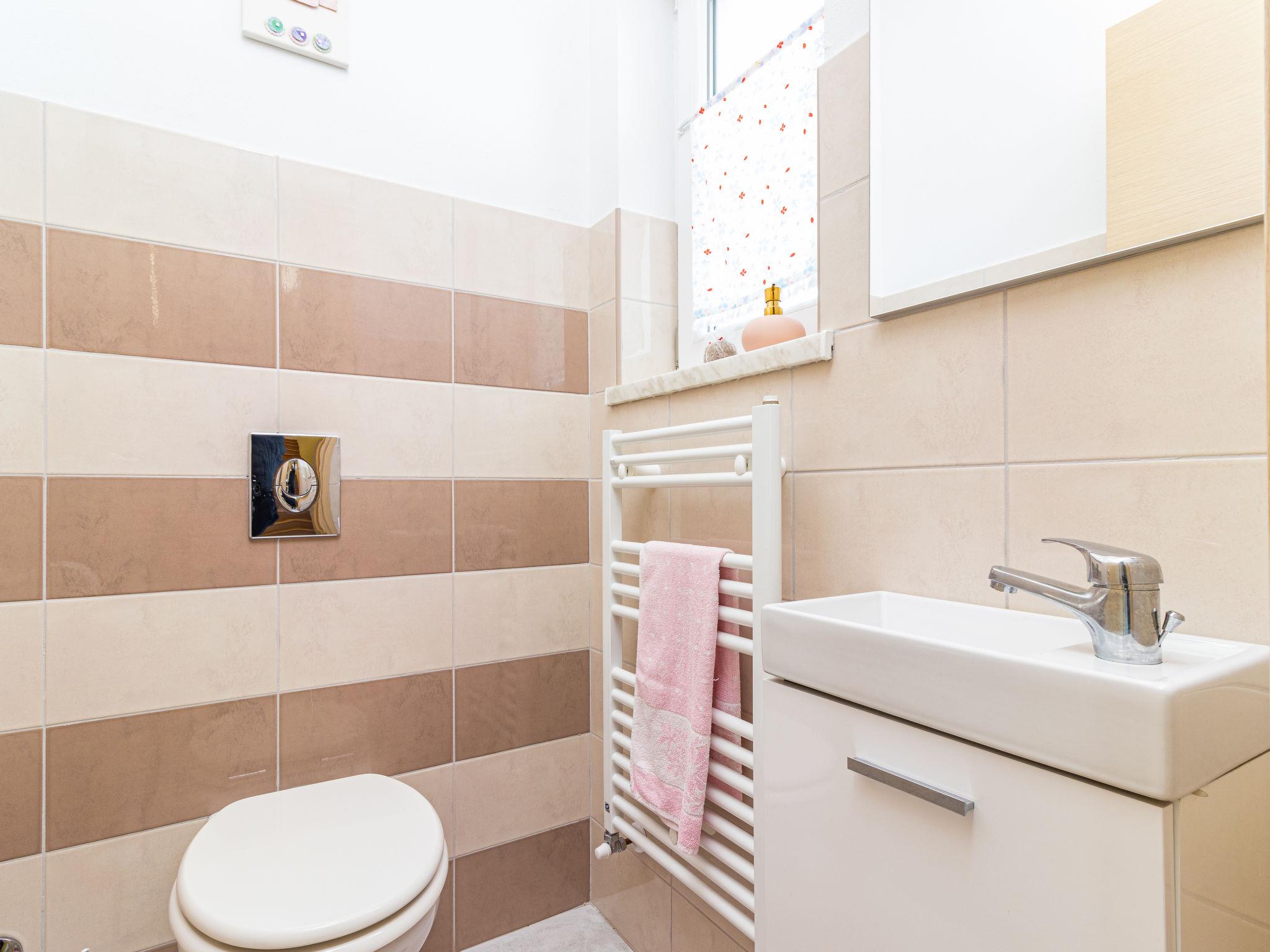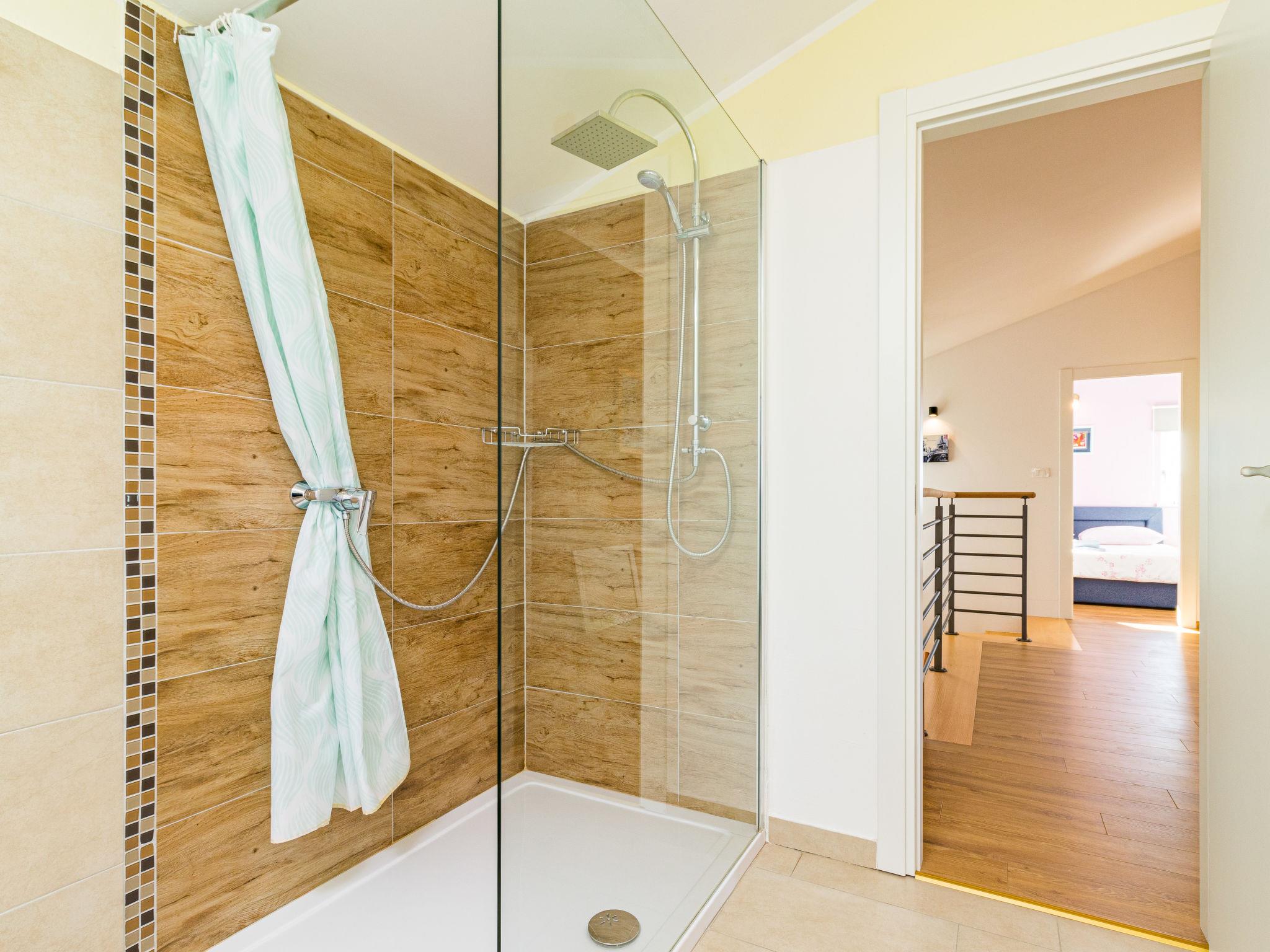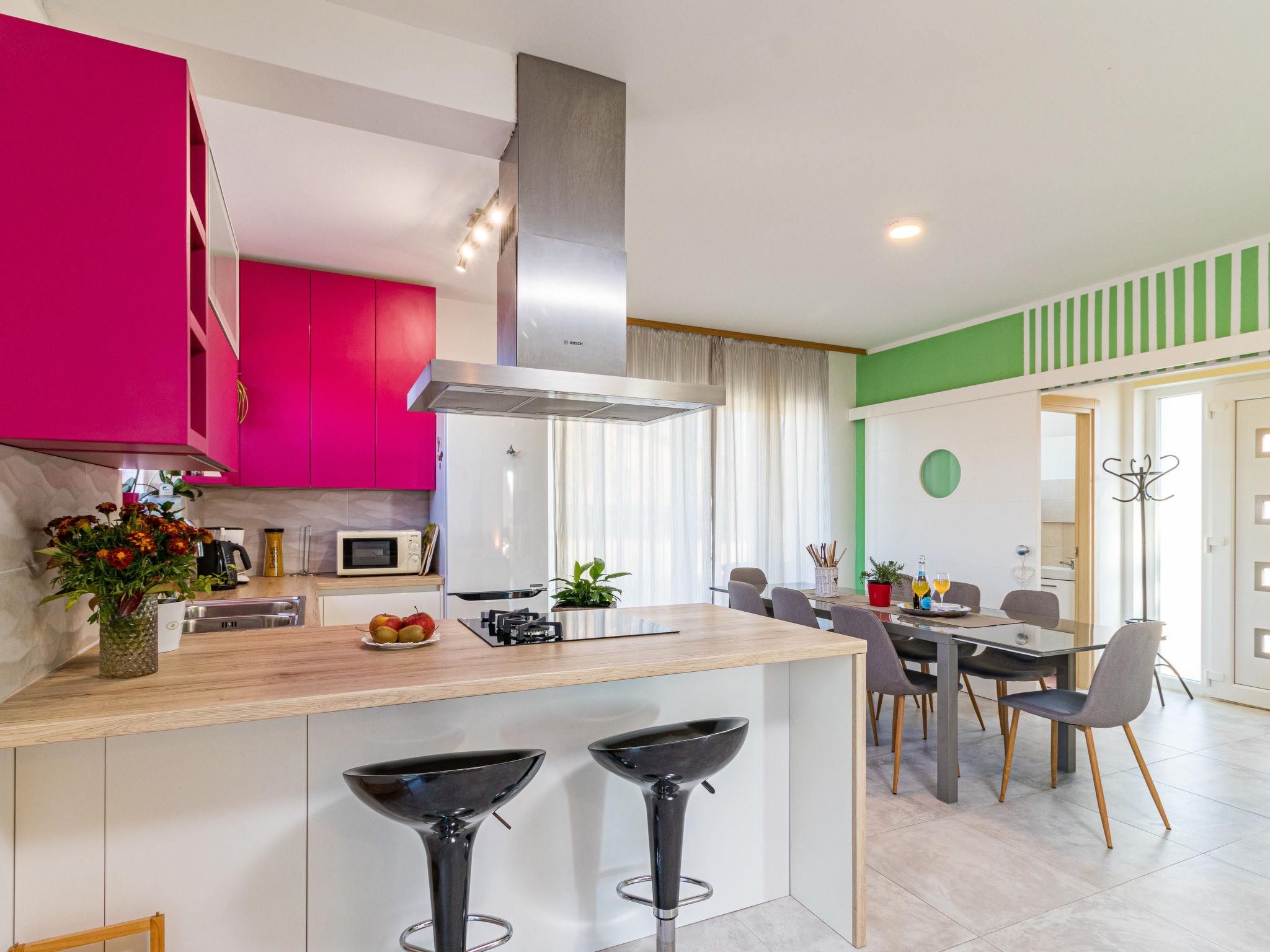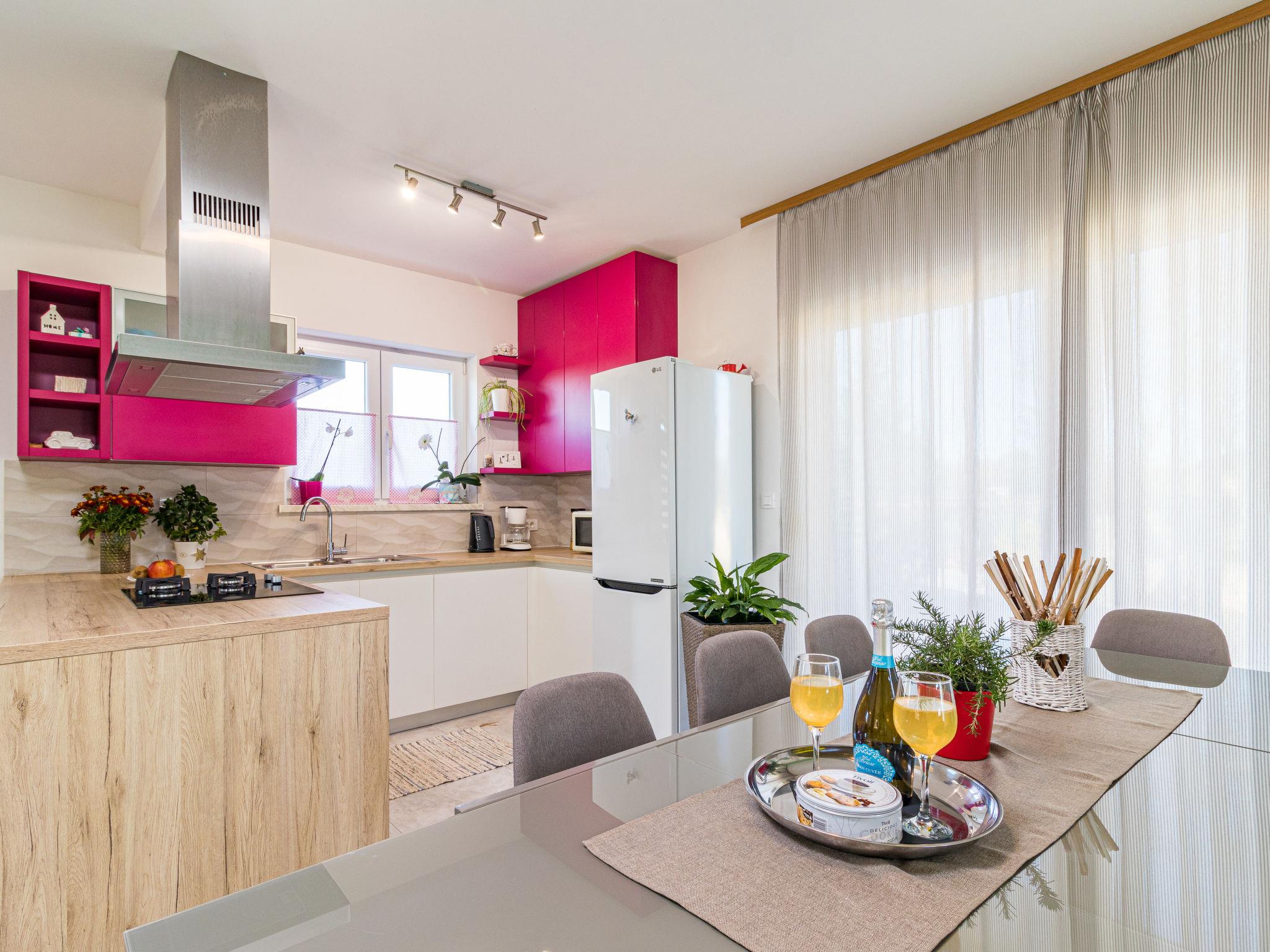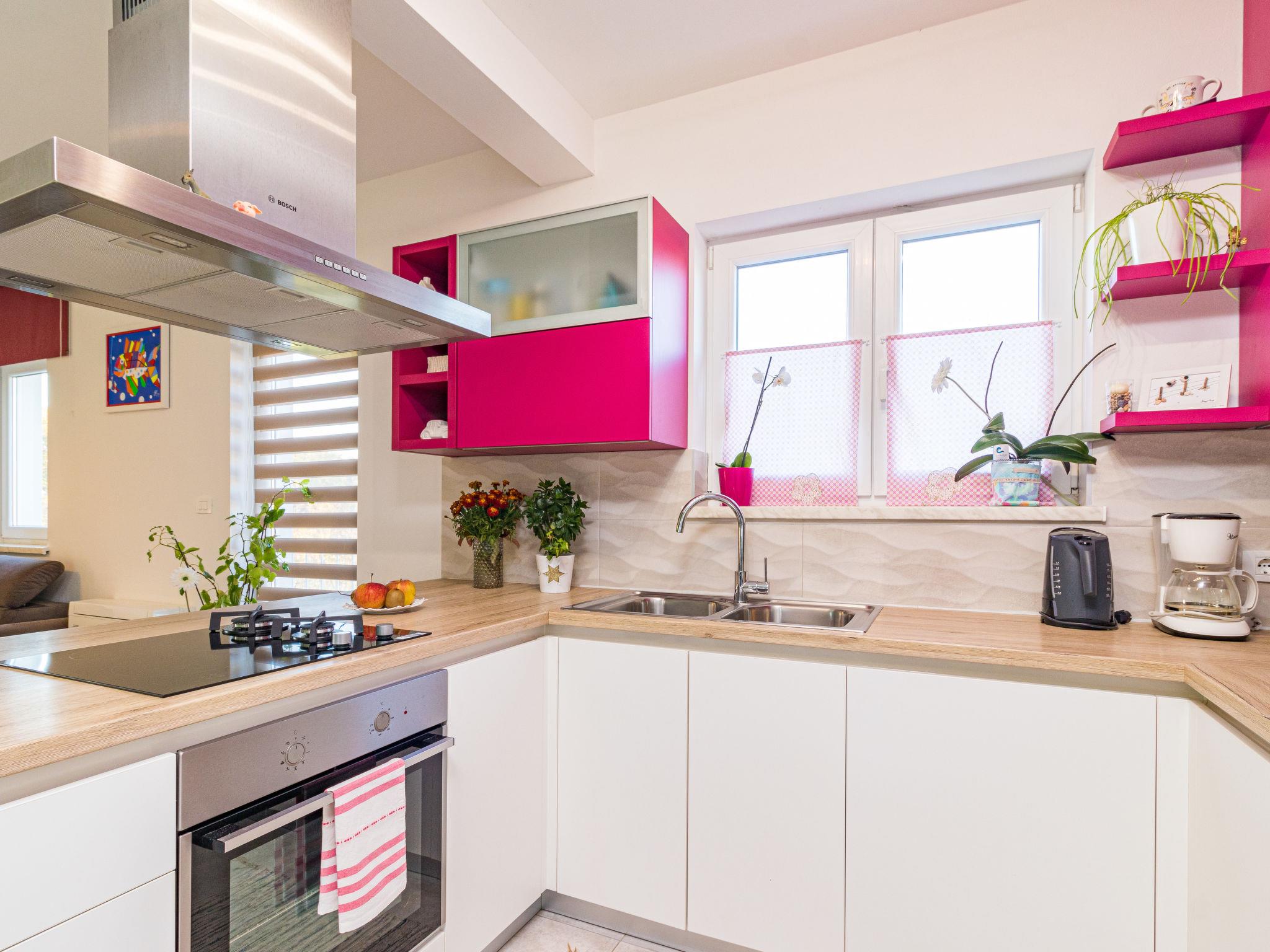 Beautiful single-family house "Villa May", 2 storeys, built in 2018. In the hamlet Cervari 3 km from the centre of Tinjan, 14 km from the centre of Pazin, 16 km from the centre of Porec, in a quiet, sunny position, 16 km from the sea. Private: property 1'900 m2 (fenced), lawn 1'000 m2 trees, swimming pool angular, heated (9 x 4 m, 37 m2, depth 140 cm, seasonal availability: 03.Apr. - 09.Oct.) with internal staircase. Outdoor shower, table tennis, volleyball, terrace (50 m2), garden furniture, barbecue, pool maintenance by the owner/gardener. In the house: internet access, washing machine. Motor access to the house (50 m via unmade road). Parking (for 4 cars) on the premises. Shop 3 km, supermarket 14 km, restaurant 2 km, bus stop 1 km, pebble beach 16 km, concrete beach 16 km. Walking paths from the house 200 m. Nearby attractions: Adventure park 5 km. Groups of teenagers on request only. Please note: airfield 52 km from the property.