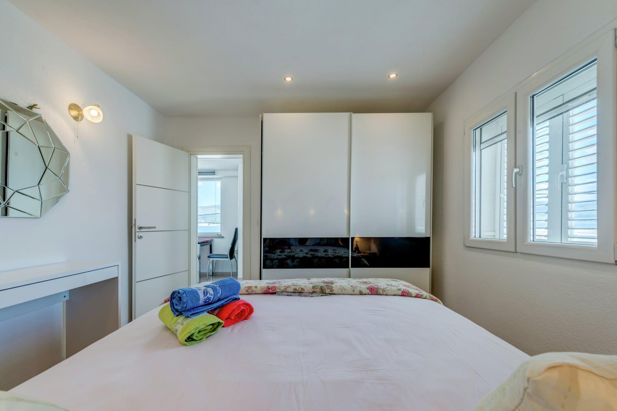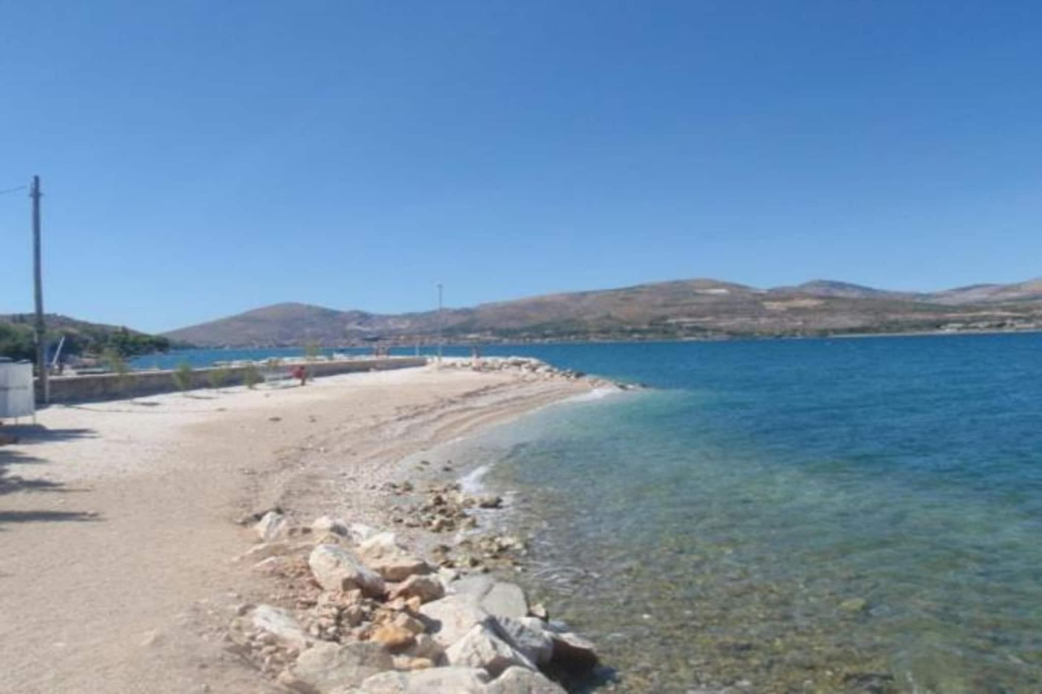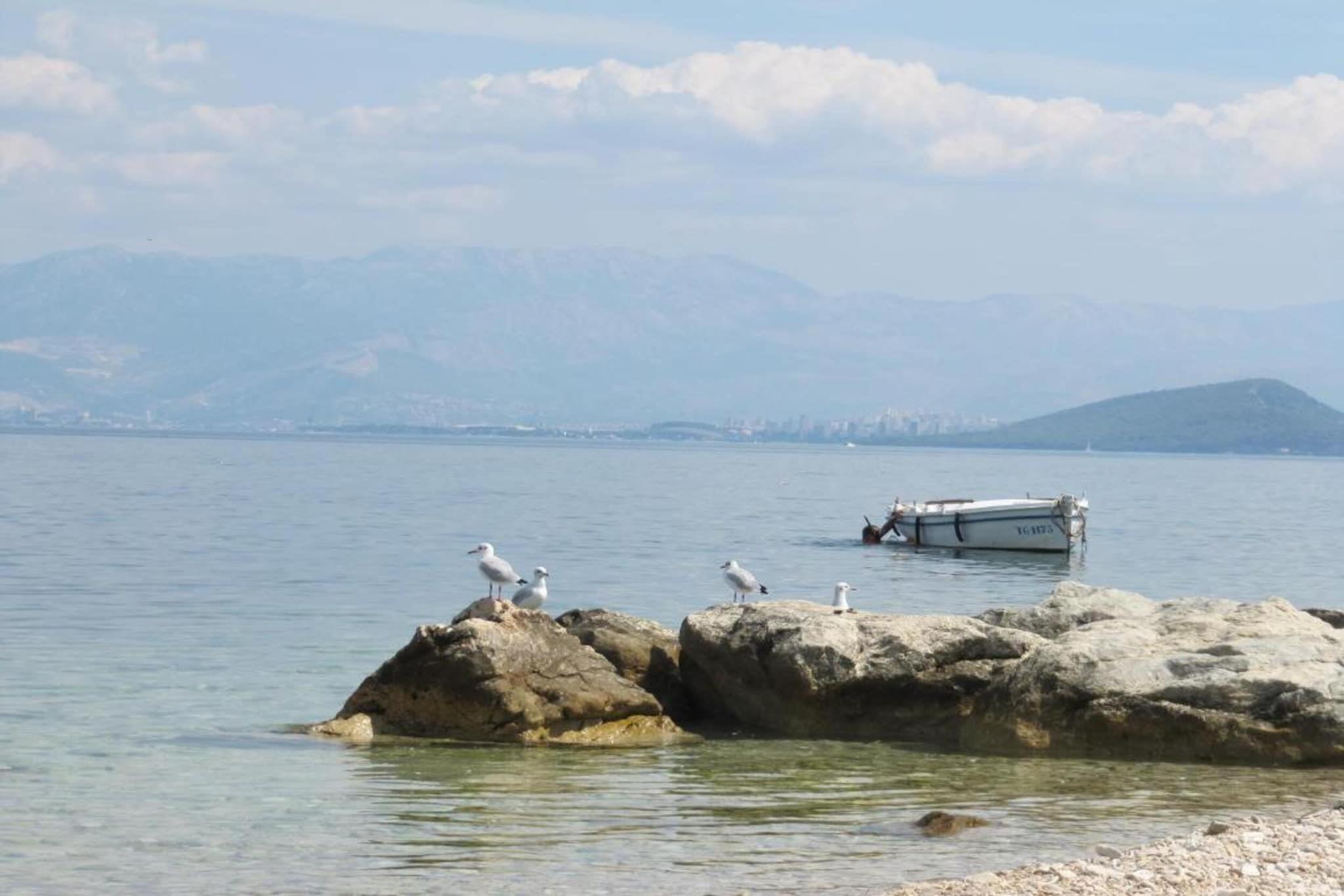 Upplev den perfekta kustnära tillflyktsorten i Trogir - Arbanija i denna husdjursvänliga lägenhet för fyra gäster, bara 10 meter från stranden. Vakna upp till vågornas brus och njut av enkel tillgång till Adriatiska havet. Med Trogirs historiska gamla stadsdel bara 4,5 km bort kan gästerna utforska medeltida gator, kulturella landmärken och det pulserande lokala livet. Restauranger, butiker och kollektivtrafik finns alla inom 300 meter, vilket garanterar bekvämlighet under hela din vistelse. Inuti har lägenheten ett modernt vardagsrum och matplats med platt-TV med satellitkanaler och en bäddsoffa för två personer, ett fullt utrustat kök med induktionshäll och viktiga apparater samt ett mysigt sovrum med dubbelsäng. Gästerna kan koppla av på den privata balkongen, njuta av grillade läckerheter vid den gemensamma grillplatsen eller dra nytta av praktiska bekvämligheter som luftkonditionering, tvättmaskin och privat parkering. I närheten kan du besöka Diocletianus palats, en UNESCO-listad romersk fästning, eller beundra Sankt Domnius katedral, känd för sin fantastiska arkitektur. För middag erbjuder restaurang Mali Raj autentisk dalmatisk mat, medan Konoba Mlinice serverar färska skaldjur i en charmig miljö. Oavsett om du söker äventyr eller avkoppling är denna oas vid havet den perfekta tillflyktsorten.