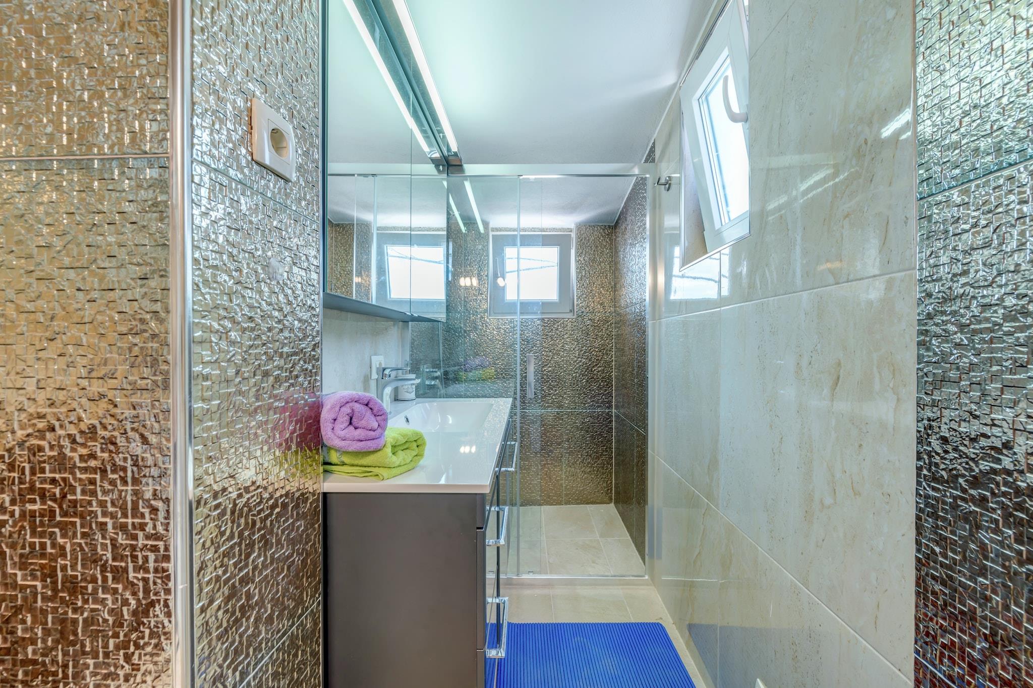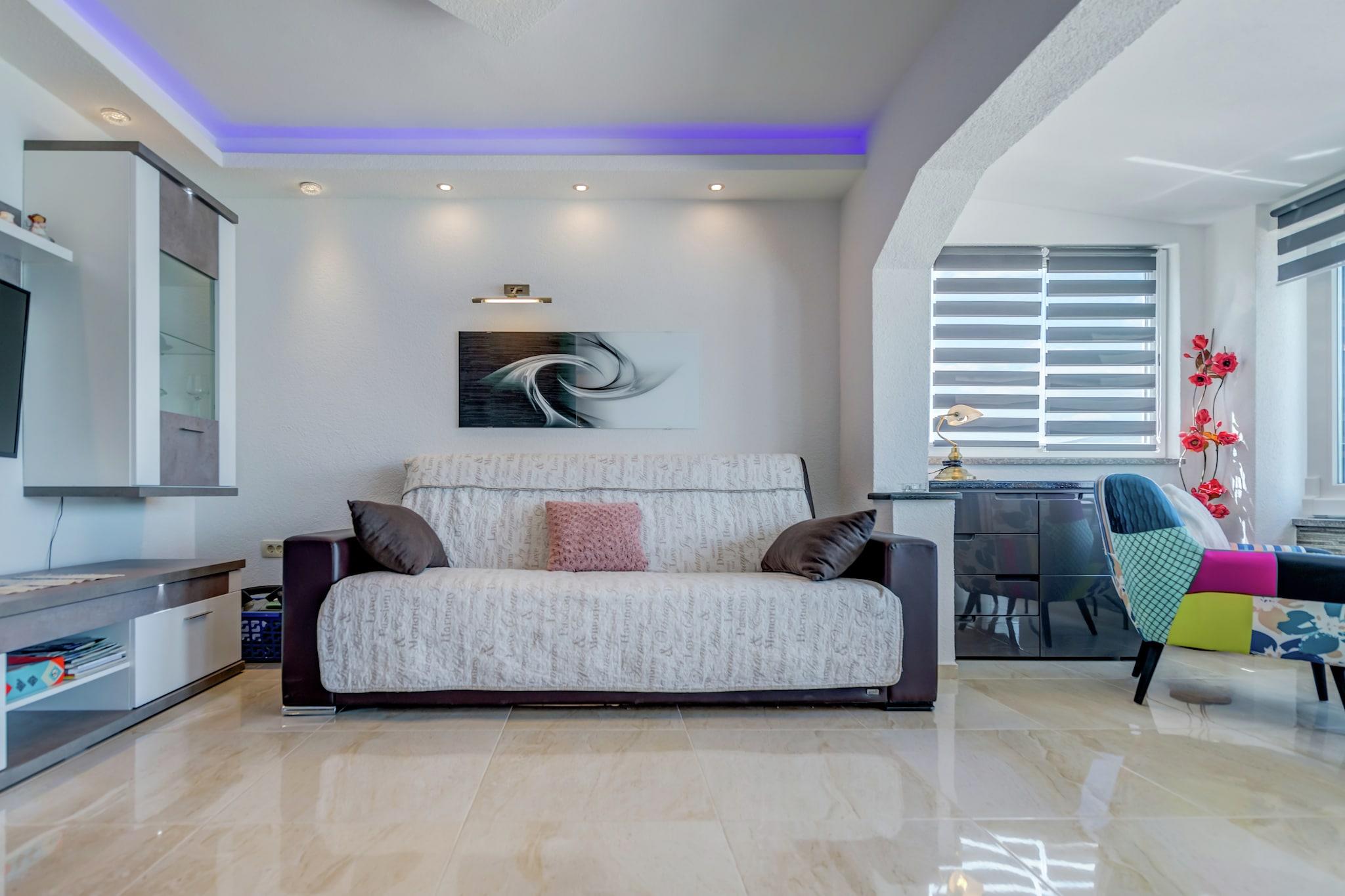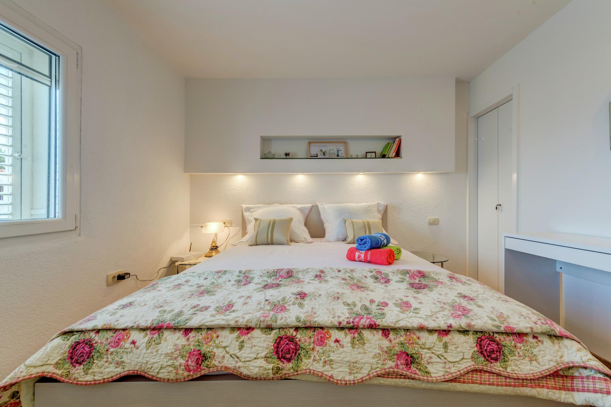 Upplev den perfekta kustnära tillflyktsorten i Trogir - Arbanija i denna husdjursvänliga lägenhet för fyra gäster, bara 10 meter från stranden. Vakna upp till vågornas brus och njut av enkel tillgång till Adriatiska havet. Med Trogirs historiska gamla stadsdel bara 4,5 km bort kan gästerna utforska medeltida gator, kulturella landmärken och det pulserande lokala livet. Restauranger, butiker och kollektivtrafik finns alla inom 300 meter, vilket garanterar bekvämlighet under hela din vistelse. Inuti har lägenheten ett modernt vardagsrum och matplats med platt-TV med satellitkanaler och en bäddsoffa för två personer, ett fullt utrustat kök med induktionshäll och viktiga apparater samt ett mysigt sovrum med dubbelsäng. Gästerna kan koppla av på den privata balkongen, njuta av grillade läckerheter vid den gemensamma grillplatsen eller dra nytta av praktiska bekvämligheter som luftkonditionering, tvättmaskin och privat parkering. I närheten kan du besöka Diocletianus palats, en UNESCO-listad romersk fästning, eller beundra Sankt Domnius katedral, känd för sin fantastiska arkitektur. För middag erbjuder restaurang Mali Raj autentisk dalmatisk mat, medan Konoba Mlinice serverar färska skaldjur i en charmig miljö. Oavsett om du söker äventyr eller avkoppling är denna oas vid havet den perfekta tillflyktsorten.
