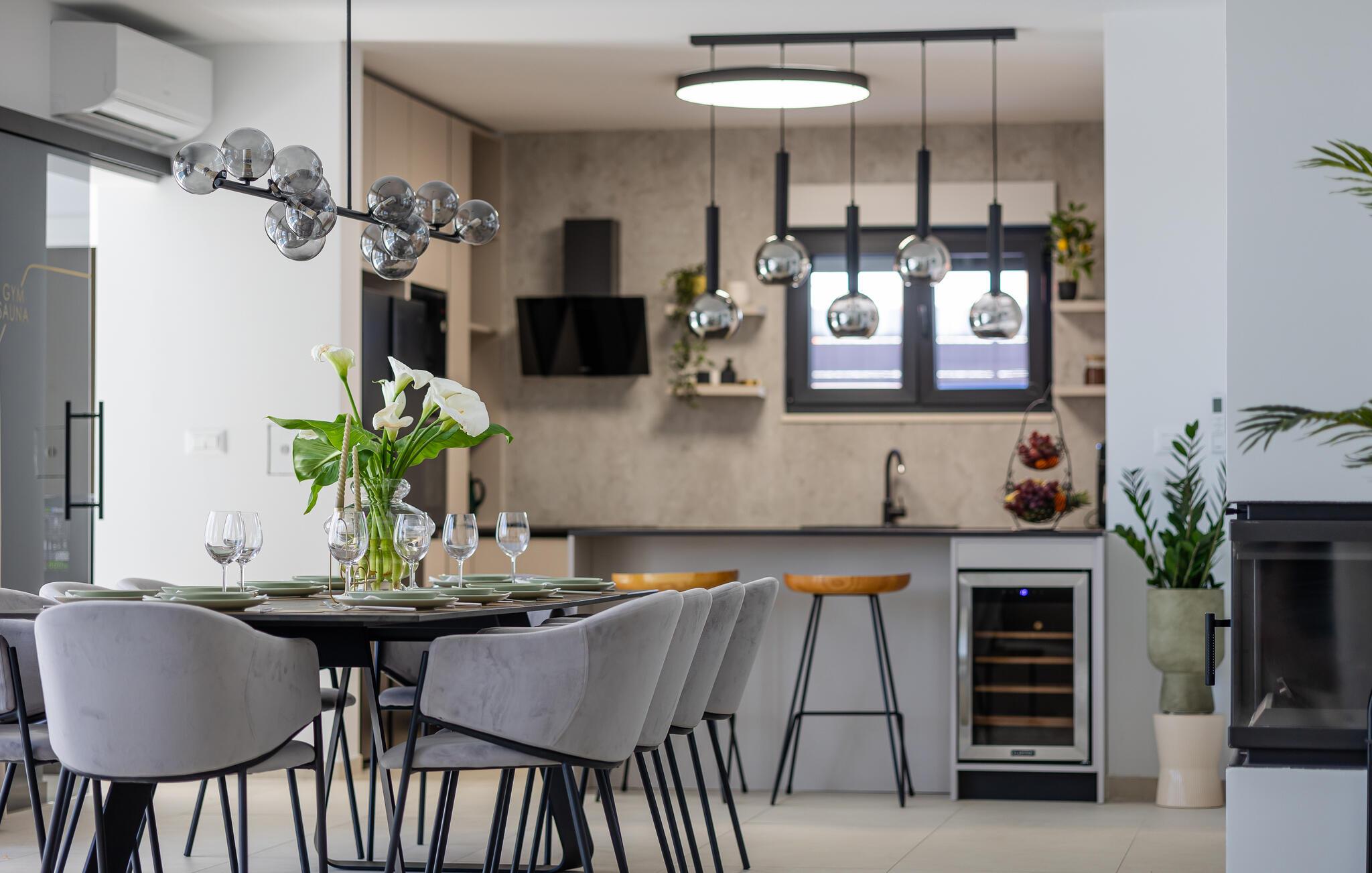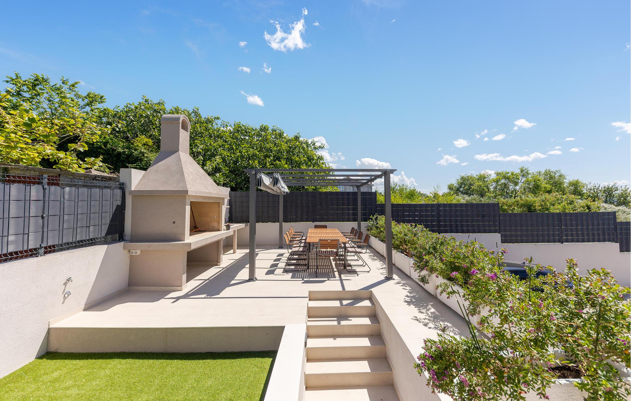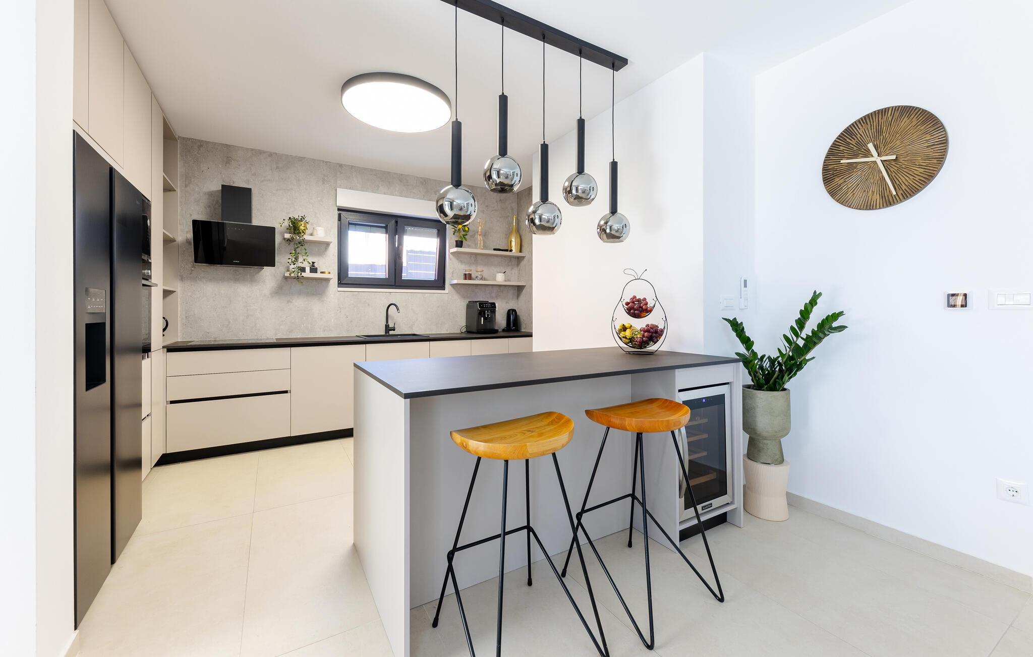 Res till Kastel Stari och tillbringa din semester i detta vackra hus, som inte bara erbjuder dig högkvalitativa möbler på två våningar, utan också en elegant och ljus design som inbjuder dig att koppla av och njuta. Detta fantastiska hus lämnar inget övrigt att önska. Njut av den underbara atmosfären inomhus med en öppen spis och följ ditt dagliga sportprogram i fitnessrummet.