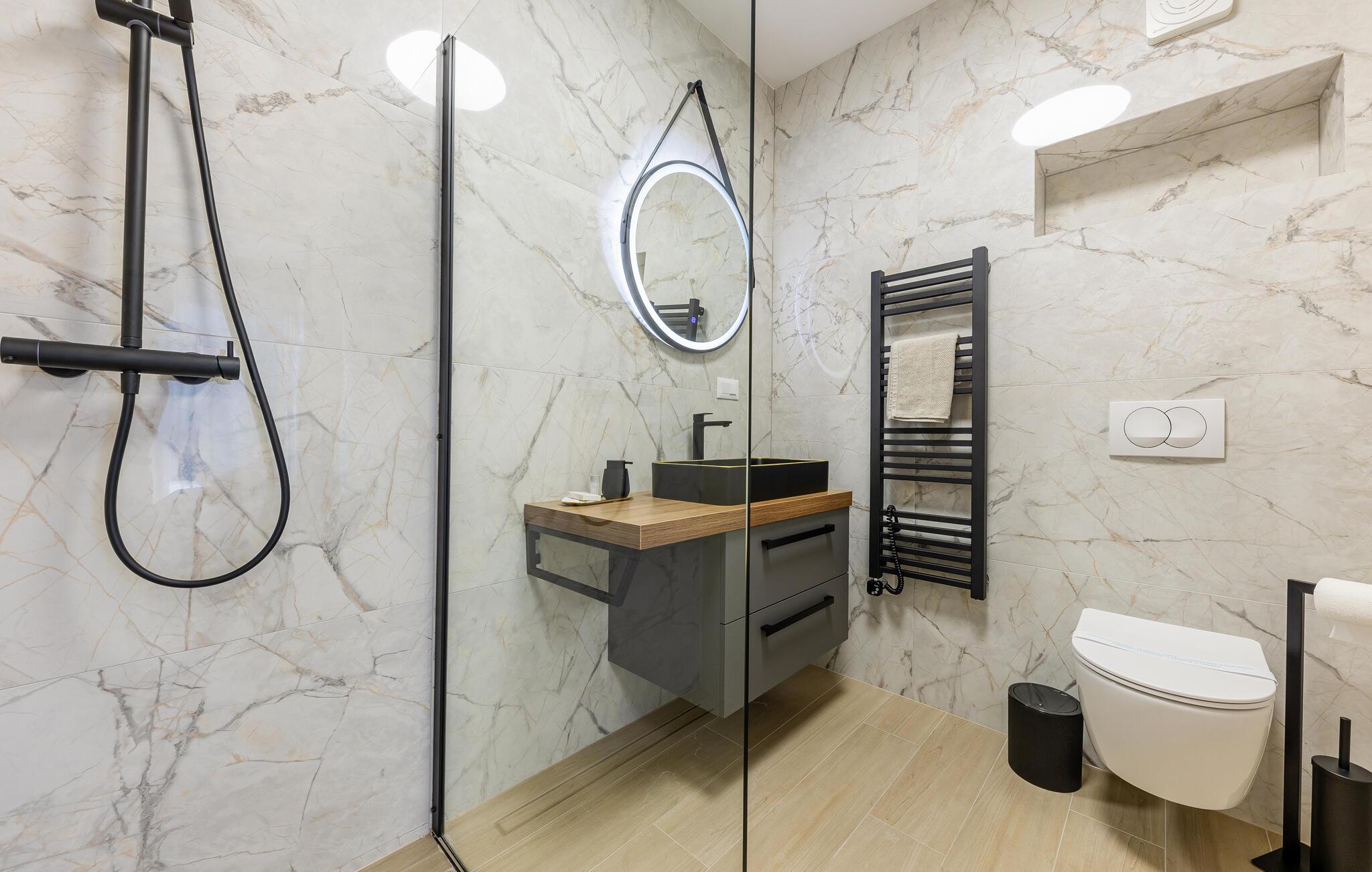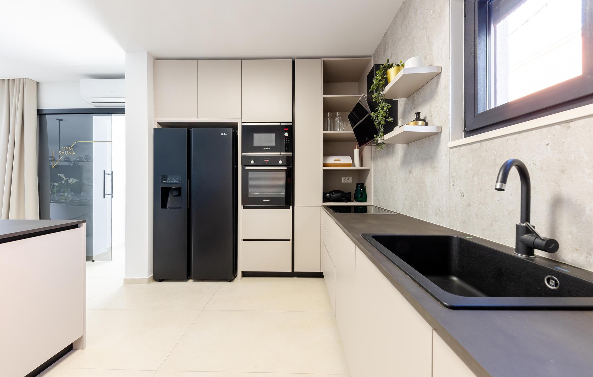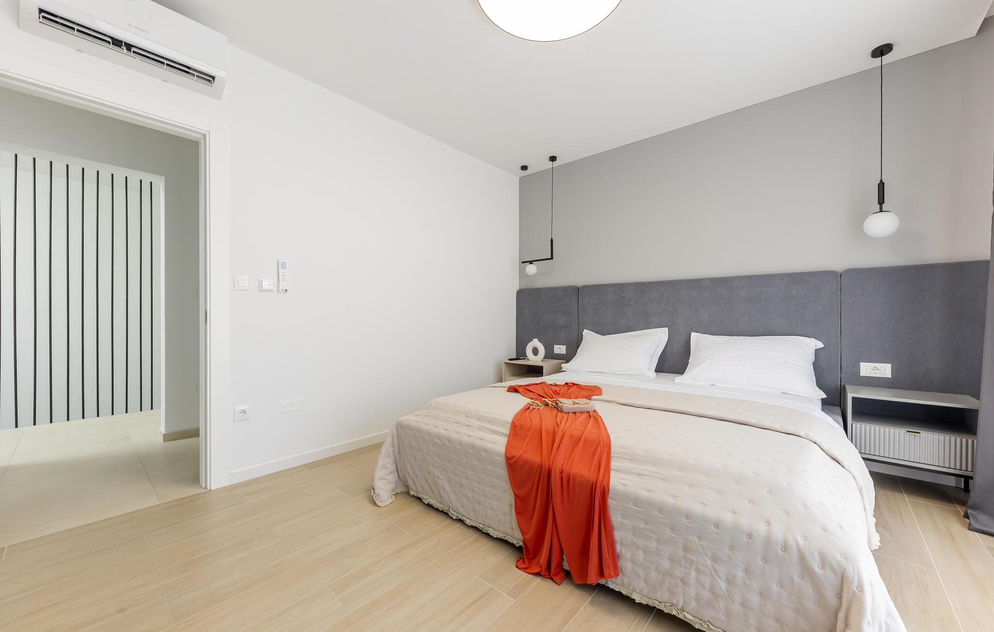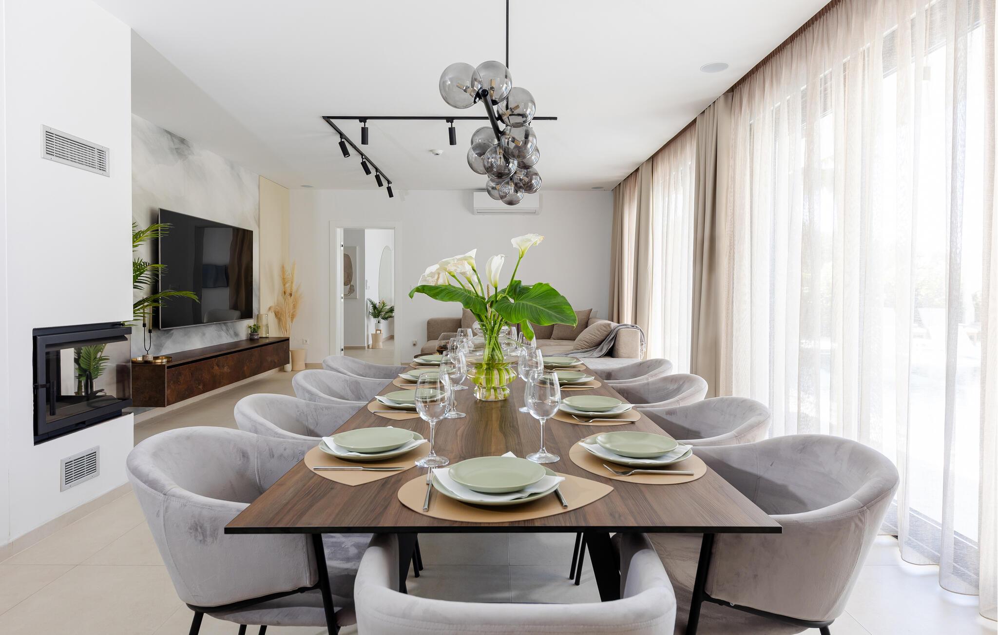 Res till Kastel Stari och tillbringa din semester i detta vackra hus, som inte bara erbjuder dig högkvalitativa möbler på två våningar, utan också en elegant och ljus design som inbjuder dig att koppla av och njuta. Detta fantastiska hus lämnar inget övrigt att önska. Njut av den underbara atmosfären inomhus med en öppen spis och följ ditt dagliga sportprogram i fitnessrummet.