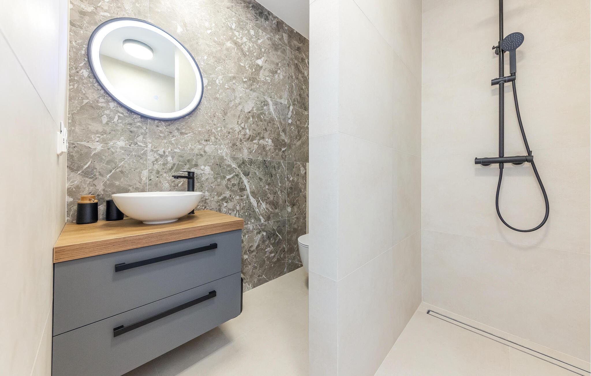 - WC med varmt och kallt vatten, Dusch