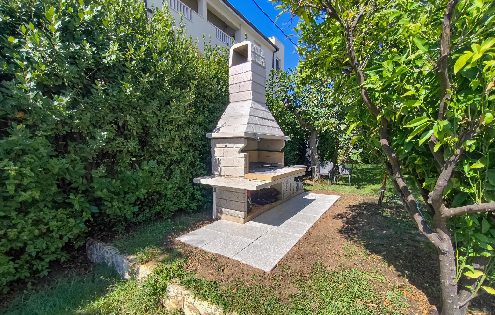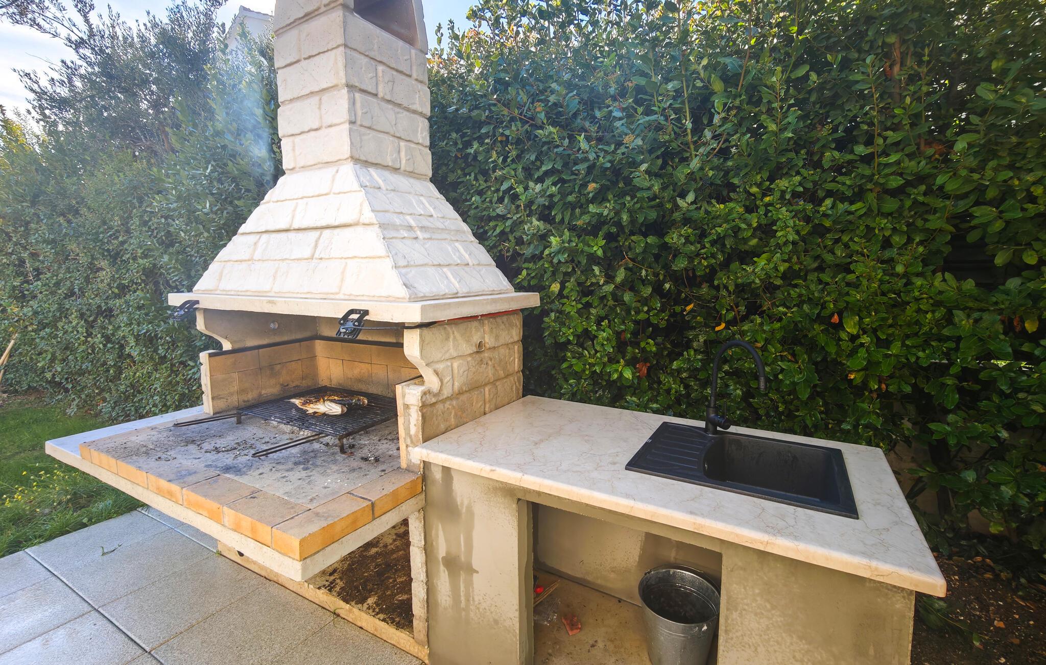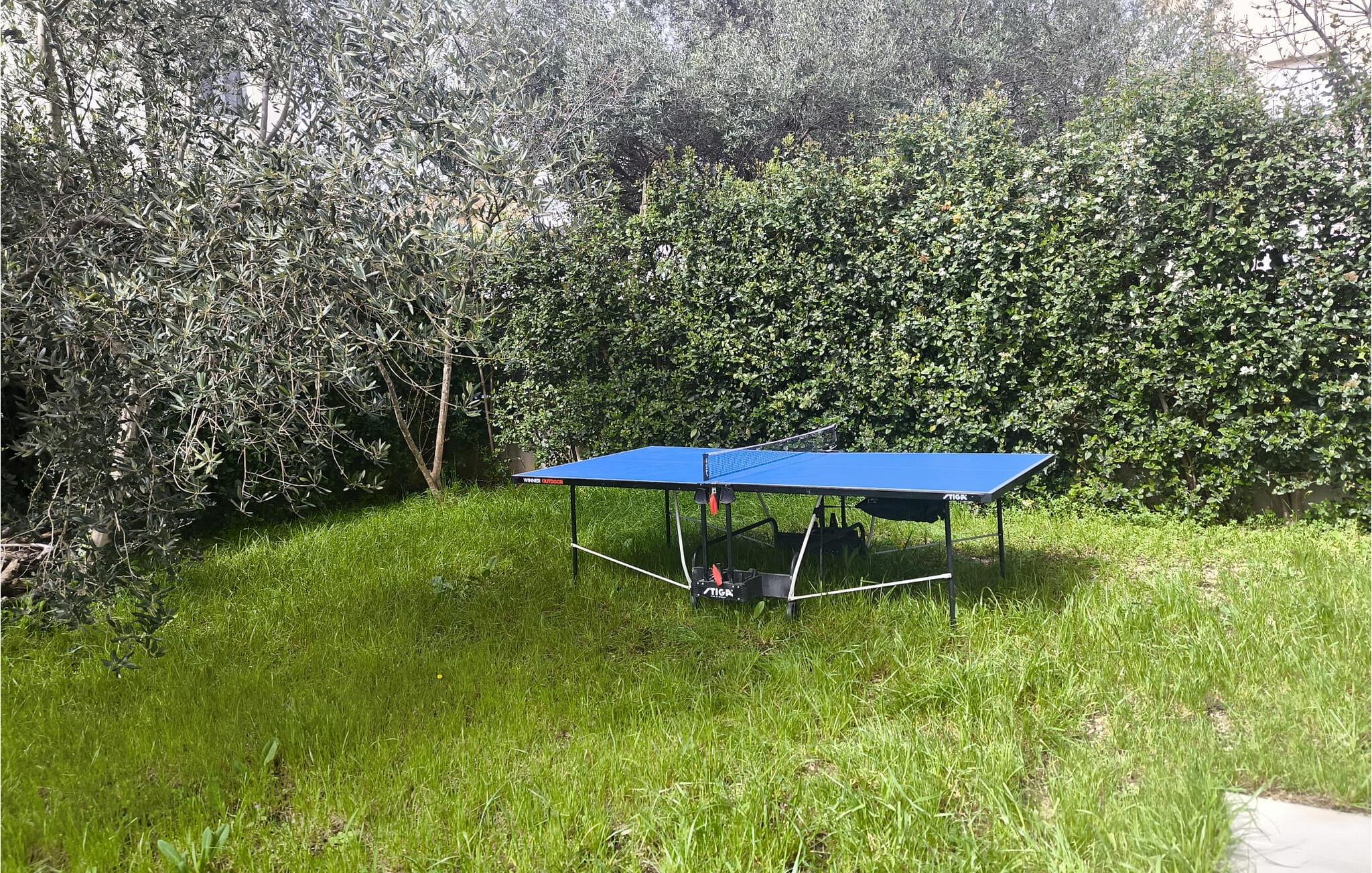 Det välskötta utomhusområdet är perfekt för att njuta av det underbara medelhavsklimatet till fullo. Ta ett dopp i poolen och koppla av på en solstol. Tänd upp grillen och koppla av med en uppfriskande drink på de bekväma sittplatserna i skuggan av markisen.