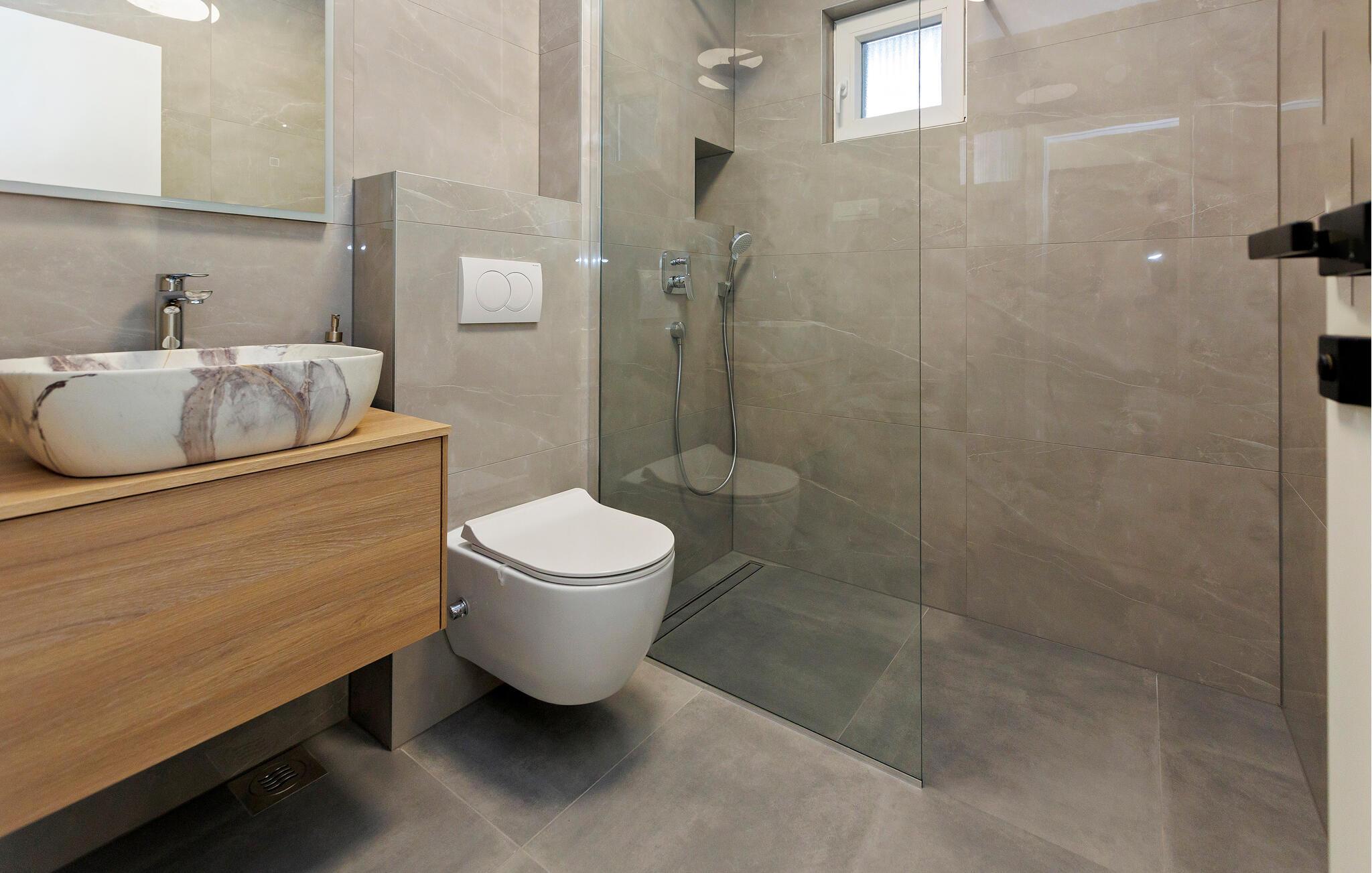 - WC med varmt och kallt vatten, Dusch