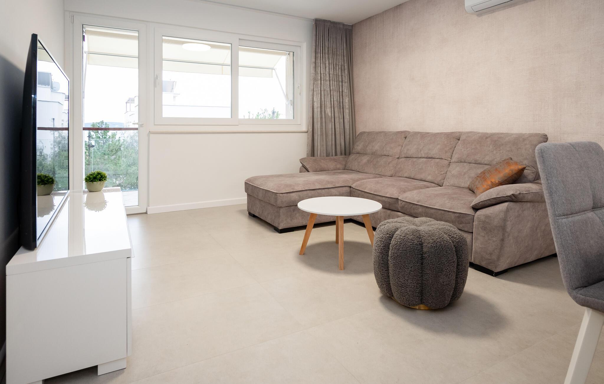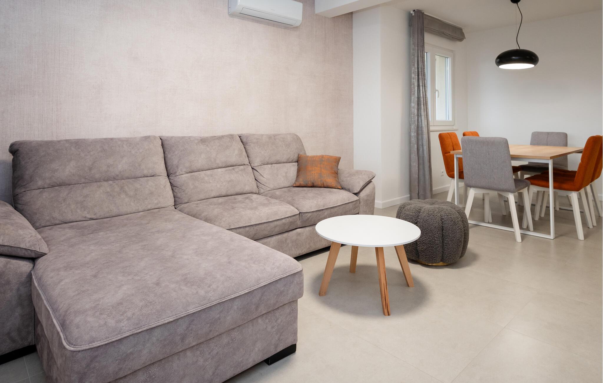 Detta moderna semesterhus välkomnar dig med en smakfullt möblerad interiör, där du också kan känna dig som hemma med en större grupp. Ordna glada matlagningskvällar, låt barnen använda de färgglada lekmöjligheterna och koppla av i den högkvalitativa soffgruppen med ett gott samtal eller en intressant läsning.