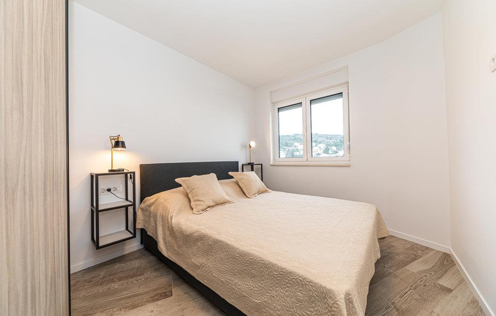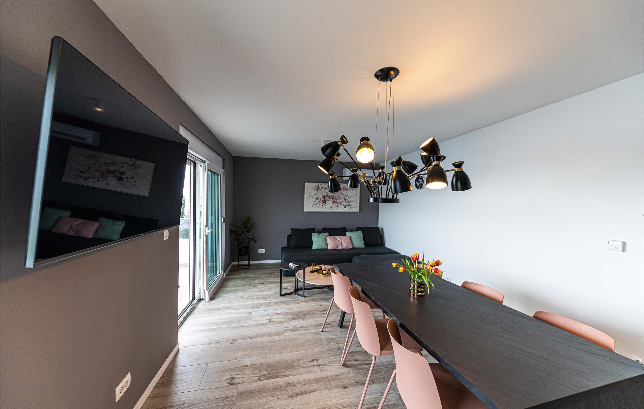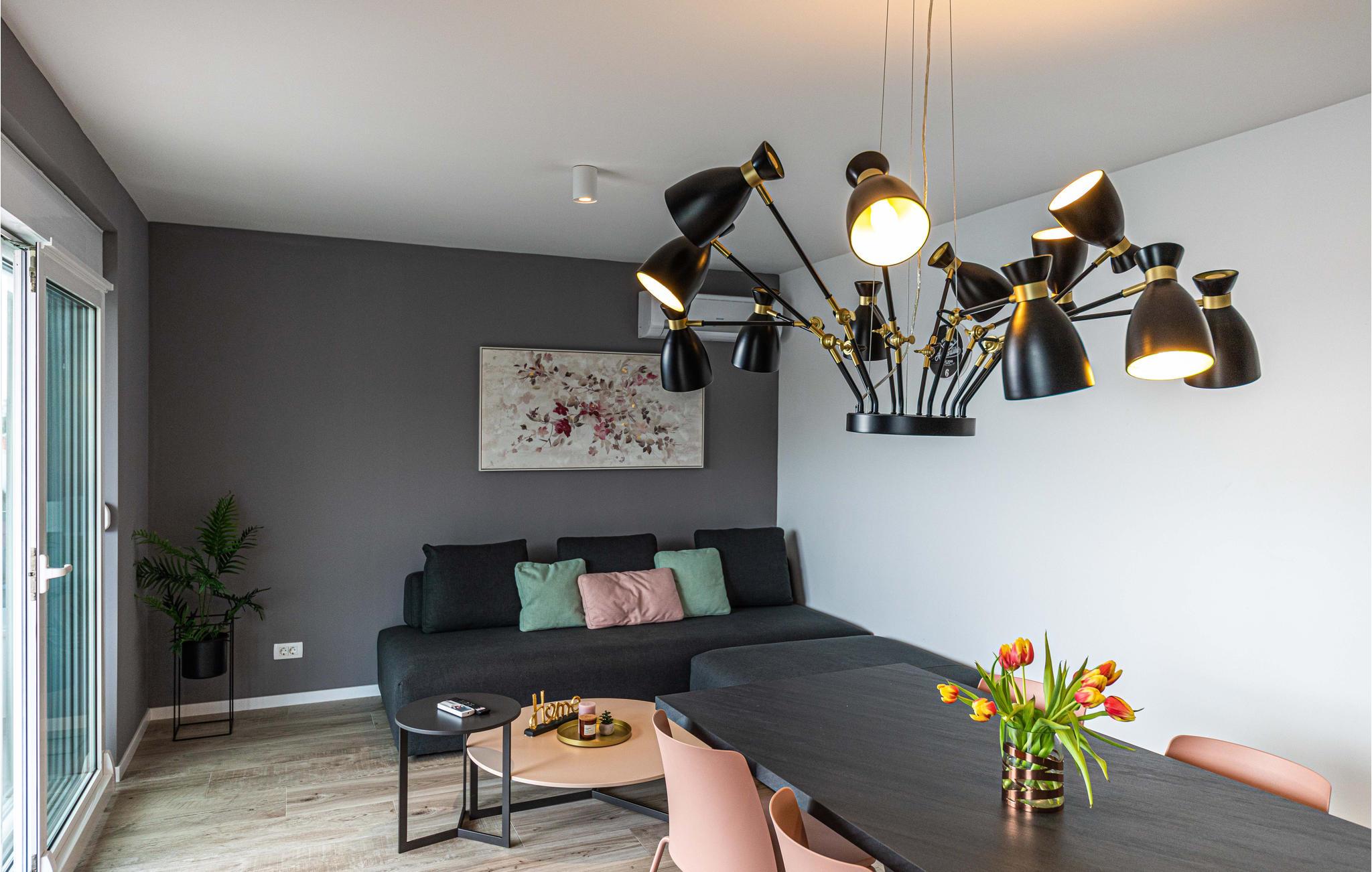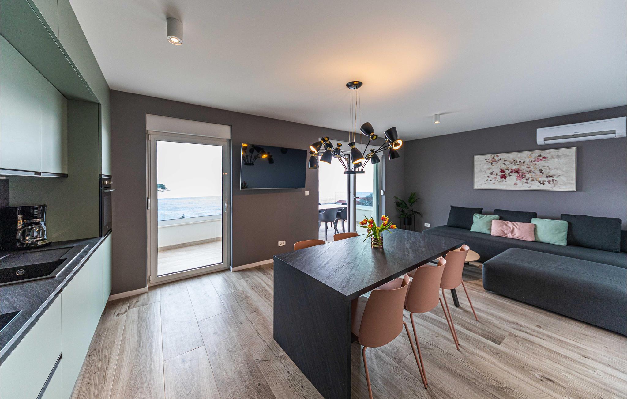 Lägenheten välkomnar dig med en vacker atmosfär och en inbjudande feelgood-stämning. Njut av vackra timmar tillsammans i det moderna vardagsrummet. Här kan du förbereda dina favoriträtter i det moderna köket och njuta av dem efteråt på den rymliga terrassen med en underbar panoramautsikt över havet och öarna. I husets gemensamma trädgård väntar en vacker pool där du kan förfriska dig och sedan koppla av i solen.