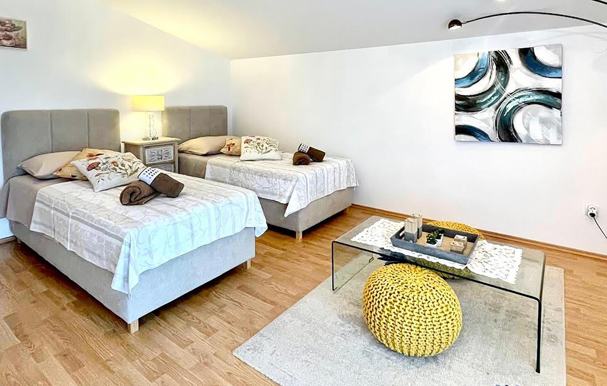 Beroende på var i landet du tillbringar din semester kan du utforska den pittoreska kustlinjen på en promenad längs strandpromenaden, ta en båttur till de omgivande öarna, kristallklart vatten och avskilda vikar inbjuder dig att simma och snorkla. Prova regionala specialiteter i en av de mysiga konoborna. Besök historiska städer som Zadar, Split eller Dubrovnik, med sin imponerande arkitektur och livliga historia. Vandra genom det gröna kuperade landskapet eller upptäck naturens underverk som Plitvicesjöarna med sina vattenfall och turkosfärgade sjöar. För aktiva semesterfirare är kajakpaddling eller cykelturer ett utmärkt sätt att uppleva omgivningarna från ett nytt perspektiv.
