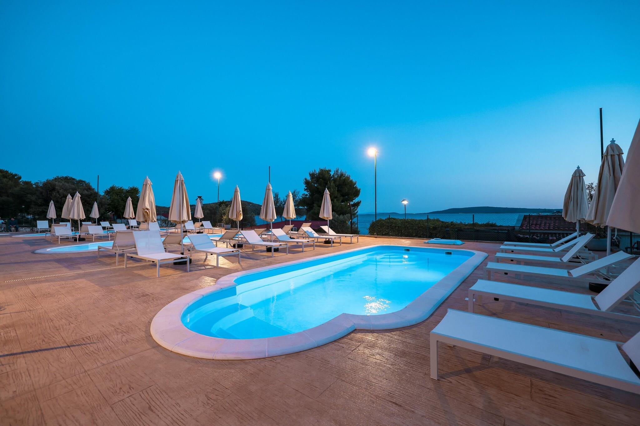 Semesteranläggningen Medena ligger cirka en kilometer utanför fiskebyn Seget, mitt i en skuggig tallskog. De totalrenoverade lägenheterna ligger i radhus, alla har terrass eller balkong och luftkonditionering om det blir för varmt. Den vackra klapperstensstranden med solplatser är mellan 50 och 100 meter, beroende på lägenhetens läge. Seget är en gammal fiskeby som ligger cirka fyra kilometer utanför gamla stan i Trogir och lätt kan nås till fots därifrån. Längs strandpromenaden hittar du restauranger och barer, samt många nöjesmöjligheter för barn och vuxna. Både lokalbefolkningen och gäster använder gärna strandpromenaden för promenader eller jogging. Detaljer inklusiv: Förbrukningsbaserade energikostnader, sänglinne, handdukar, slutstädning, Registreringsavgift, WiFi. Aktiviteter i närheten: I Trogir, de närliggande städerna och på ön Ciovo hittar du givande fiskeplatser (du kan köpa fiskekort på plats från hamnmyndigheten). Bakom den populära Omis Riviera ligger floden Cetina, som är särskilt populär för små forsränningsturer. Det kristallklara vattnet är ett paradis för snorklare och dykare. Mer än 30 vackra dykplatser finns tillgängliga för att upptäcka undervattensvärlden runt Trogir. Varje år är Trogir värd för den berömda sommarmusikfestivalen från mitten av juni till mitten av augusti. Många klassiska och folkloristiska konserter äger rum på torgen i gamla stan och i kyrkorna. Affischer över hela regionen lockar också turister från längre bort, vilket gör det till en populär festival för alla åldrar. Biljetter finns till försäljning på Cipikos turistbyrå. Dessutom lovar många utflyktsalternativ en hel del variation under din semester: offshoreön Ciovo med sina vackra stränder är ansluten till Trogir via en bro.