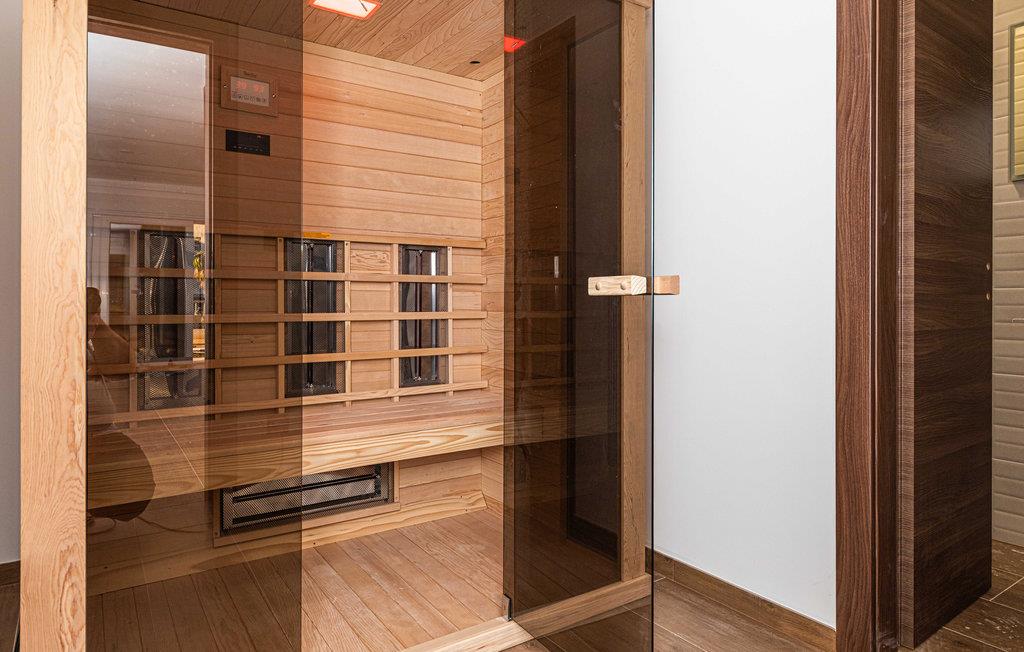 Detta nybyggda hus består av två enheter som är förbundna med en intern trappa. Här får du bland annat tillgång till en infraröd bastu, ett underhållningsrum och ett gym. På översta våningen hittar du en takterrass med jacuzzi med vacker panoramautsikt över havet, medan du på bottenvåningen hittar en trädgård med en pool med 3 massagestrålar.