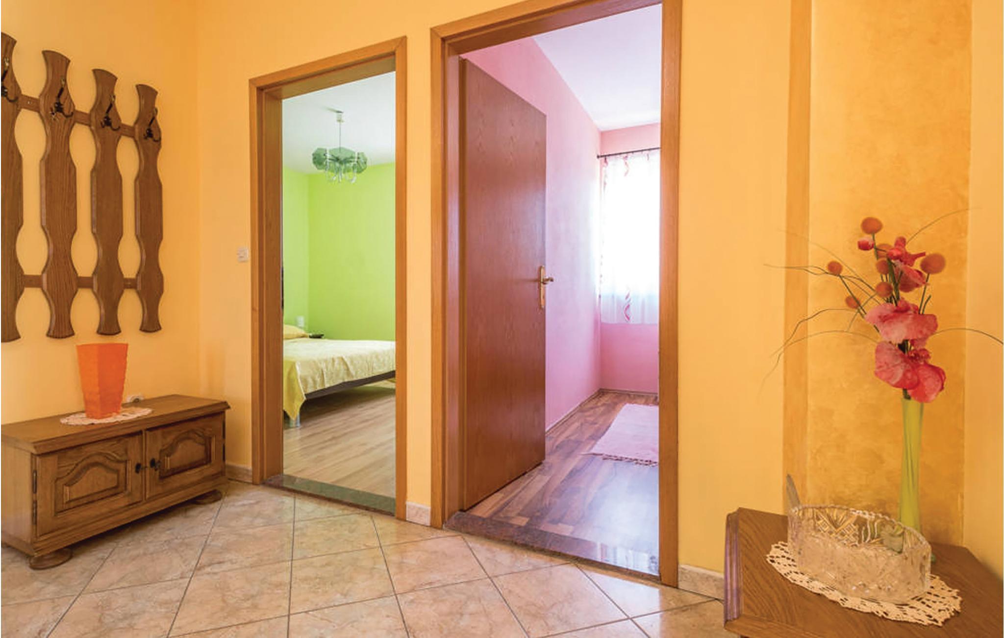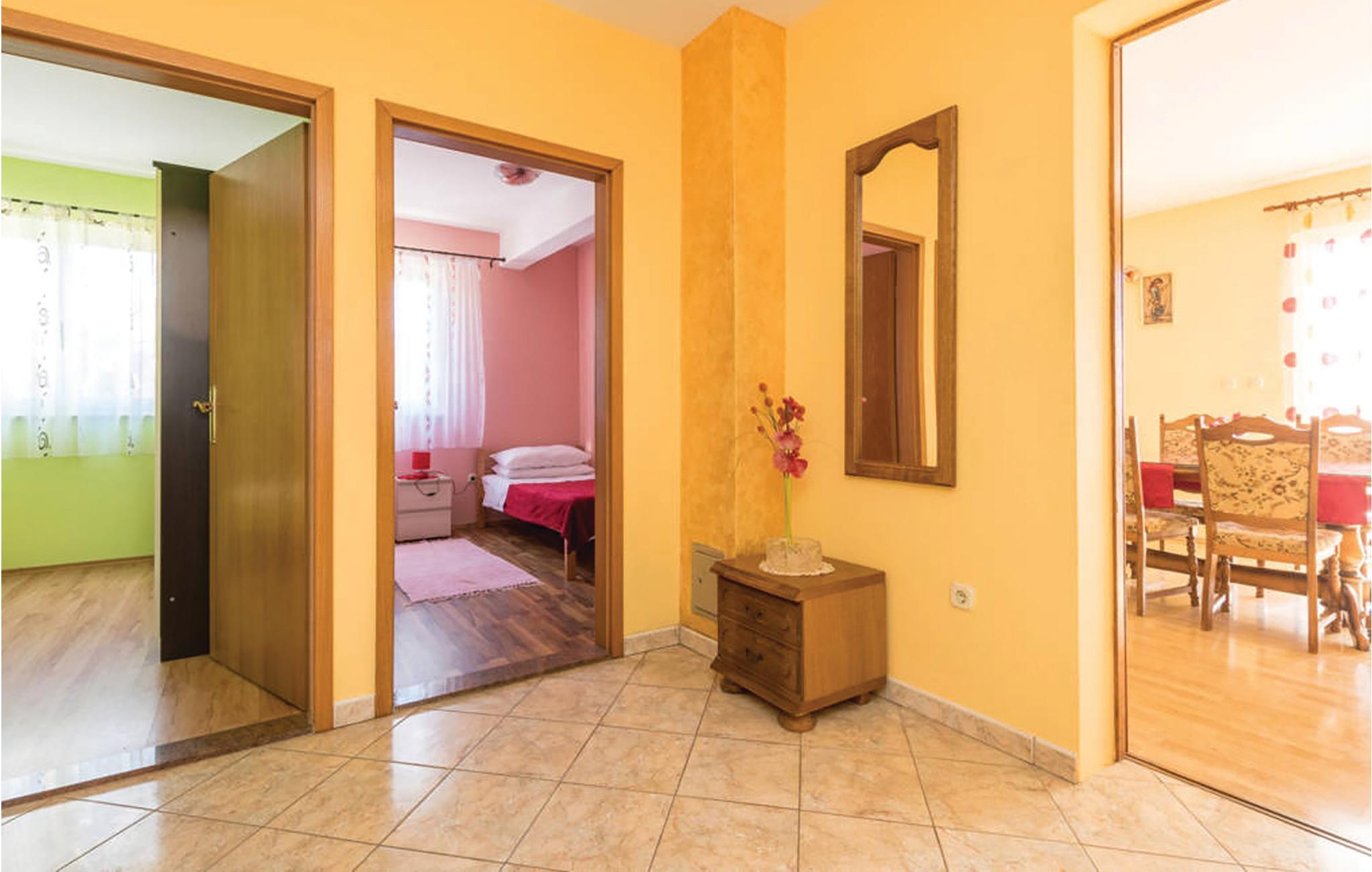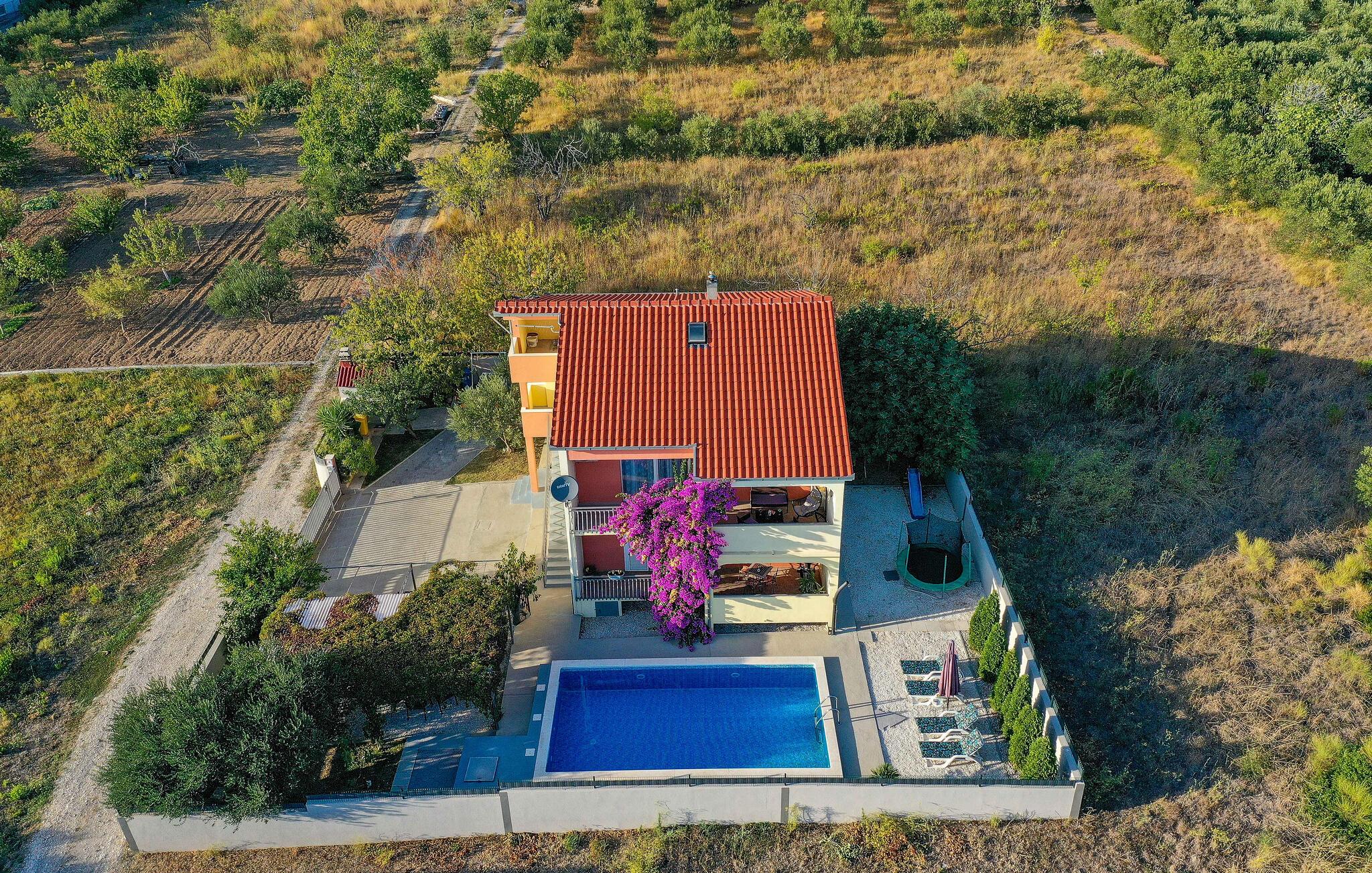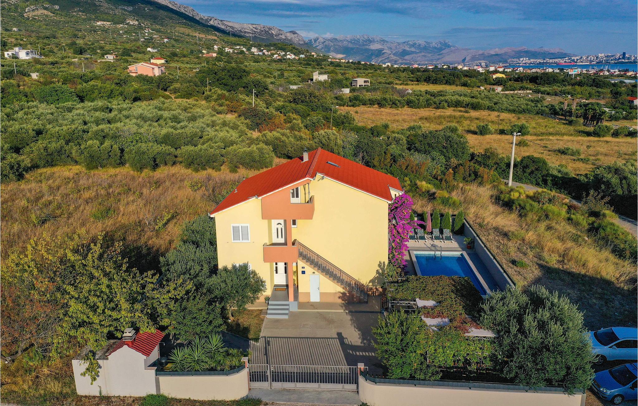 Detta semesterhus med pool och vacker trädgård består av två bostadsenheter som är förbundna med externa trappor och är därför perfekt för två familjer. Boendeenheterna är jämnt fördelade och har vardera tre sovrum, ett badrum och ett stort vardagsrum med matplats och kök. Fastigheten är helt inhägnad och barnen kan därför leka bekymmersfritt eller fräscha upp sig i poolen. Från terrasserna har du en vacker utsikt över Katelbukten, som du säkert kommer att njuta av. De historiska städerna Trogir och Split ligger bara några minuters bilresa bort.