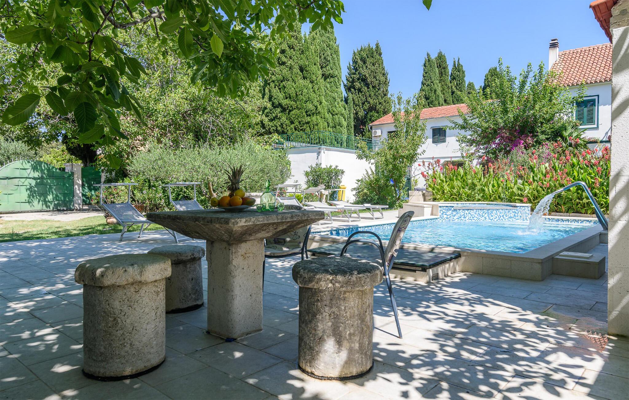 Bara ett stenkast bort hittar du en stenstrand, perfekt för ett uppfriskande dopp i Adriatiska havets kristallklara vatten. Utforska det omgivande området och upptäck den charmiga gamla staden Trogir, som bara ligger en kort bilresa bort.