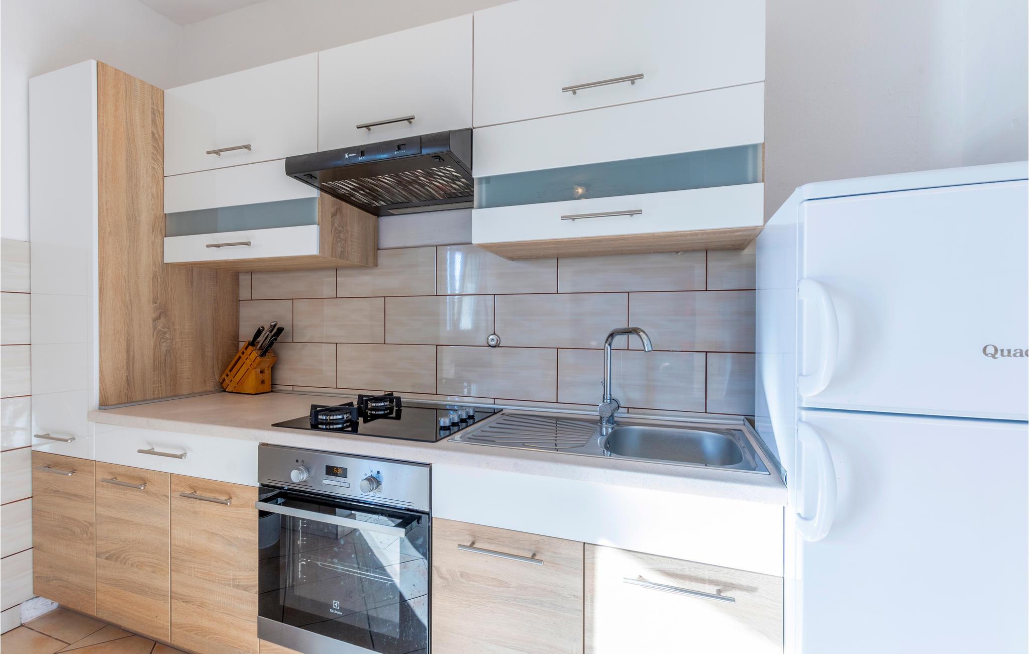 Dessa rymliga och enkelt inredda semesterlägenheter ligger i Katel Luki, i ett fristående hus. Semesterlägenheten CDT503 har en takhöjd på minst 150 cm och erbjuder panoramautsikt över havet och de omgivande öarna, medan semesterlägenheten CDT504 har delvis havsutsikt. De sista ca 80 m av tillfartsvägen till semesterbostaden är inte asfalterad och därför olämplig för sänkta bilar. Den närmaste stenstranden kan också nås till fots, eftersom den ligger cirka 500 meter bort. Vi rekommenderar ett besök i den historiska kulturstaden Trogir, som ligger cirka 12 km bort och lockar många turister med sina romantiska gamla stadsgator. Ett besök är också värt staden Split, som också har många kulturella och historiska sevärdheter. Vi rekommenderar särskilt att besöka de många musikevenemang som äger rum i turistcentrumen under sommarmånaderna.
