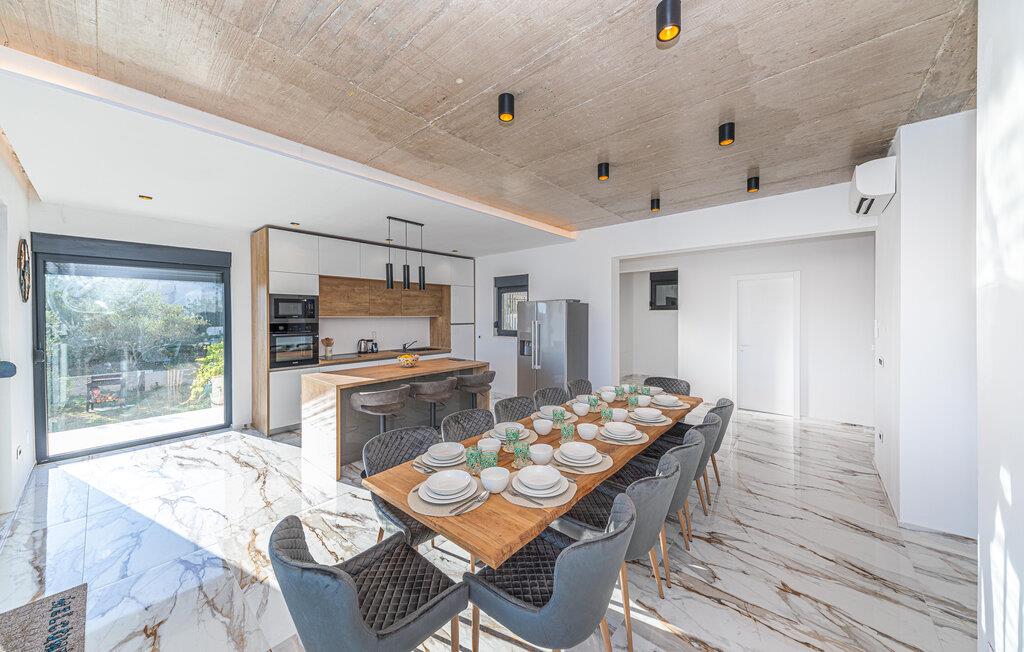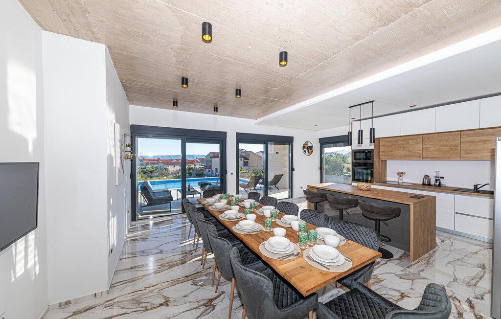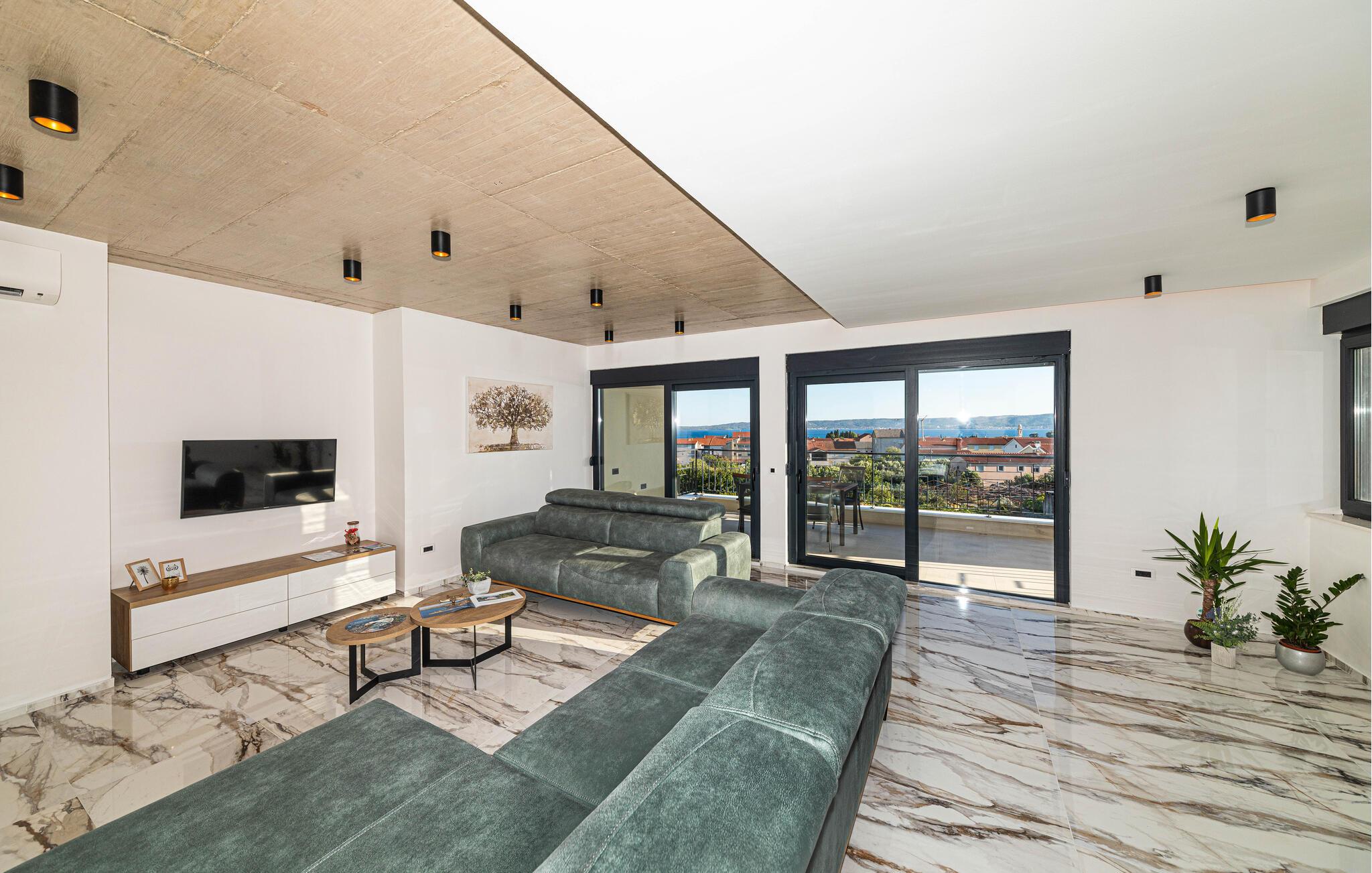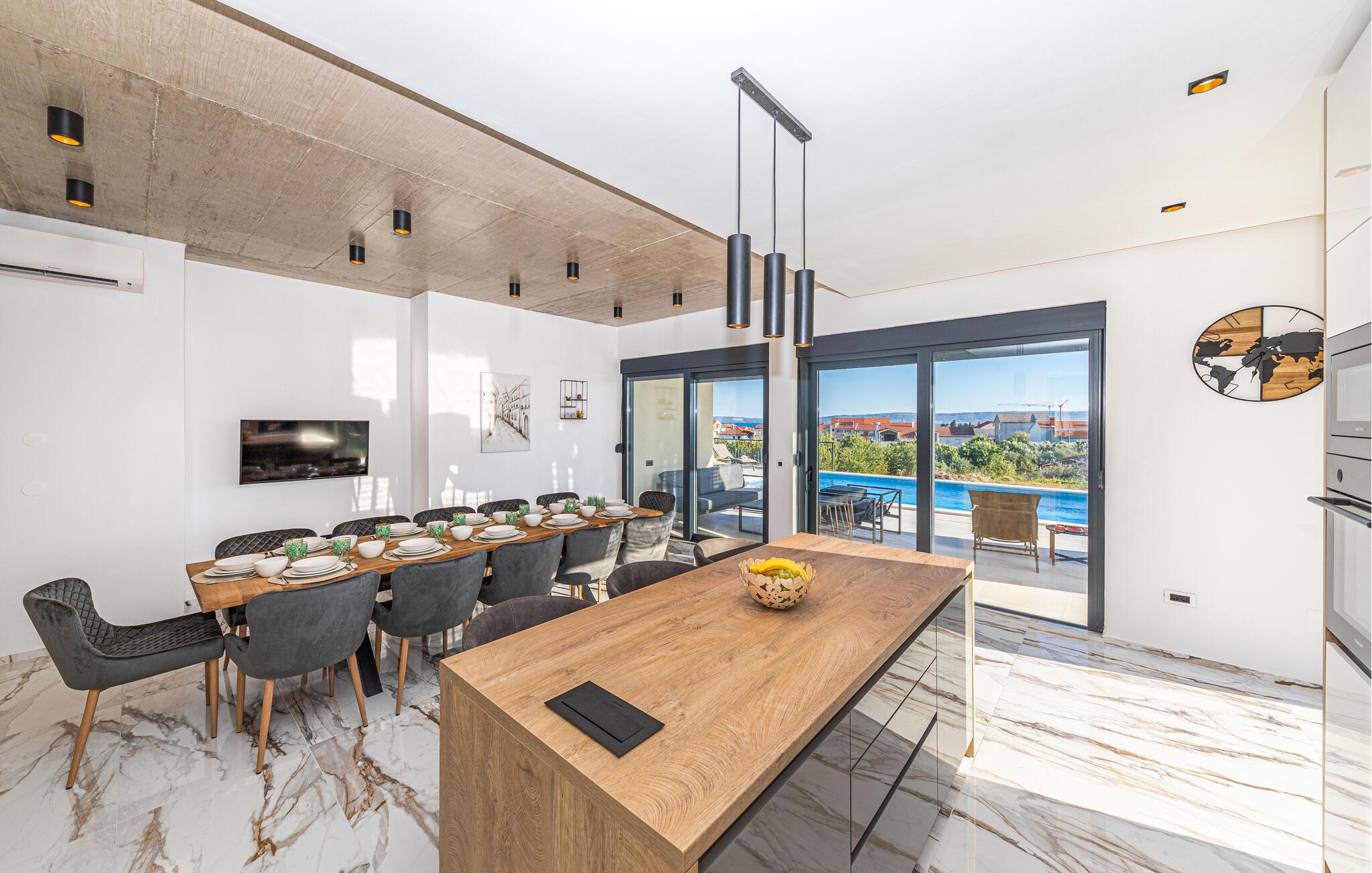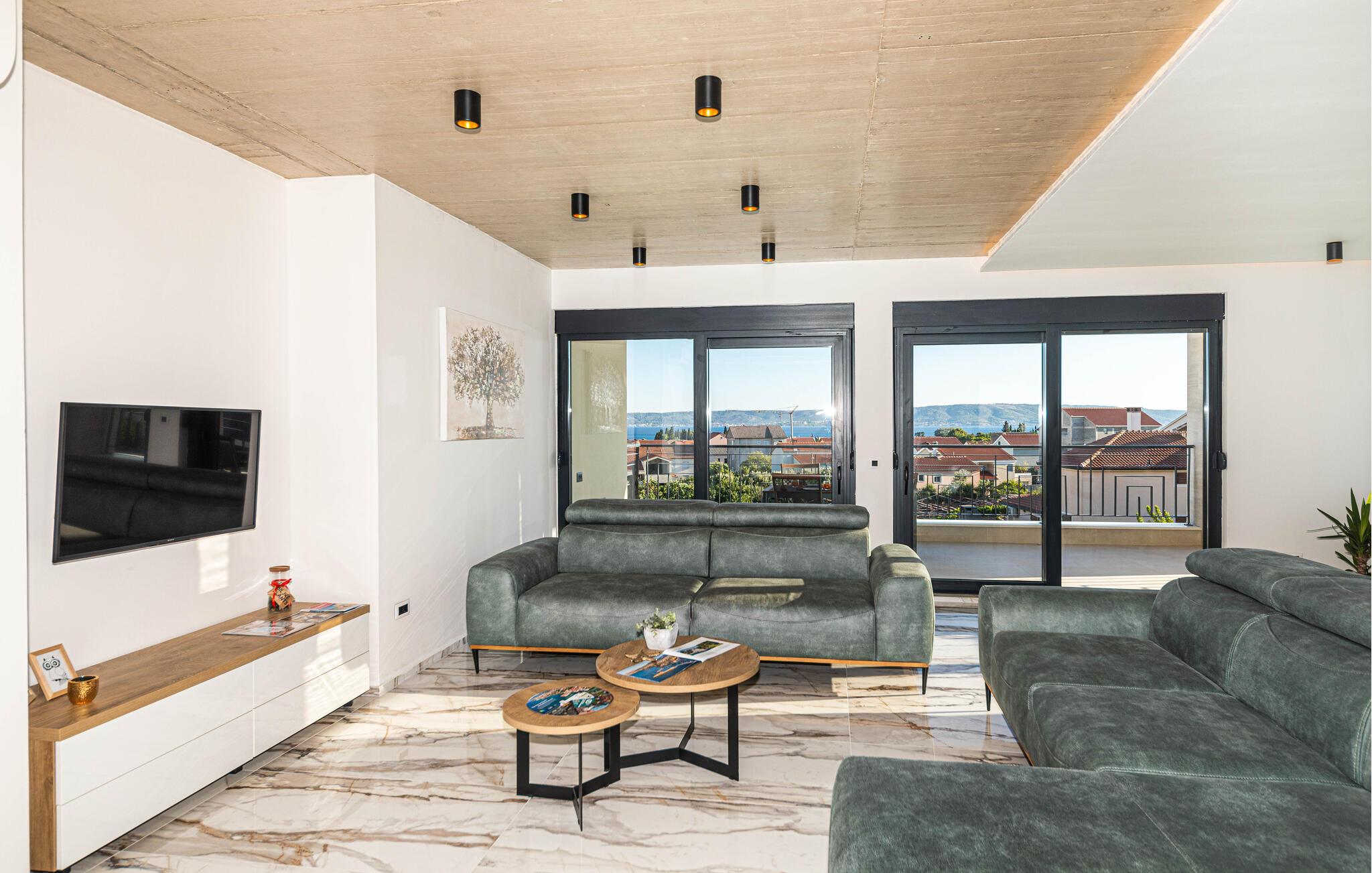 I detta rymliga och moderna semesterhus i Kastel Luksic kommer du att uppleva en semester på hög nivå. De ljusa rummen sträcker sig över två våningar och erbjuder dig en elegant, mysig atmosfär. Smakfullt utvalda möbler skapar en hemtrevlig känsla, perfekt för flera familjer som reser tillsammans men ändå vill ha gott om utrymme för avskildhet. Två vardagsrum är indelade i föräldra- och barnområden och lovar dig underhållning medan du lagar mat, chattar eller tittar på en film på kvällen.
