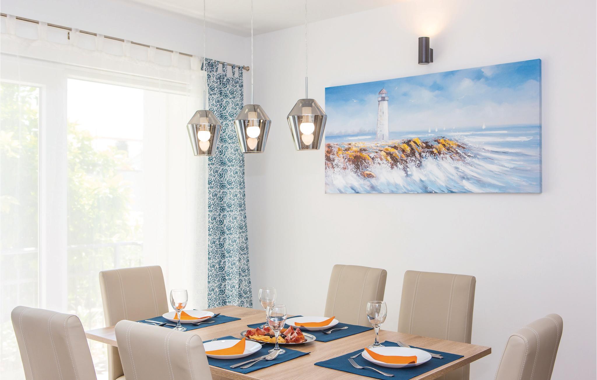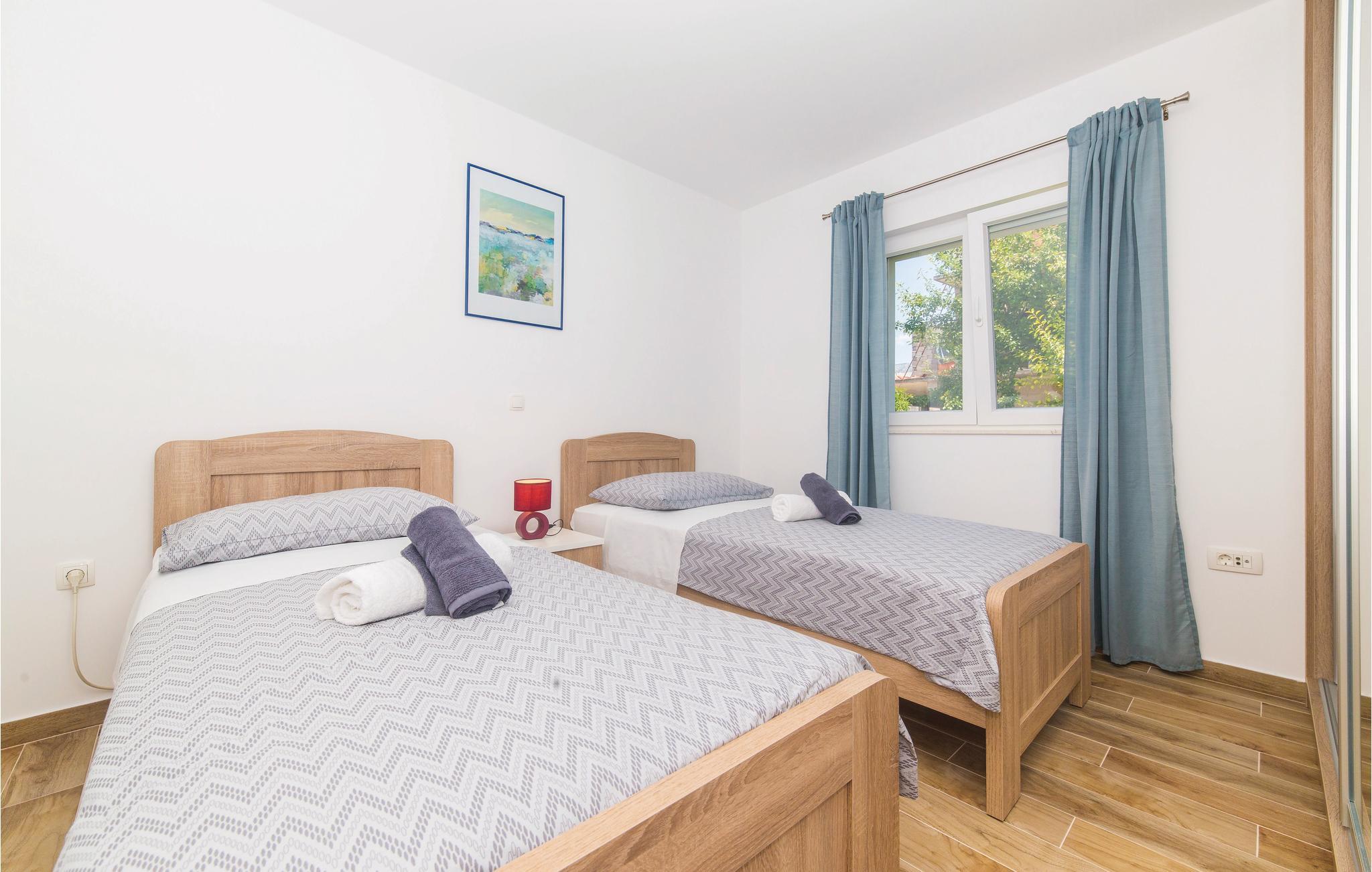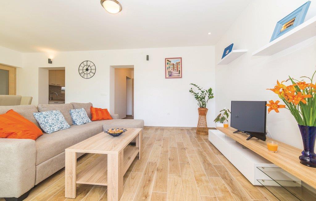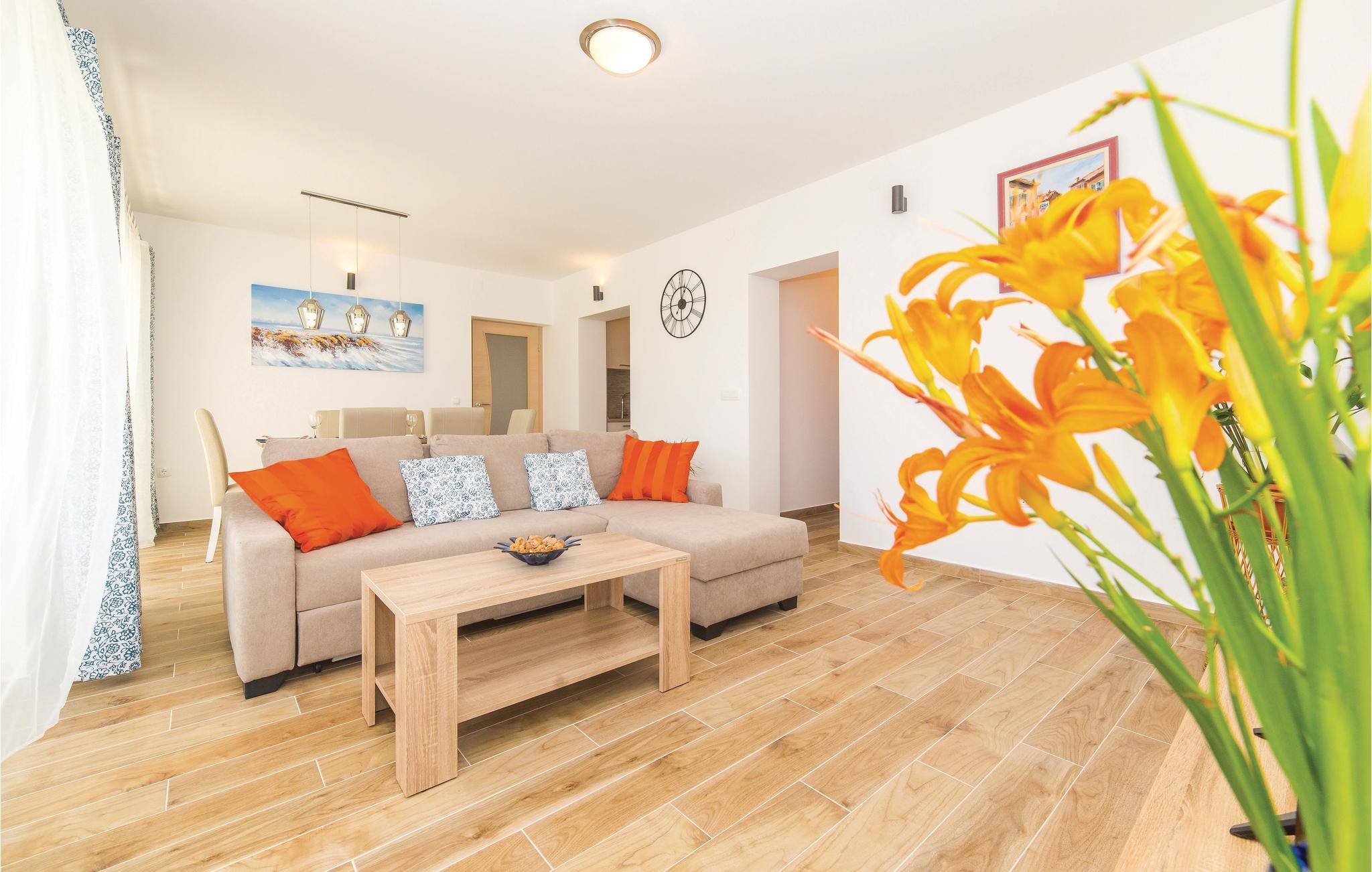 Detta vackra och modernt inredda semesterhus har alla bostadsutrymmen på marknivå. Det är omgivet av en vacker medelhavsträdgård. Där finns också en skuggig grillplats. Fastigheten är inhägnad och innehåller även två parkeringsplatser. Inredningen erbjuder allt för en mysig familjesemester. En stenstrand ligger bara 500 meter bort. Flygplatsen ligger bara 3 km och den historiska staden Trogir bara 8 km från ditt semesterhus. Gör en utflykt utanför Trogir, till öarna Drvenik Veli eller Drvenik Mali. Trogir är en av de äldsta städerna vid Adriatiska havet och har varit permanent bebodd i cirka fyra tusen år. Hela den gamla staden, som ligger på en holme, är ett av Unescos världsarv.