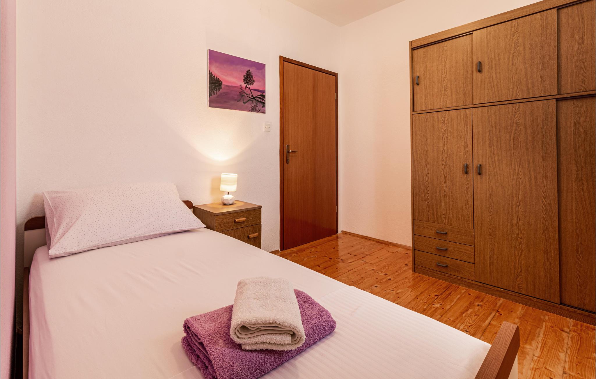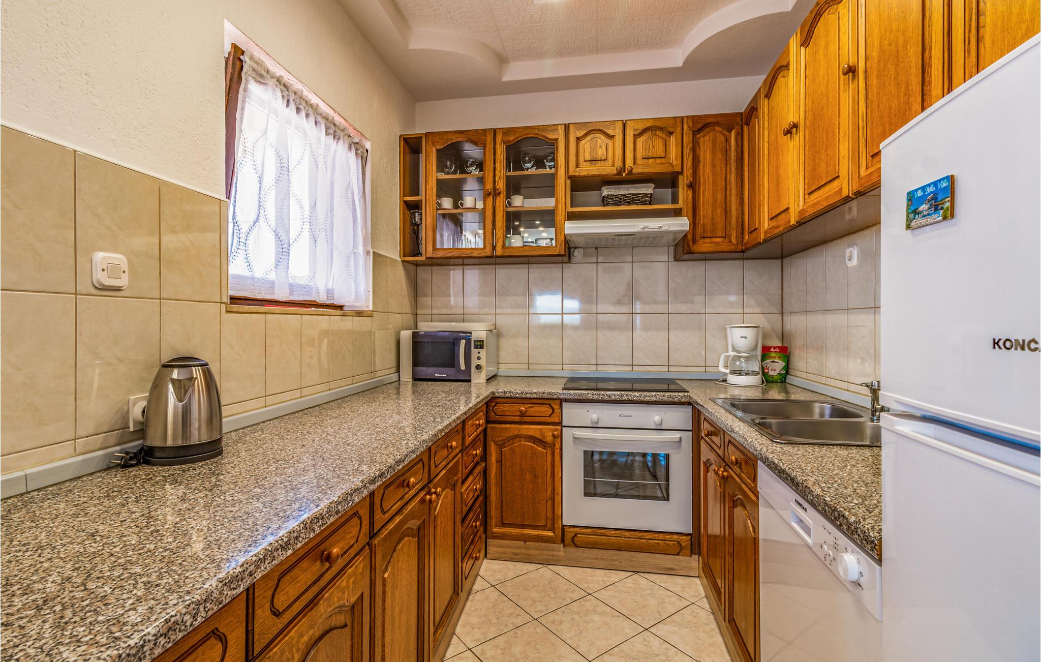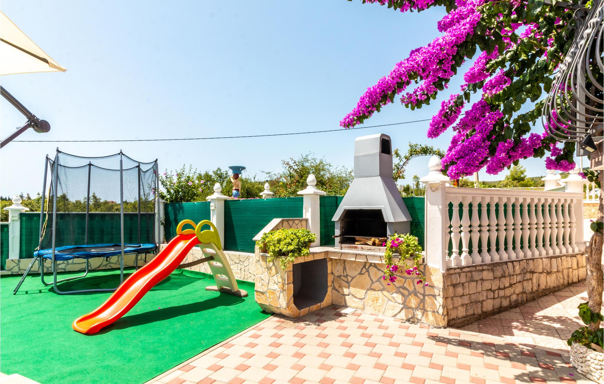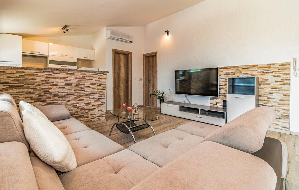 Tillbringa din semester i detta trevligt inredda semesterhus med en vacker panoramautsikt över havet. Huset består av tre boendeenheter, varav en ligger på första våningen och de övriga två på andra våningen. Poolen är idealisk för att njuta och koppla av. Fastigheten är inhägnad, vilket gör den väl lämpad för barn. Uppfarten är oasfalterad de sista 100 metrarna. Utforska de historiska städerna Trogir och Split, vars minnesmärken tillhör Unescos världsarv.