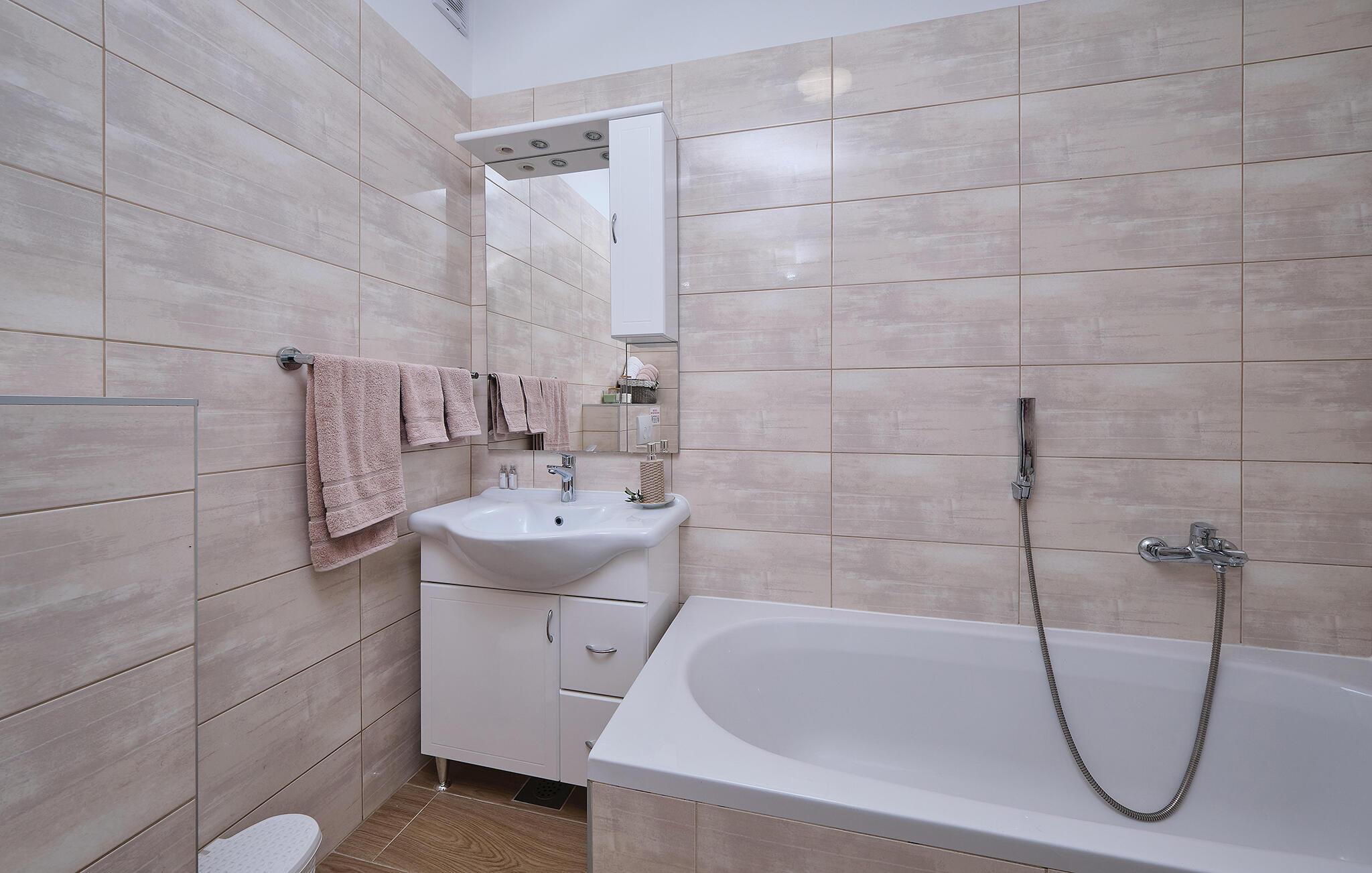 - WC med varmt och kallt vatten, Badkar