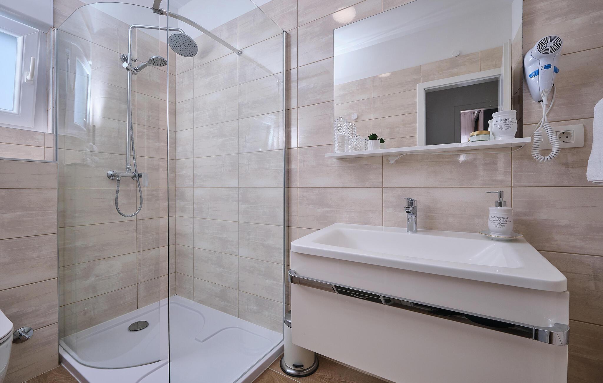 - WC med varmt och kallt vatten, Dusch