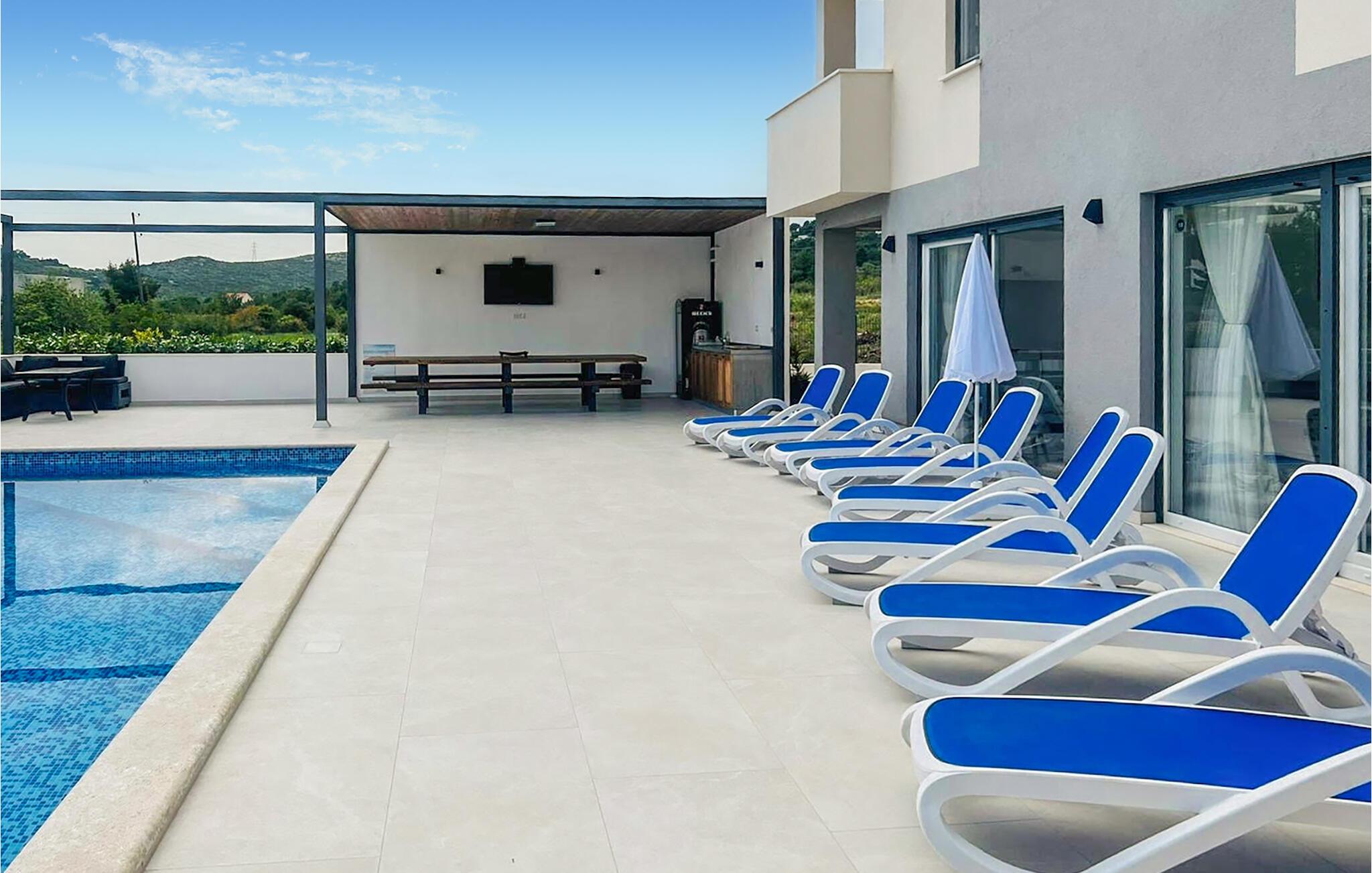 Unna dig en bekväm semester med vänner eller familj i detta rymliga semesterhus med pool.
