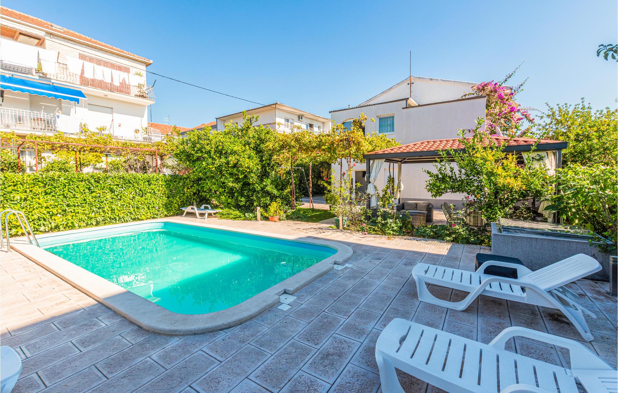 Tillbringa en trevlig vistelse i en av de funktionellt inredda lägenheterna (CDT204 och CDT205). Varje lägenhet har en egen terrass där du kan njuta av ditt morgonkaffe i lugn och ro. Badglädje och förfriskning finns i den gemensamma poolen. Havet och den närmaste stenstranden ligger cirka 200 meter bort. Du kan också besöka Trogirs gamla stad, som ingår i UNSECO:s världsarvslista. Trogirs gamla stad är som en "museiö" och erbjuder sina besökare ett brett utbud av kulturella och historiska sevärdheter.