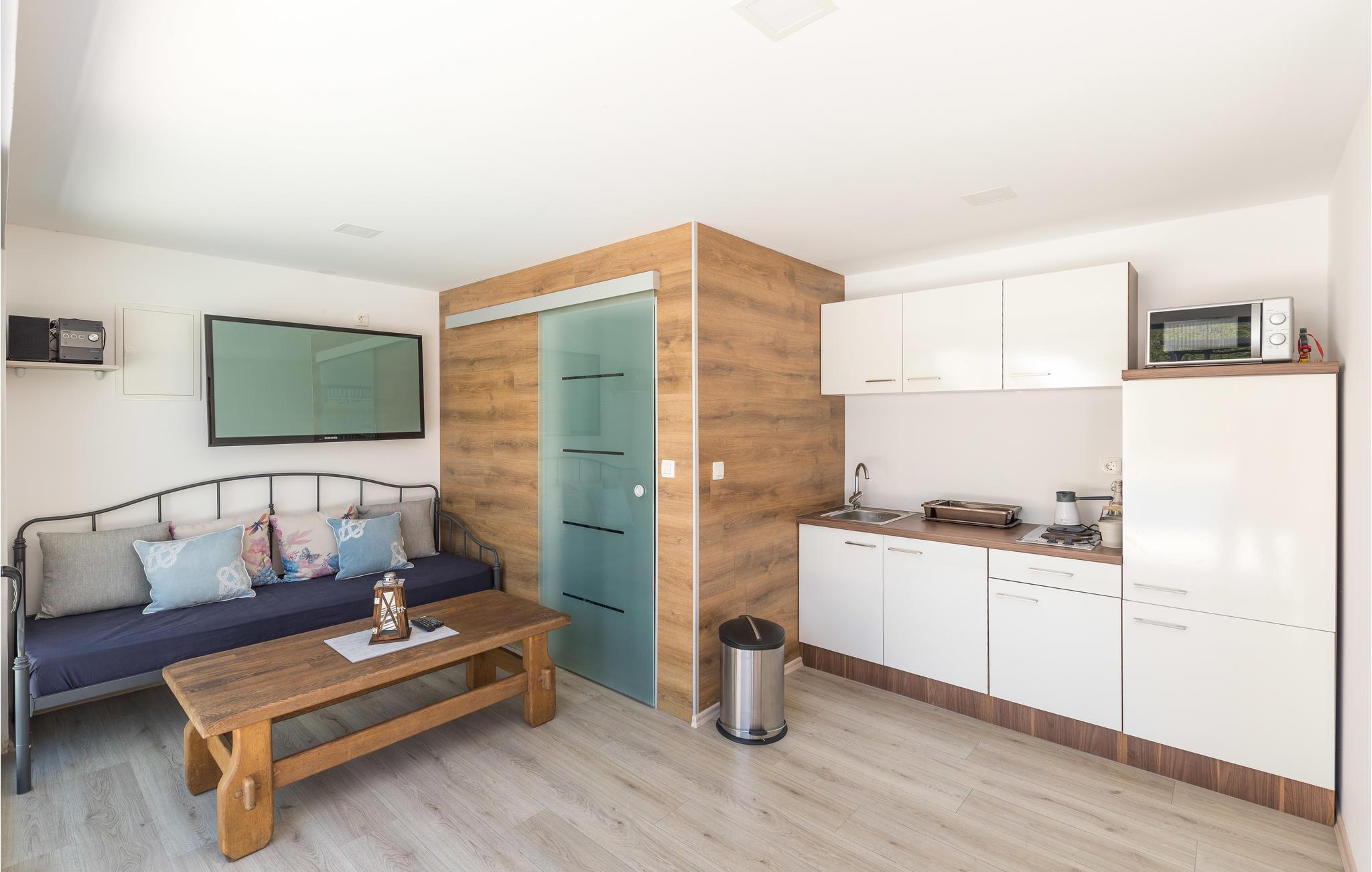 Dessa smakfullt inredda lägenheter med pool ligger på första våningen i ett familjehus. Semesterlägenheterna CDT745 och CDT746 kan vid behov bokas tillsammans. Fastigheten är inhägnad, så de små kan leka bekymmersfritt på gården. Förfriska dig i den gemensamma utomhuspoolen. Det finns en hiss i byggnaden, så boendet är också lämpligt för gäster med rullstol. I staden Trogir, ca 6 km bort, vars historiska gamla stadskärna finns med på Unescos världsarvslista, finns många kulturella och underhållande fritidsalternativ.