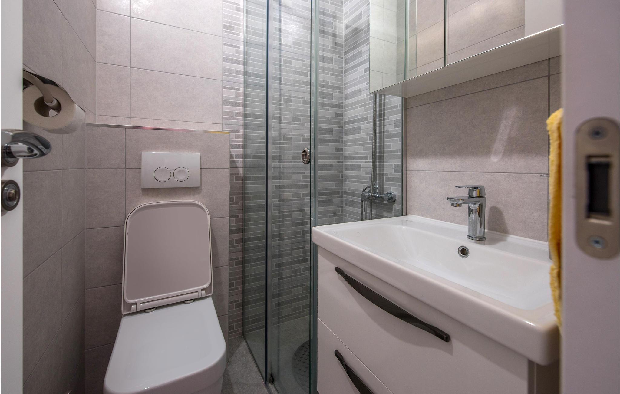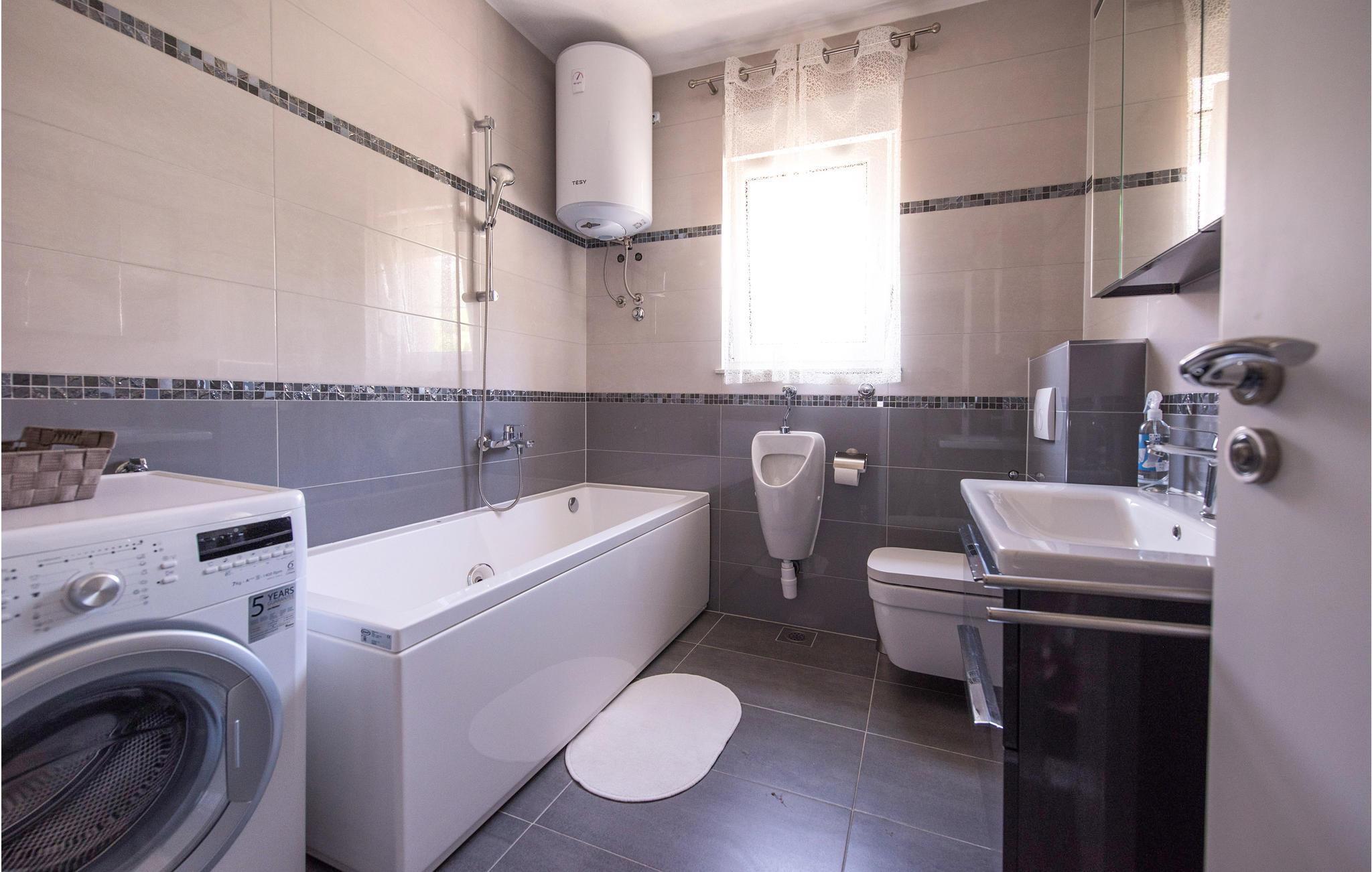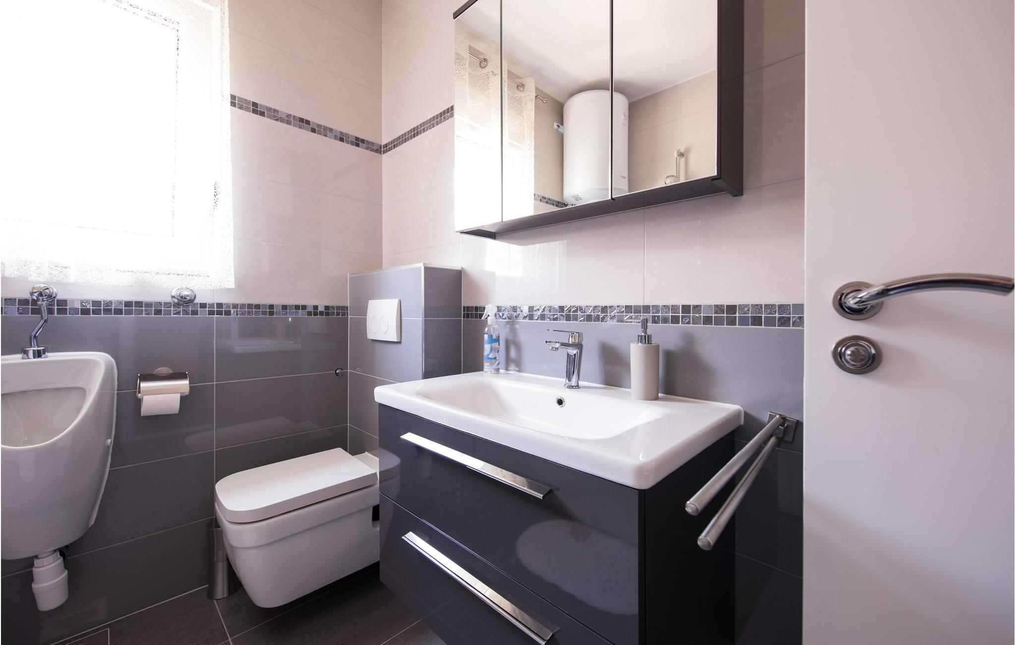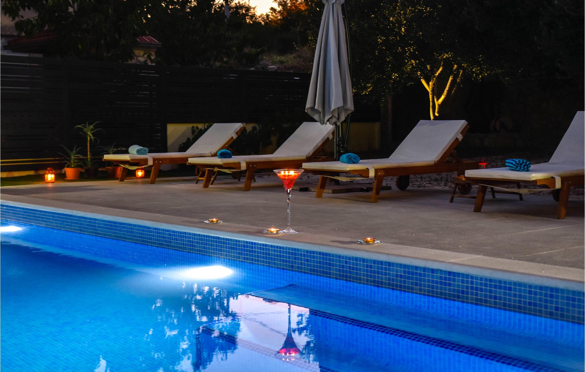 Detta bekväma semesterhus med pool är fördelat på 3 våningar som är förbundna med interna trappor. Det är idealiskt för en semester med flera familjer och vänner. Inredningen på 2 och 3 våningen är modern med 2 badrum per våning. Den funktionellt inredda 1:a våningen erbjuder dig en lika trevlig vistelse. Från terrassen kan du njuta av panoramautsikten över hela bukten, från Split till Trogir. Du kan fräscha upp dig och koppla av i poolen med hydromassagestrålar. Besök de historiska städerna Trogir och Split med många kulturhistoriska sevärdheter, många underhållningsalternativ för alla åldersgrupper och restauranger med utmärkt dalmatiskt kök.