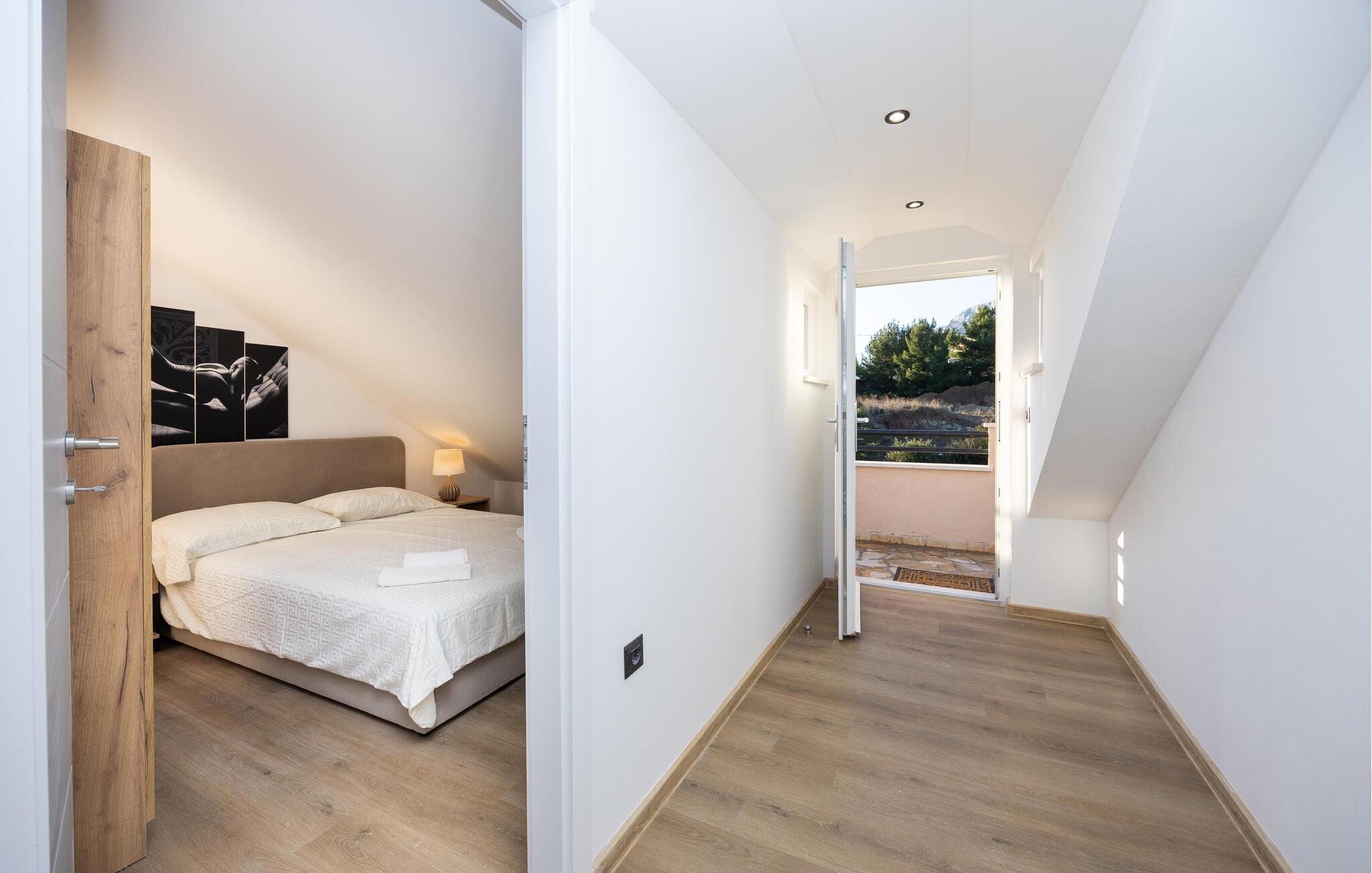 Detta moderna semesterhus välkomnar dig med en ljus och vänlig atmosfär där du kan njuta av trevliga timmar med vänner eller familj. Duka upp läckra måltider, planera dina aktiviteter vid det inbjudande matbordet och samlas för en mysig spelkväll efter en händelserik dag.