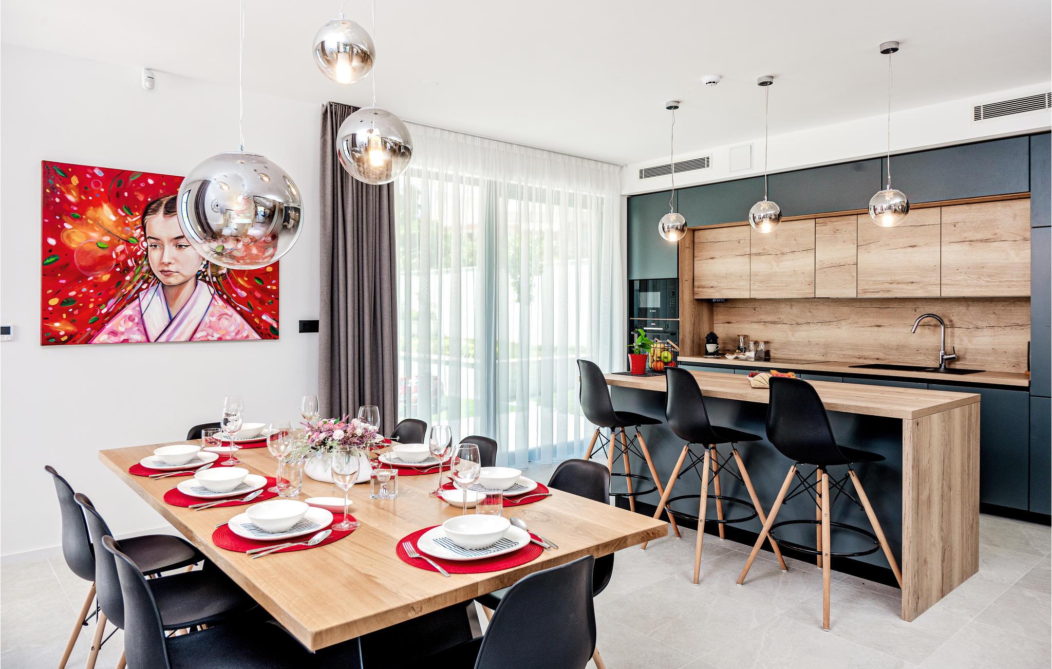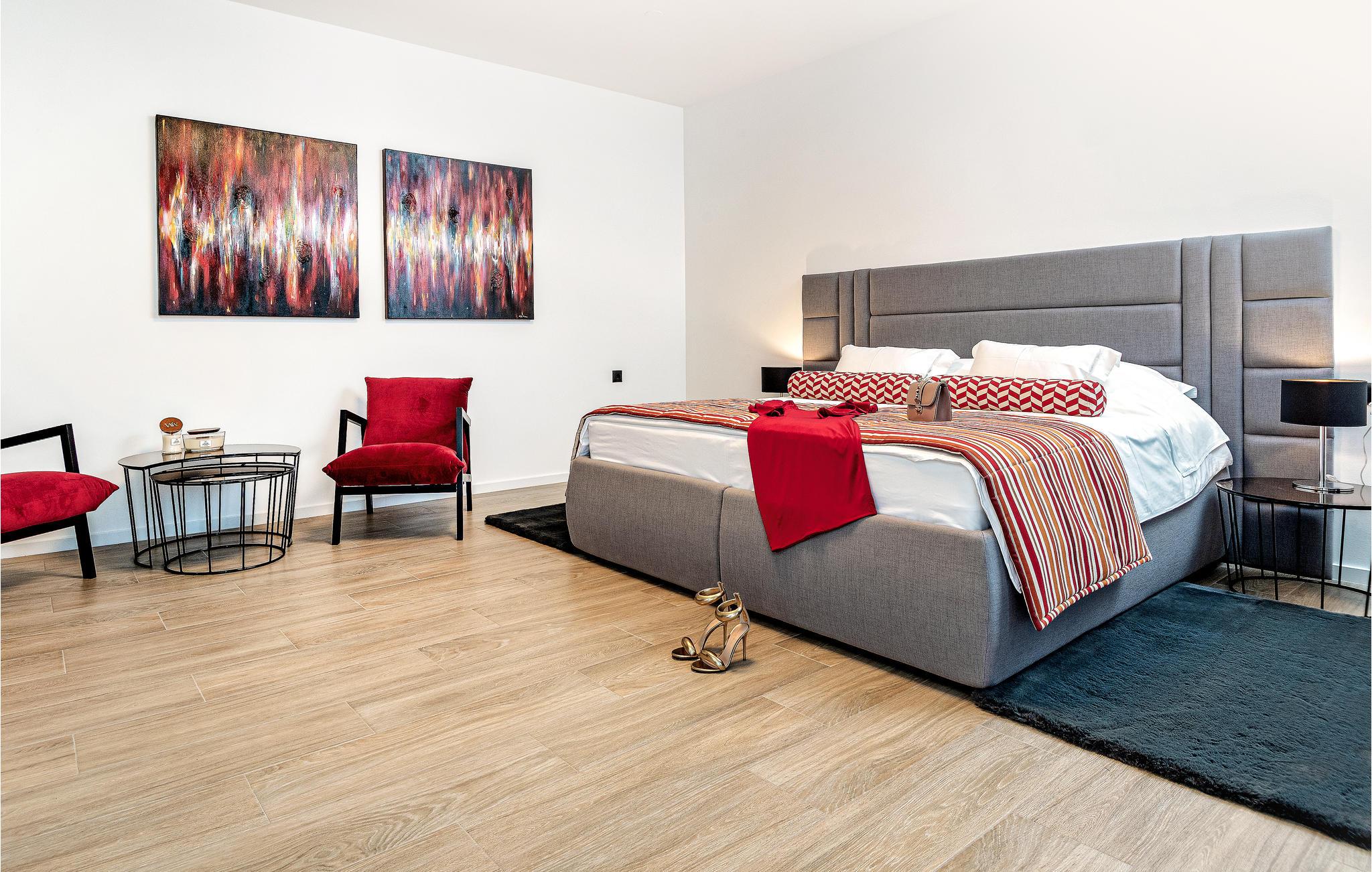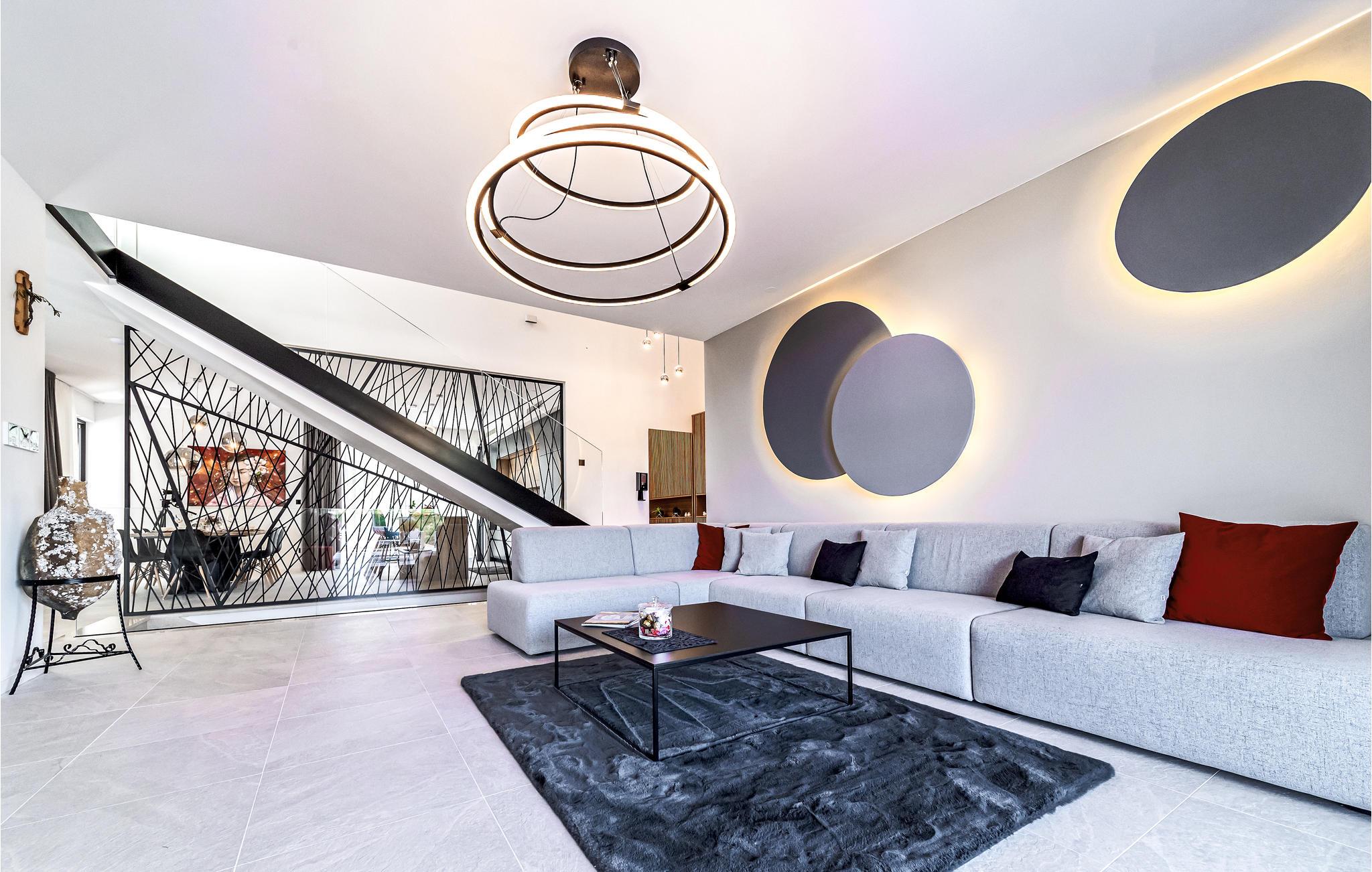 Detta fantastiska semesterhus lämnar inga semesterönskemål ouppfyllda! Det stora huset sträcker sig över flera våningar och erbjuder plats för 8 personer i 4 sovrum och 5 badrum. Förutom stilfulla och högkvalitativa möbler kan du förvänta dig bekvämligheter som ett välutrustat fitnessområde, bastu, smart-tv, PlayStation4 och bordsfotboll.