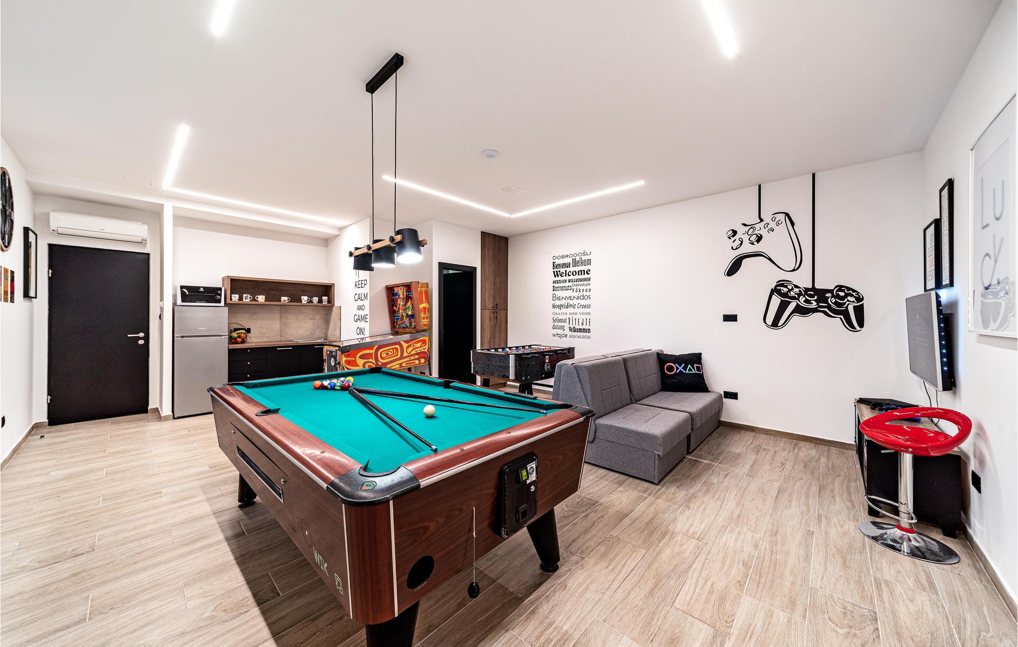En höjdpunkt i huset är den stora inomhuspoolen, där du kan tillbringa avkopplande dagar med att simma. Med fyra balkonger och två terrasser kan du alltid hitta en plats att koppla av på med en kall dryck eller en bra bok. I samråd med ägaren kan du använda en typisk dalmatisk taverna ( ett rum med matplats, kök och öppen spis).