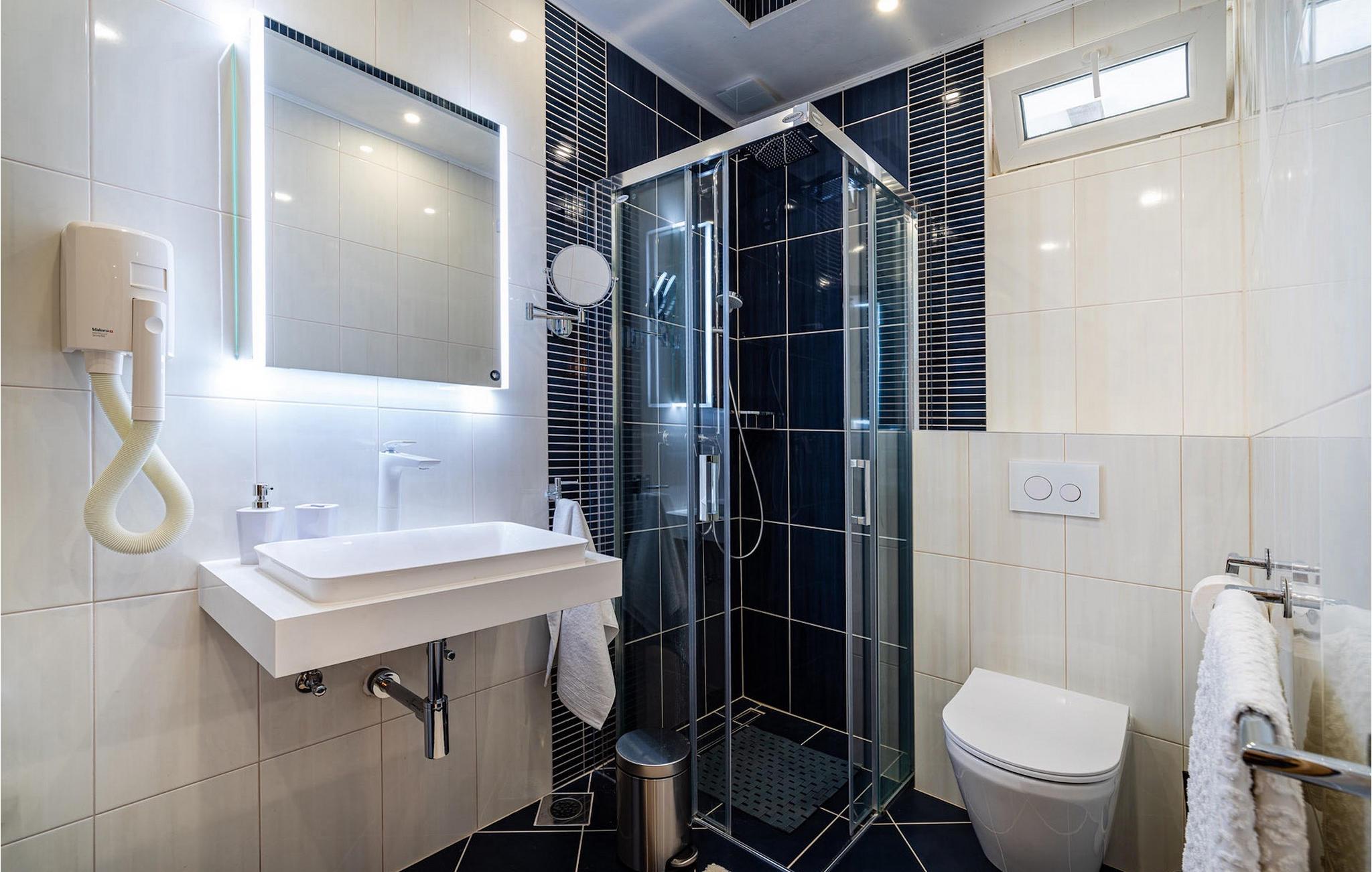 - WC med varmt och kallt vatten, Dusch