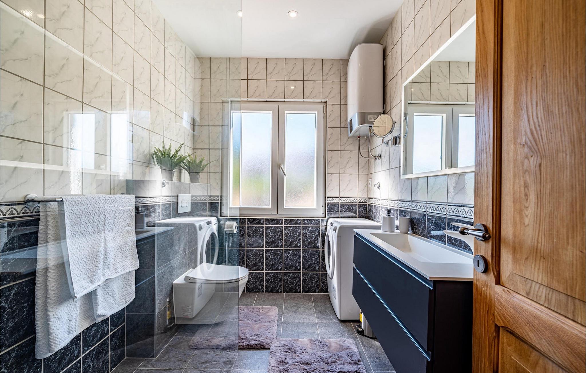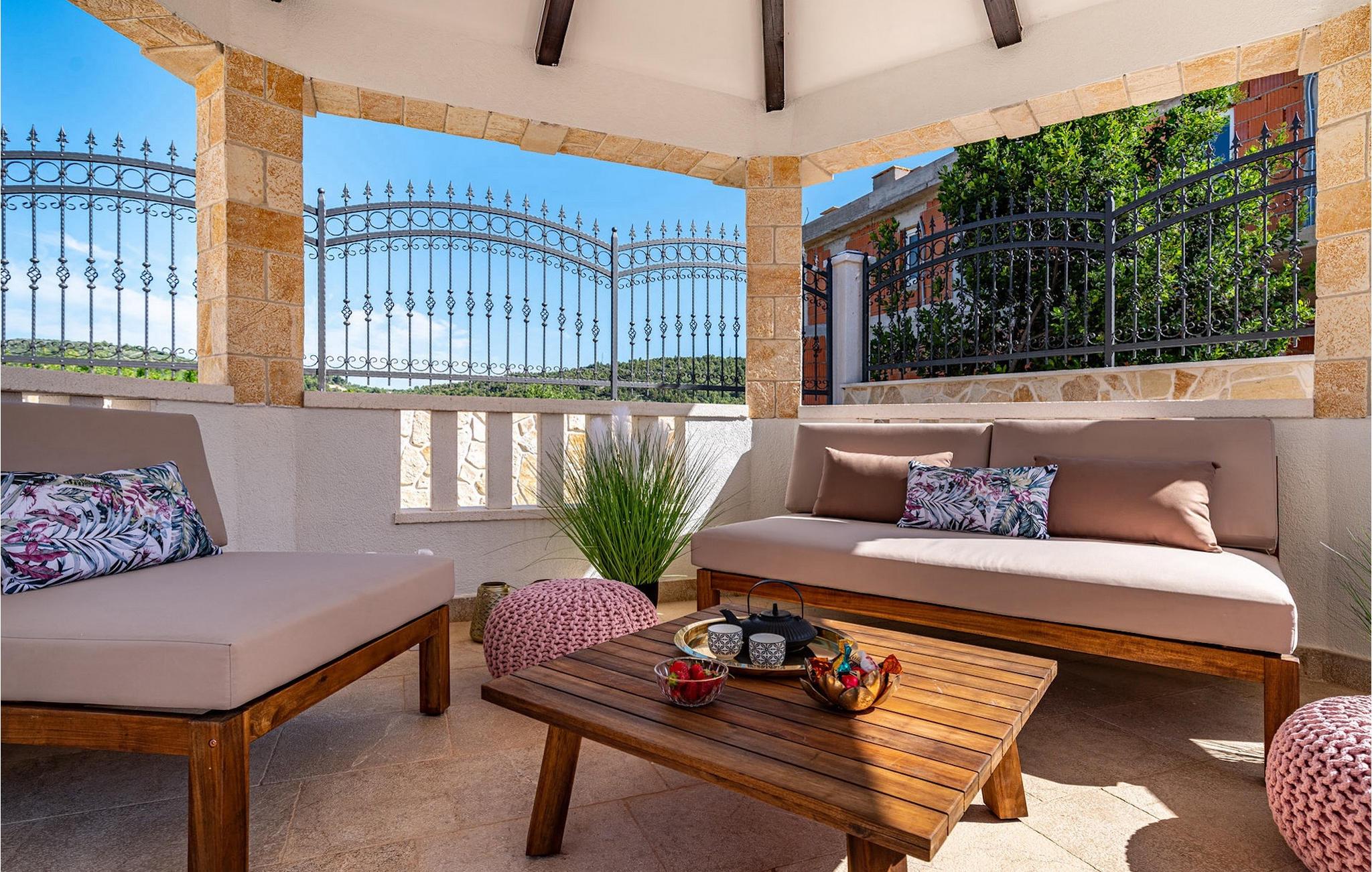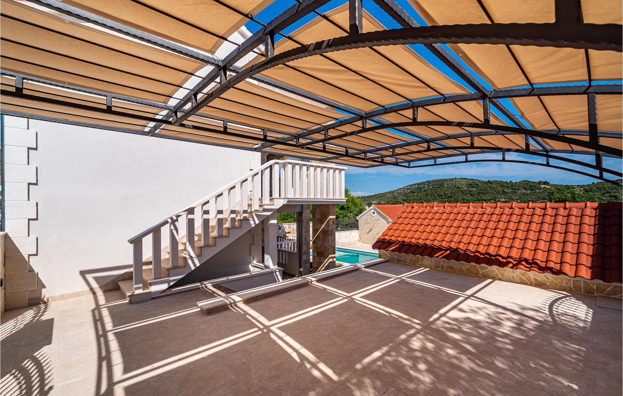 Utomhus kan du njuta av den uppfriskande 35m2 poolen, njuta av den dalmatiska solen på en av solstolarna eller samla familj och vänner i den mysiga täckta loungen för att planera utflykter tillsammans i den vackra regionen. Wellnessentusiaster bör inte glömma att nämna bastun i poolhuset, barnen kommer säkert att ha roligt med spelkonsolen och som en liten höjdpunkt för vinälskare kommer vinkylen i båda köken säkert inte att vara malplacerad. Som du kan se finns det något för alla. :-)