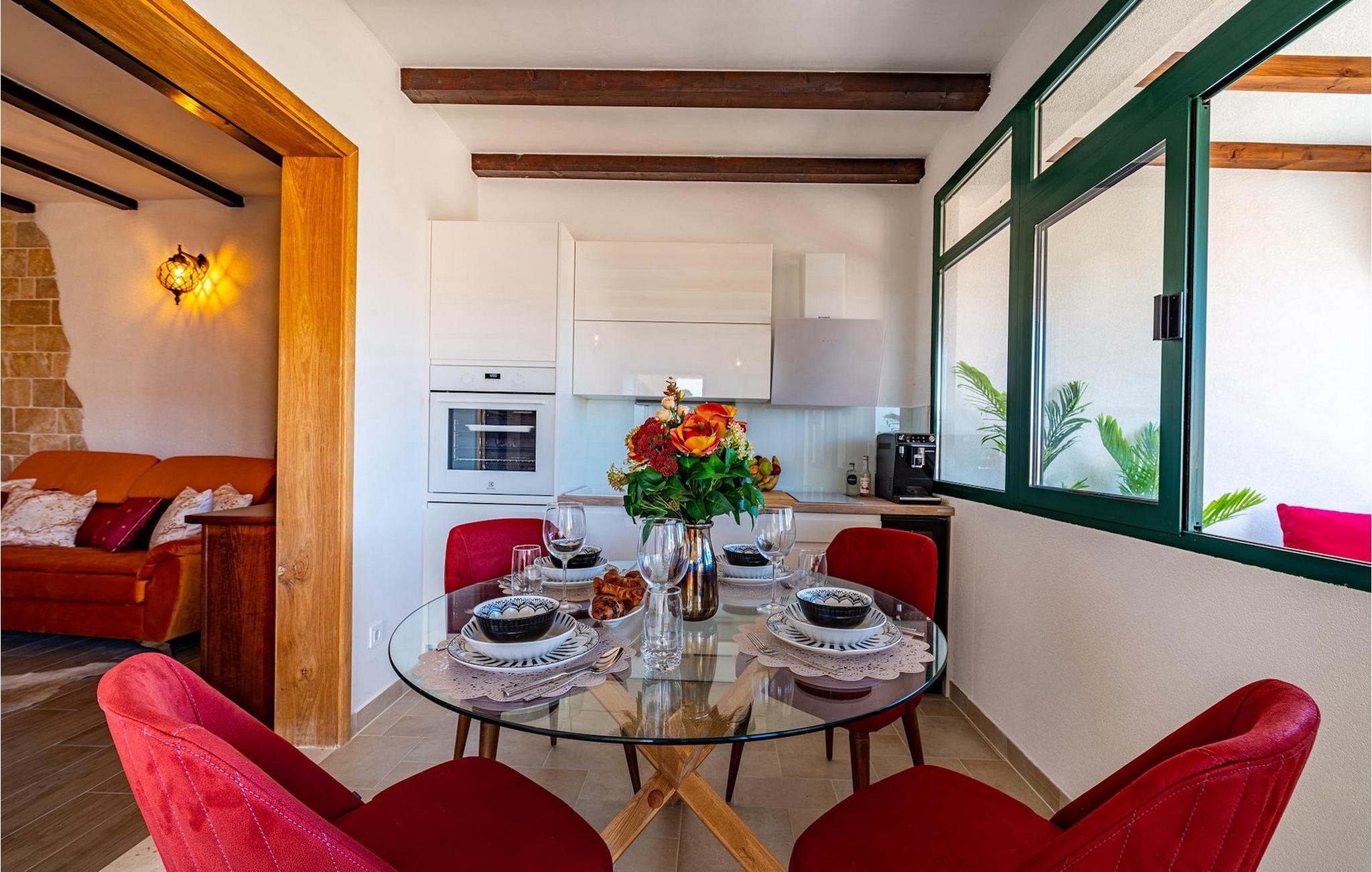 Villa Heritage Resort är perfekt för 2 familjer som vill tillbringa sin semester tillsammans och ändå värdesätter avskildhet. Den traditionella stenvillan ligger i den lilla byn Vrsine inte långt från Split och erbjuder två lägenheter på två våningar, var och en med vardagsrum och matplats och ett fullt utrustat kök. Varje lägenhet har ett sovrum med en bekväm dubbelsäng, en bäddsoffa i vardagsrummet för ytterligare 2 personer och ett modernt badrum. Totalt kan Villa Heritage Resort rymma 8 gäster.