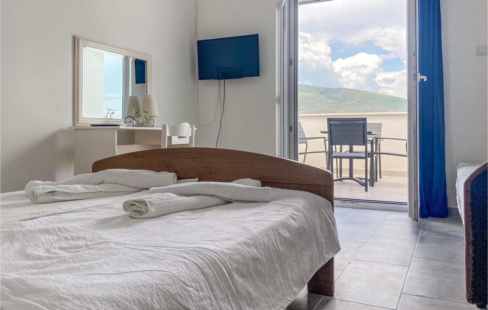 Koppla av på ön Iovo, där endast 54 steg skiljer dig från havet. Njut av den underbara panoramautsikten över havet och fastlandet. Framför semesterhuset finns en rymlig terrass, där du kan tillbringa många trevliga timmar utomhus med en grill. På bottenvåningen finns ett vardagsrum, ett kök och ett sovrum, medan det på övervåningen finns ytterligare två sovrum, ett minikök och en annan terrass. Det finns bara externa trappor. Här bor ni nära vackra vikar och stränder och gamla stan i Trogir, som också är värd ett besök.