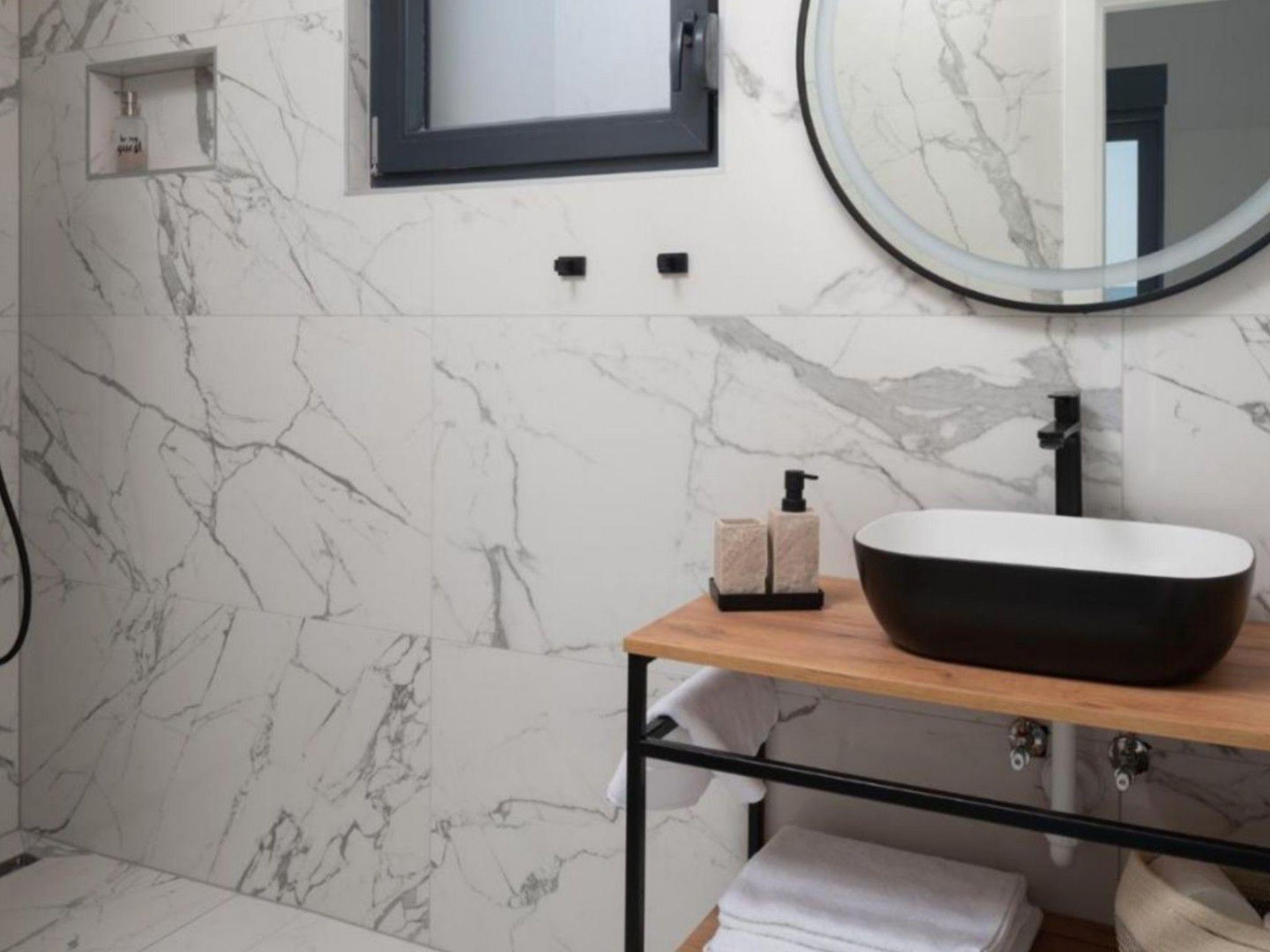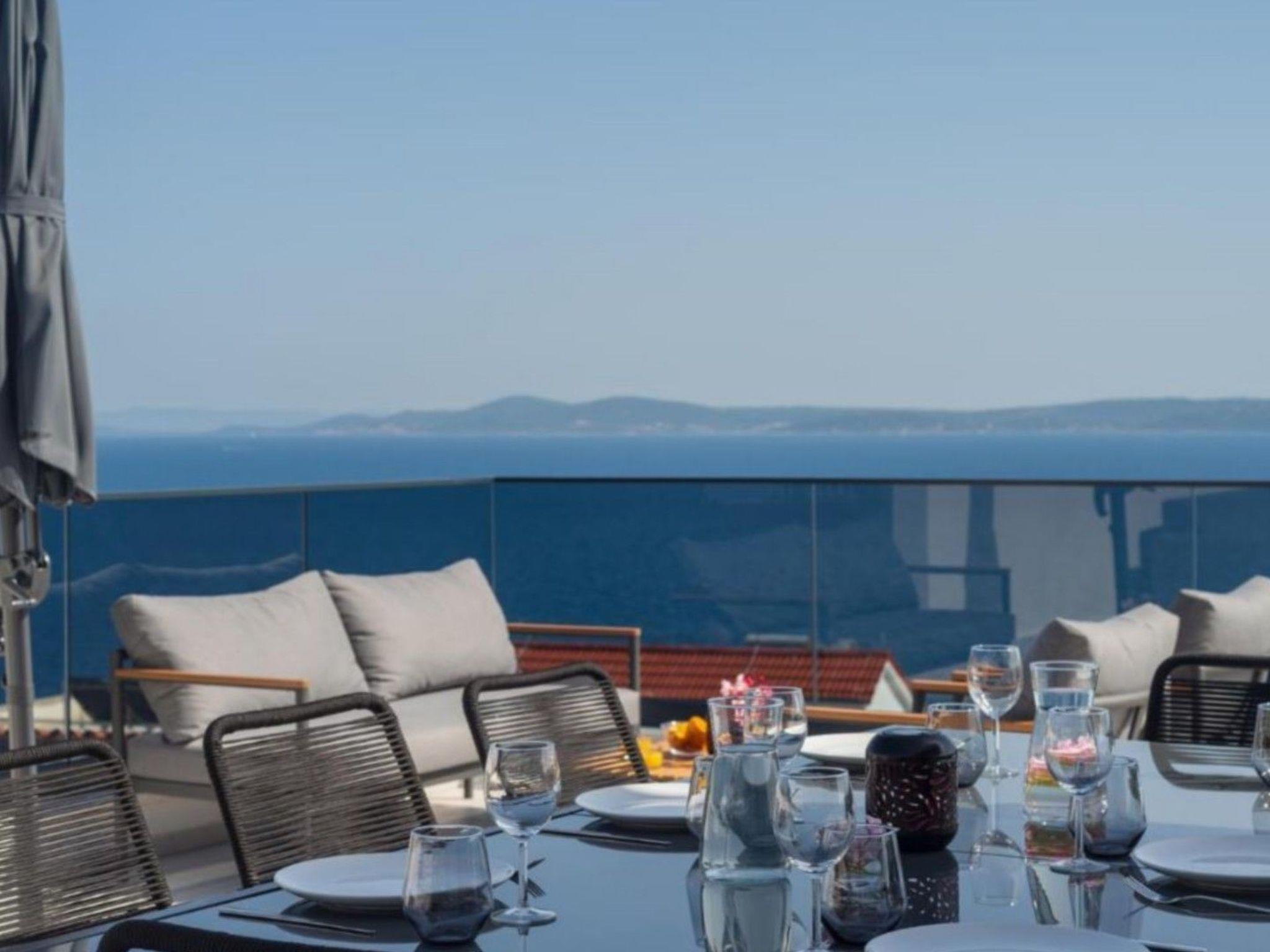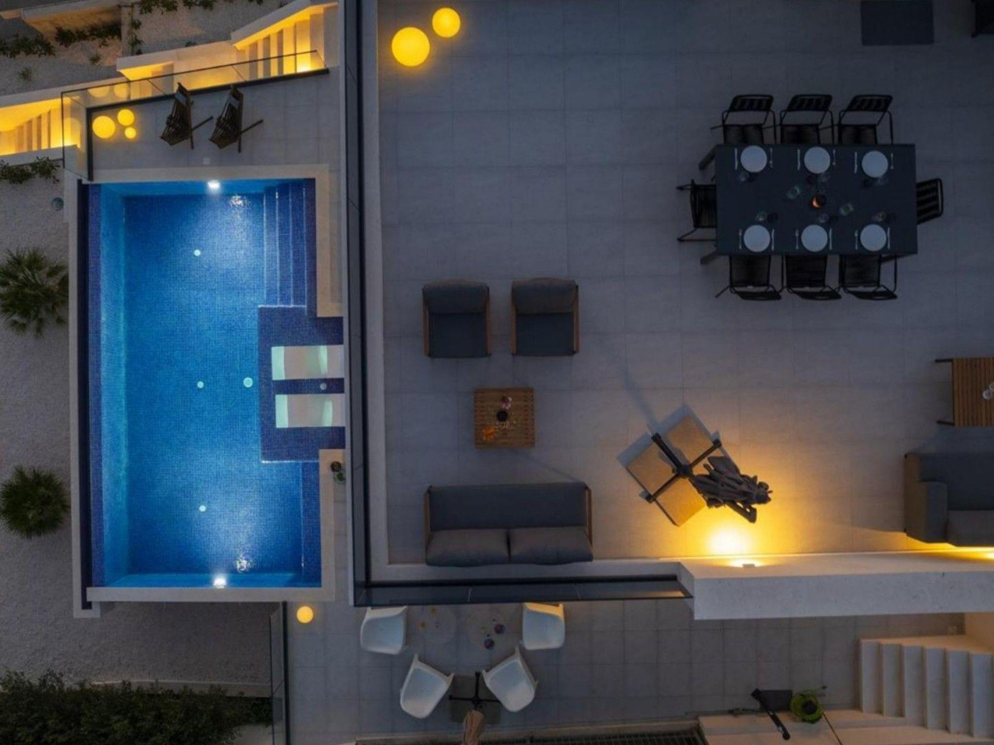 This modern, spacious villa in a quiet area provides everything needed for a relaxing vacation with friends or family, including a spectacular sea view from the terrace. Luxury Villa Julian has 200 m² of living space, divided into a ground floor, a first floor, and a rooftop terrace. It has four bedrooms, three bathrooms, and one half-bath, comfortably accommodating up to nine people. The ground floor is designed as a resting area and consists of 3 air-conditioned bedrooms with double beds (one of the beds can be separated into two single beds). One of the bedrooms has its own private bathroom, while the other two share a bathroom. All bedrooms offer a sea view and have direct access to the outdoor area with the pool. The first floor is designed as a lounge area, featuring a spacious open-concept living room, a fully equipped kitchen with a dining area, one bedroom with a double bed, a bathroom, and a half-bath.