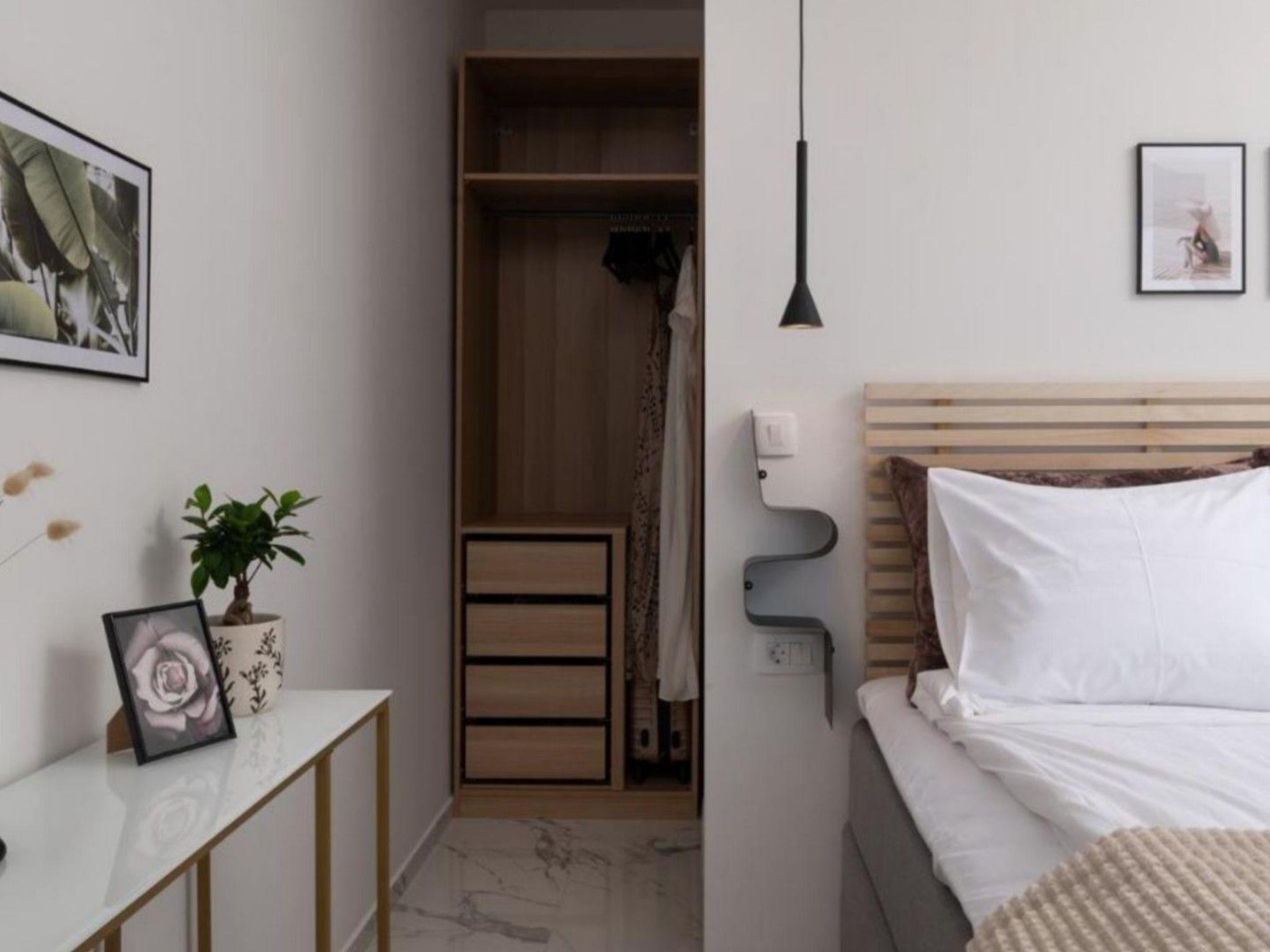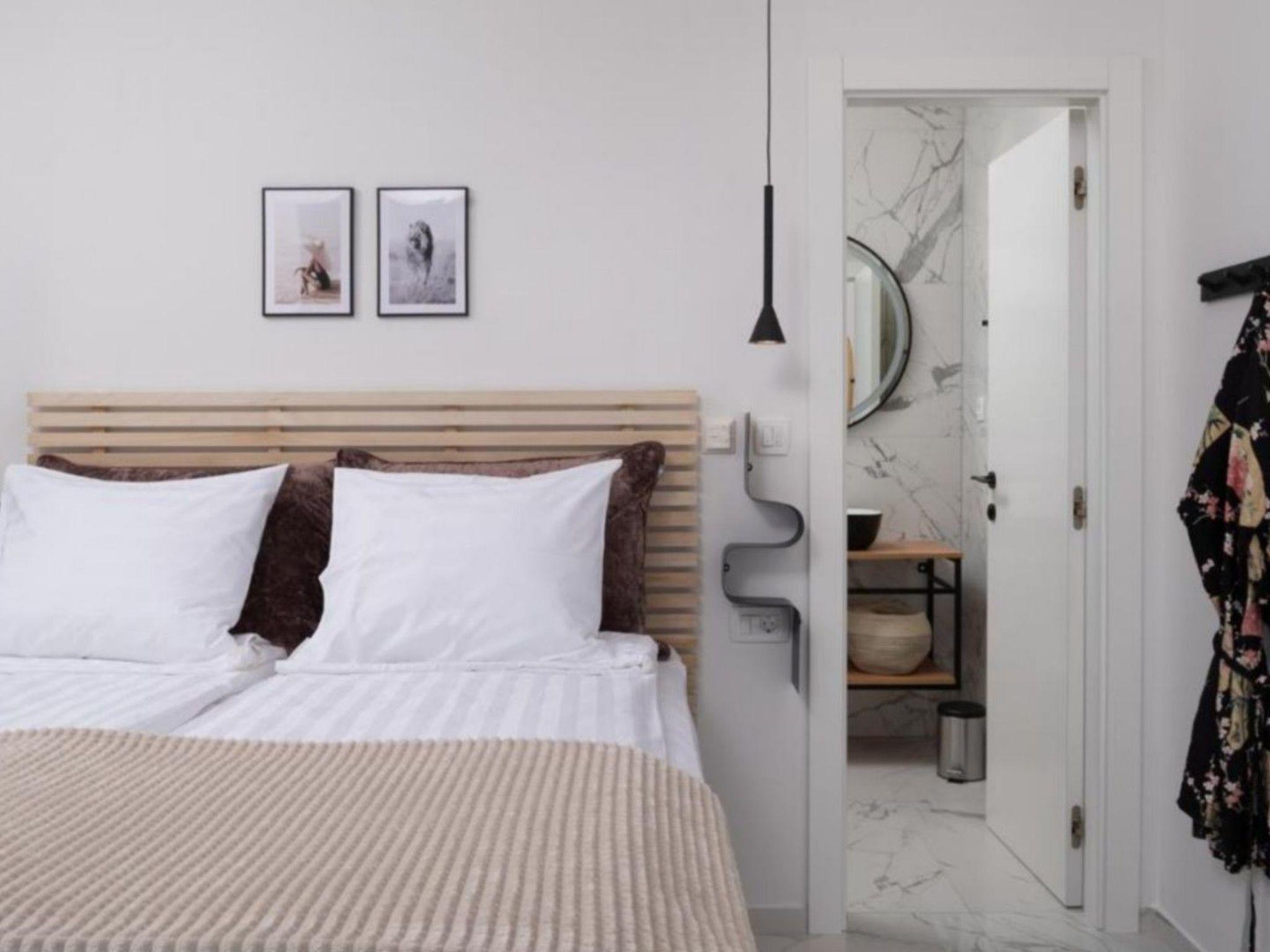 A staircase leads to the rooftop terrace, where guests can enjoy a dining table and a grill for preparing meals while admiring the sea view. The outdoor area features a private heated pool (30 m²) surrounded by sun loungers, where guests can relax during hot summer days. The pool area is also equipped with an outdoor shower, parasol, table, and chairs.