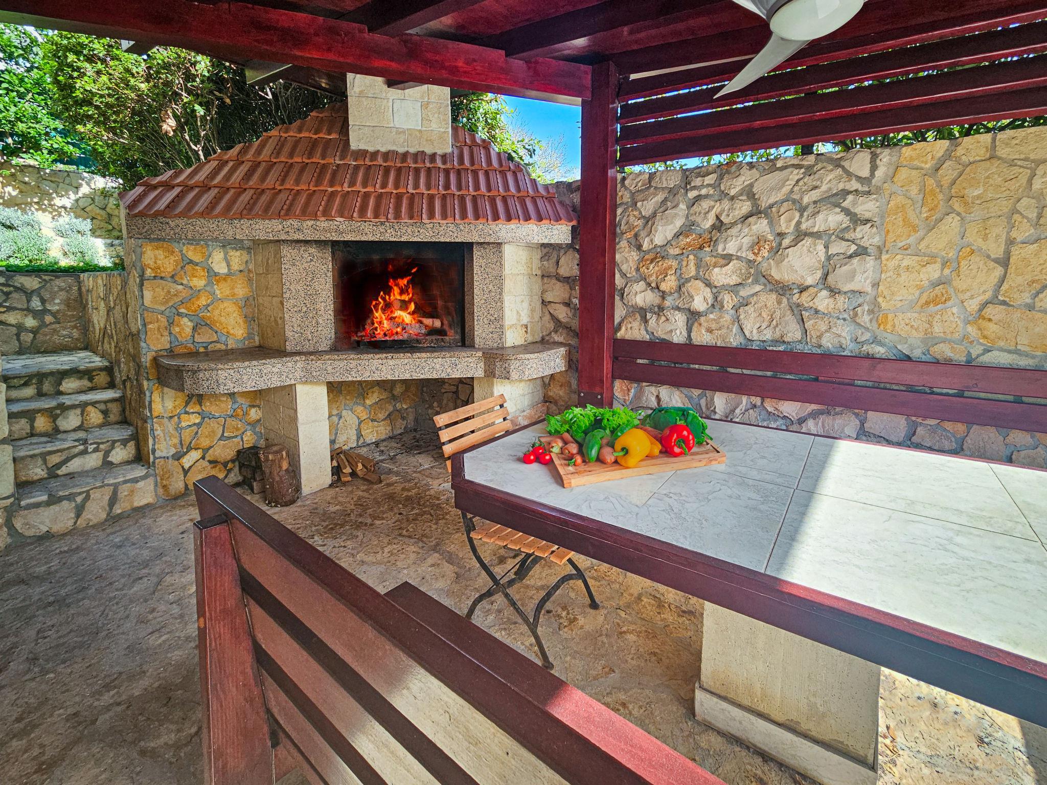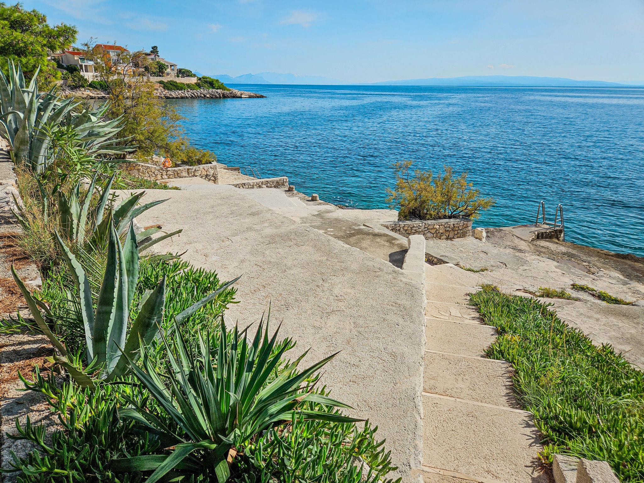 Okrug gornji 5 km from Trogir: Beautiful, comfortable 2-family house "Lille", 2 storeys. 1 km from the centre of Okrug gornji, in a quiet, sunny position, 50 m from the sea, 50 m from the beach, in a cul-de-sac, south facing position. For shared use: property 330 m2. Terrace (40 m2), garden furniture, barbecue. In the house: internet access. Parking (for 2 cars). Shop 1 km, restaurant 500 m, bus stop 1.8 km, pebble beach 1.5 km, rocky beach 50 m. Please note: suitable for families.