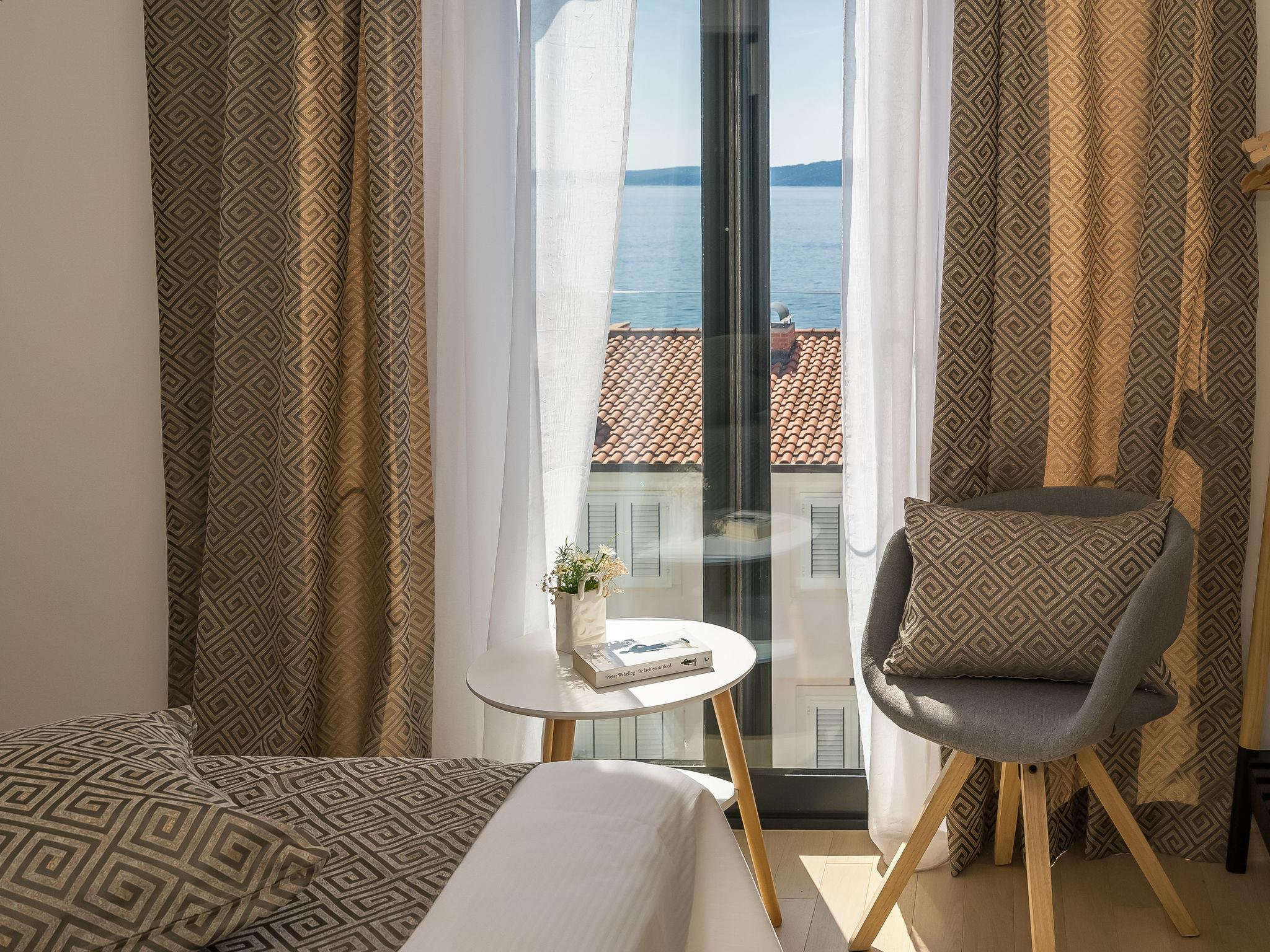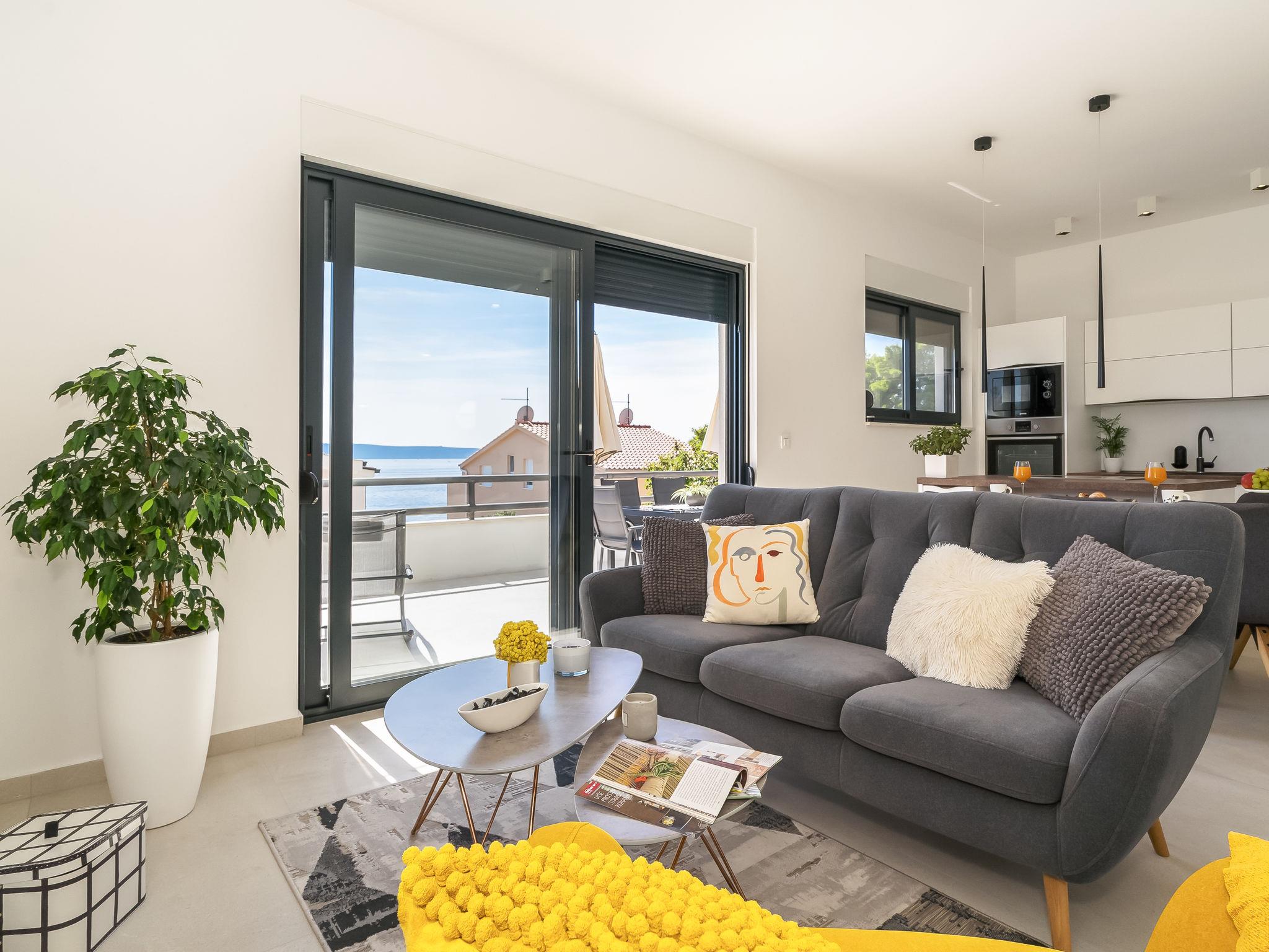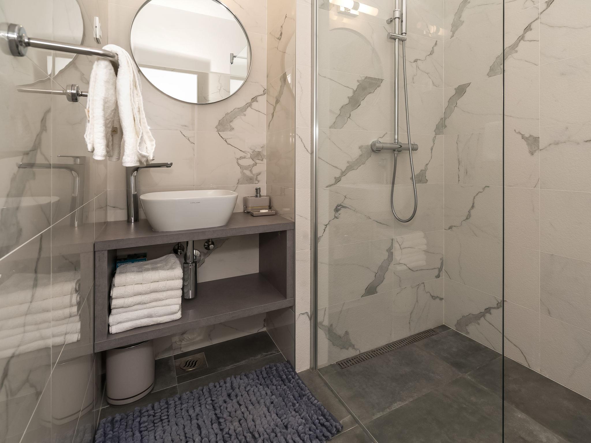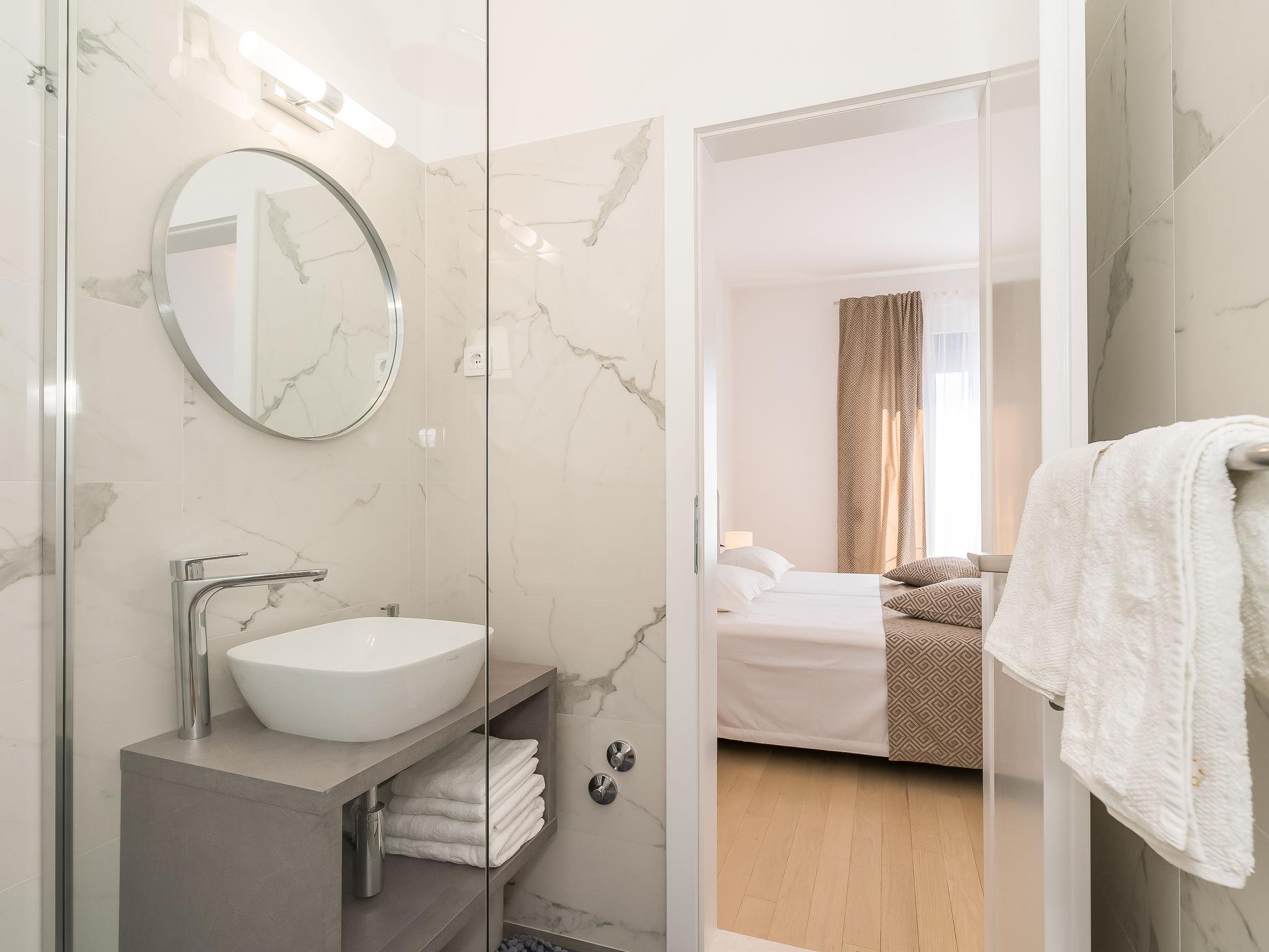 Okrug Gornji (Ciovo) 6 km from Trogir: Open staircase. Semi-detached house "Villa Meri 2", 2 storeys, built in 2019. 1.5 km from the centre of Okrug Gornji, in a quiet, sunny, elevated position, 60 m from the sea, 60 m from the beach. For shared use: swimming pool angular (7 x 4 m, 30 m2, depth 140 cm, seasonal availability: 01.May. - 15.Oct.) with internal staircase. Terrace (60 m2), garden furniture, barbecue. Private: outdoor shower. In the house: internet access, washing machine. Parking (for 2 cars) at the house on the premises. Shop 250 m, restaurant 200 m, bus stop 1.8 km, pebble beach 150 m, rocky beach 60 m. Please note: airfield 6 km from the property. Property ref. HR4910.304 is situated on the same property.