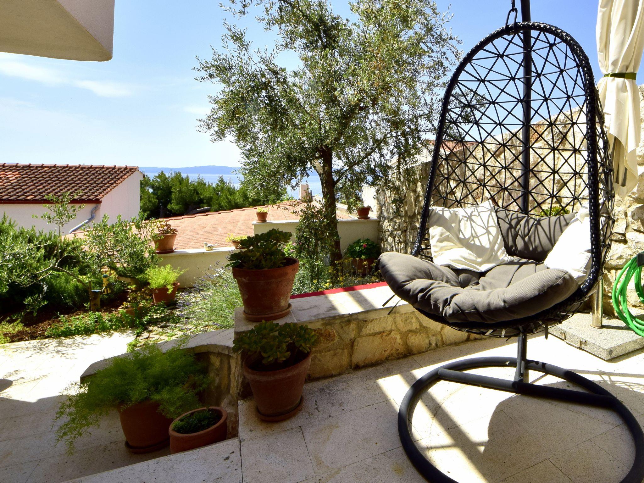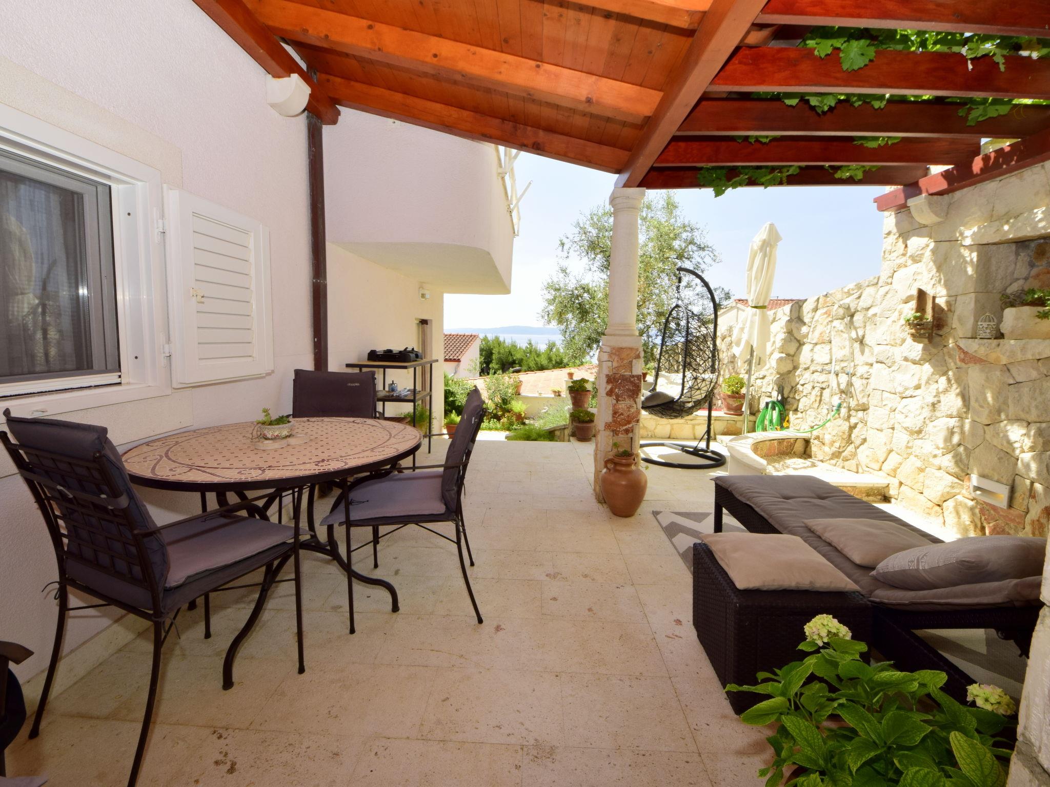 Okrug Gornji (Ciovo) 6 km from Trogir: Apartment house "Villa Meri". 1.5 km from the centre of Okrug Gornji, in a quiet, sunny, elevated position, 60 m from the sea, 60 m from the beach. For shared use: swimming pool angular (7 x 4 m, 30 m2, depth 140 cm, seasonal availability: 01.May. - 15.Oct.) with internal staircase. Outdoor shower, terrace (60 m2), garden furniture, barbecue. In the house: internet access. Motor access to the house. Parking at 100 m on the premises. Shop 250 m, restaurant 200 m, bus stop 1.8 km, pebble beach 150 m, rocky beach 60 m. Please note: airfield 6 km from the property. Additional accommodations can be booked. Property ref. HR4910.303 is situated on the same property.