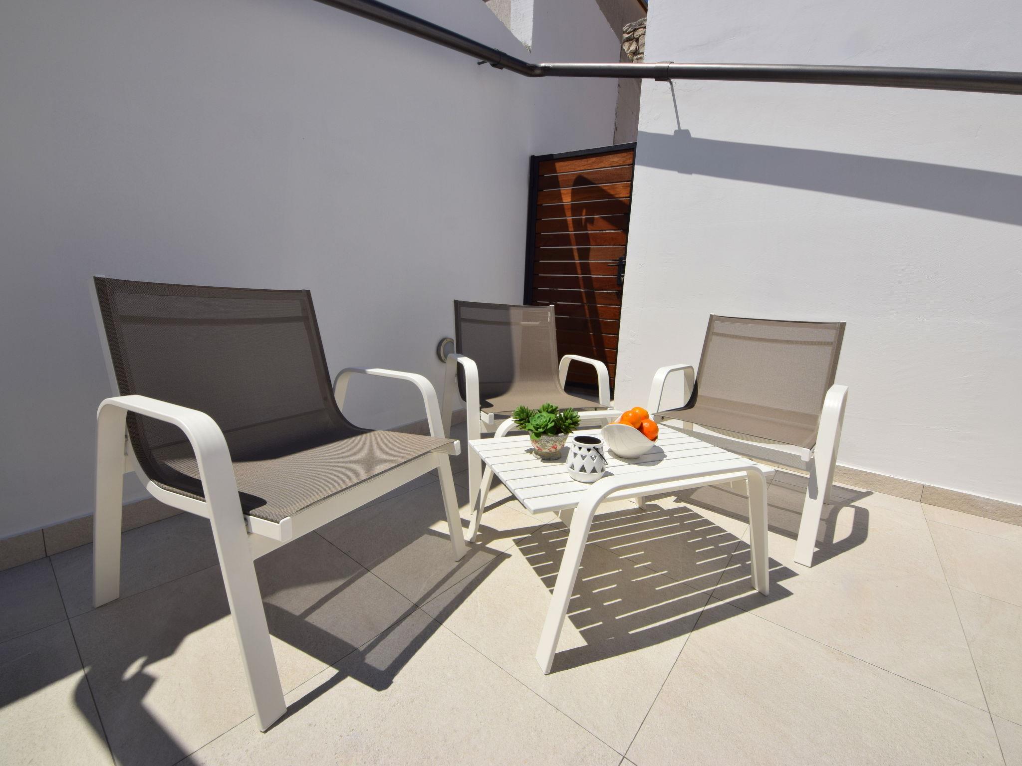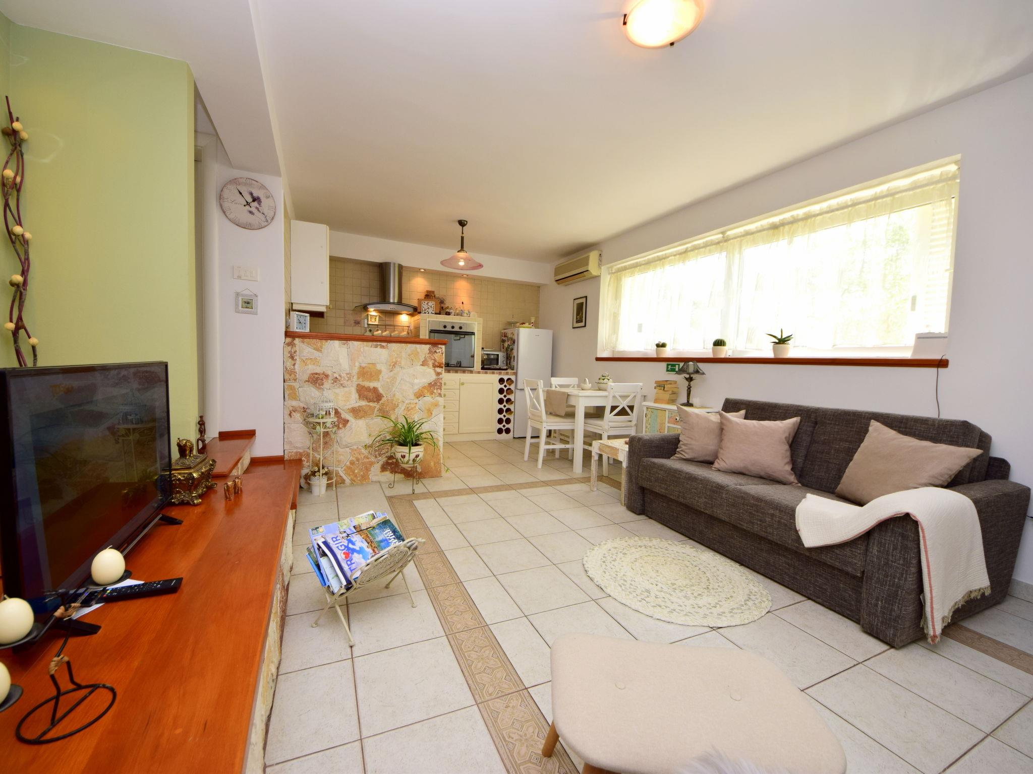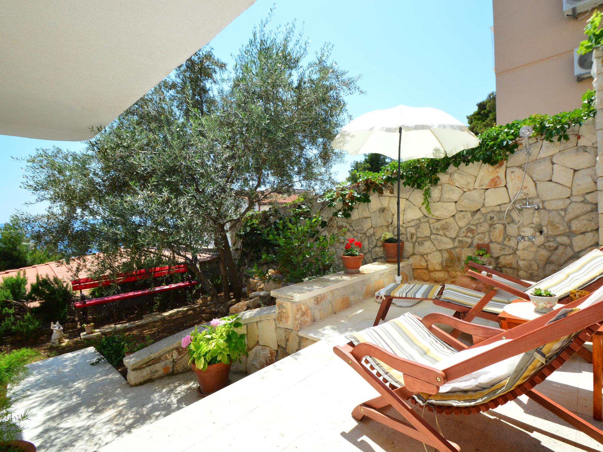2-room apartment 46 m2, on the ground floor. Beautiful and tasteful furnishings: living/dining room 24 m2 with satellite TV, DVD and air conditioning. Exit to the terrace. 1 room with 1 double bed (2 x 90 cm, length 200 cm). Open kitchen (4 hot plates, oven, dishwasher, microwave, freezer). Shower/bidet/WC. Terrace 15 m2, roofed, south facing position. Terrace furniture, barbecue (portable). Facilities: Internet (WiFi, free). Please note: maximum 1 pet/ dog allowed. Outside shower on the terrace.