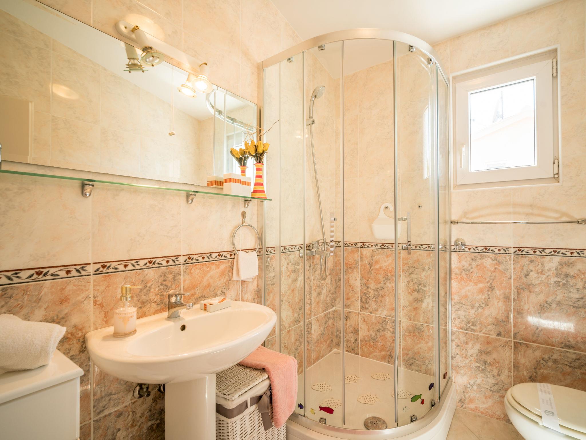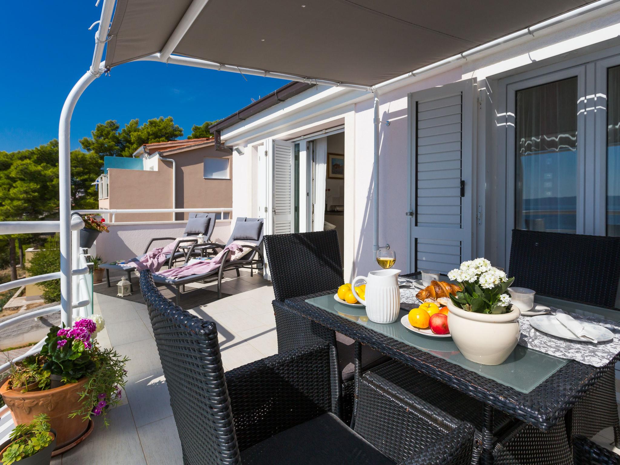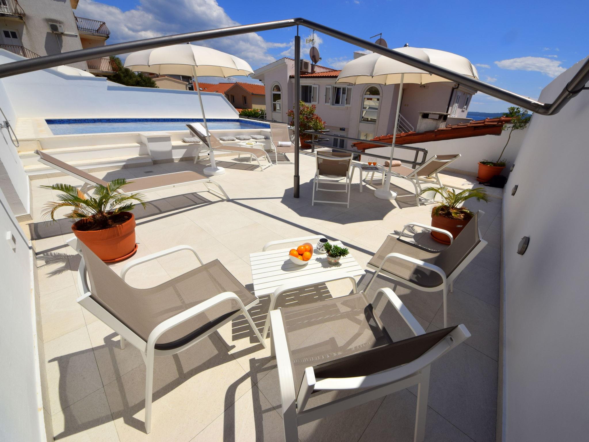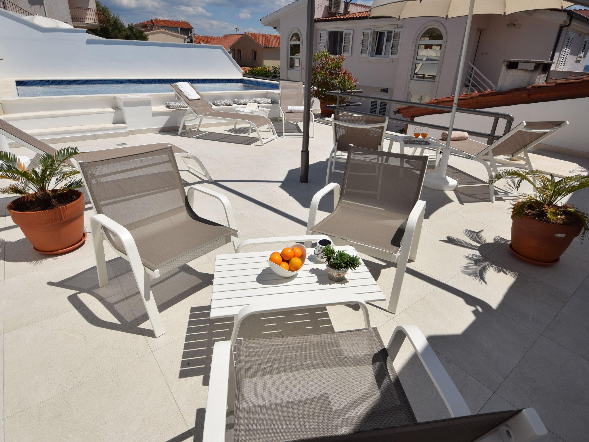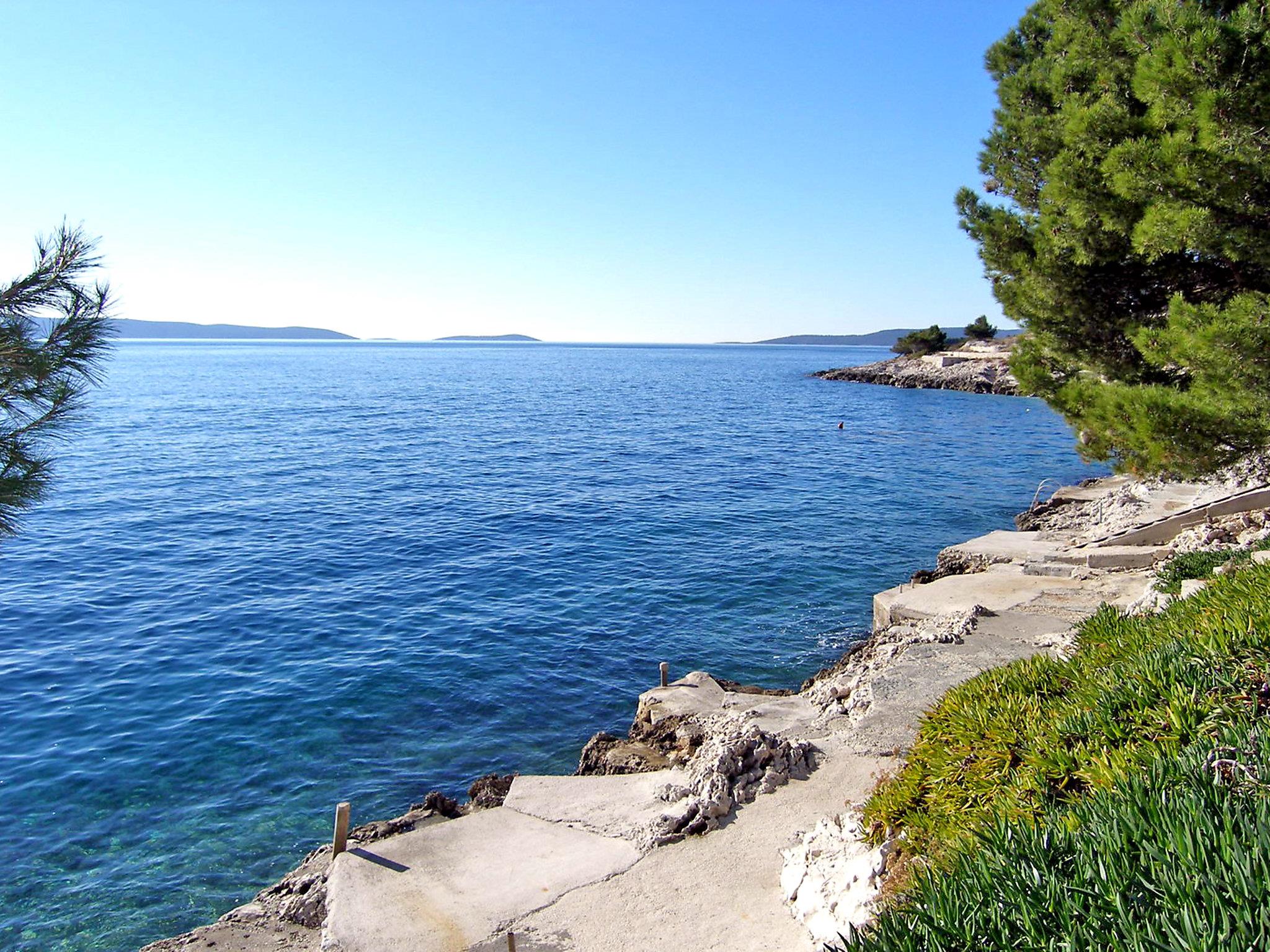 Okrug Gornji (Ciovo) 6 km from Trogir: Apartment house "Villa Meri". 1.5 km from the centre of Okrug Gornji, in a quiet, sunny, elevated position, 60 m from the sea, 60 m from the beach. For shared use: swimming pool angular (7 x 4 m, 30 m2, depth 140 cm, seasonal availability: 01.May. - 15.Oct.) with internal staircase. Outdoor shower, terrace (60 m2), garden furniture, barbecue. In the house: internet access. Motor access to the house. Parking at 100 m on the premises. Shop 250 m, restaurant 200 m, bus stop 1.8 km, pebble beach 150 m, rocky beach 60 m. Please note: airfield 6 km from the property. Additional accommodations can be booked. Property ref. HR4910.303 is situated on the same property.