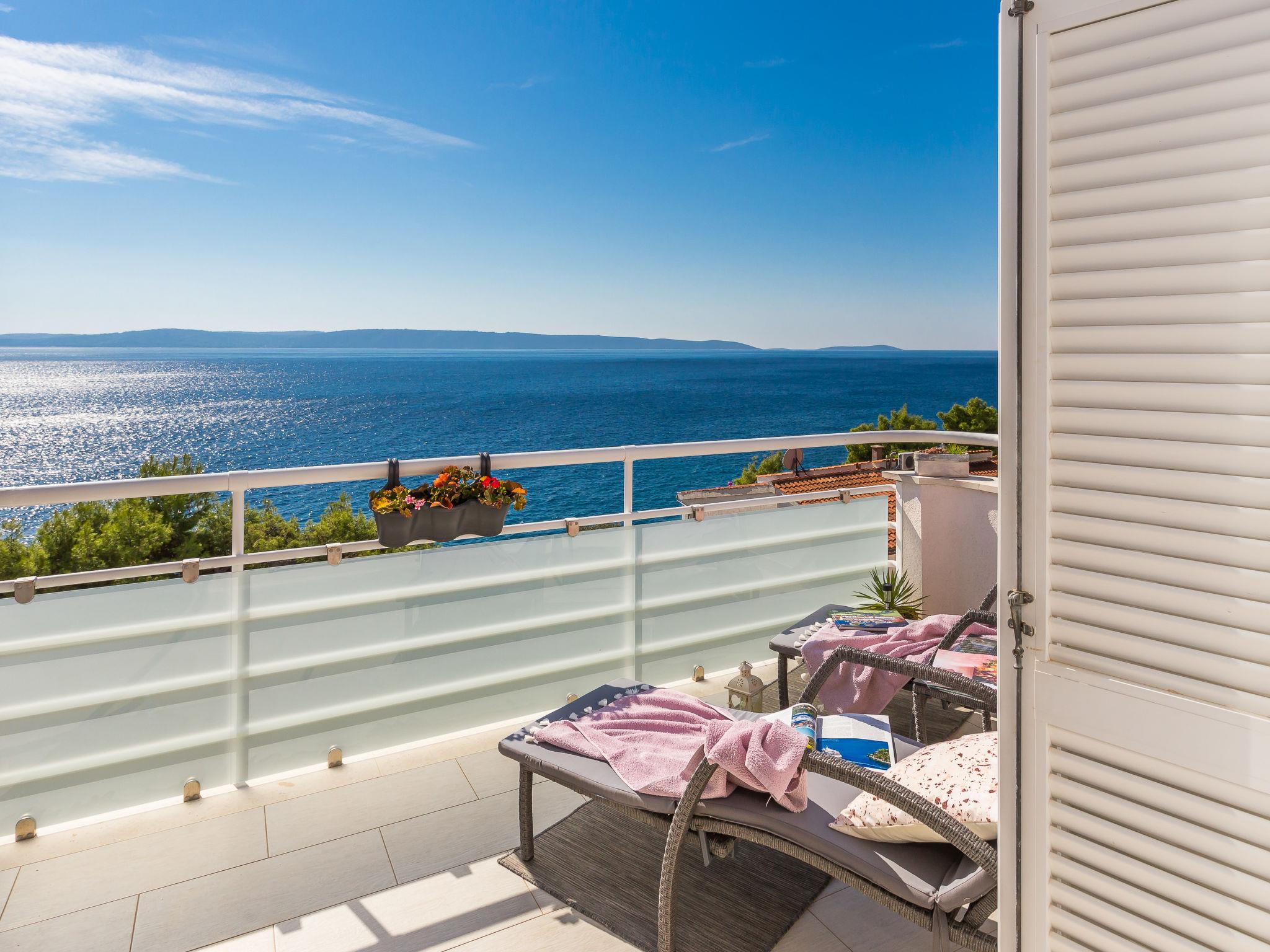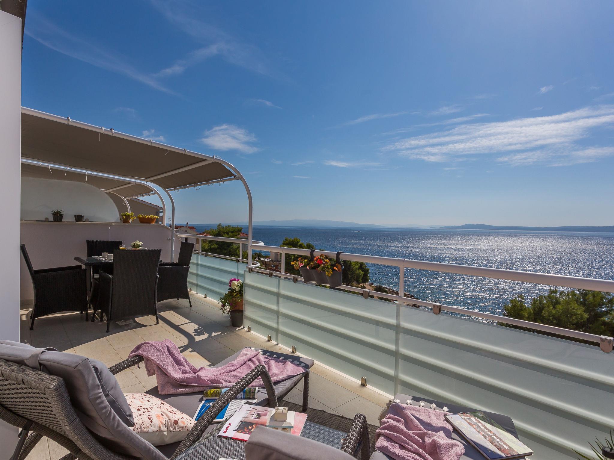3-room apartment 83 m2 on 2nd floor. Beautiful and tasteful furnishings: living/dining room 28 m2 with satellite TV, DVD and air conditioning. Exit to the terrace. 1 room with 1 french bed (160 cm, length 200 cm), shower/bidet/WC. 1 room with 1 french bed (180 cm, length 200 cm). Exit to the balcony. Open kitchen (4 hot plates, oven, dishwasher, freezer). Shower/bidet/WC. Small balcony, terrace 20 m2, south facing position. Terrace furniture. Marvellous view of the sea. Facilities: Internet (WiFi, free). Please note: maximum 1 pet/ dog allowed.