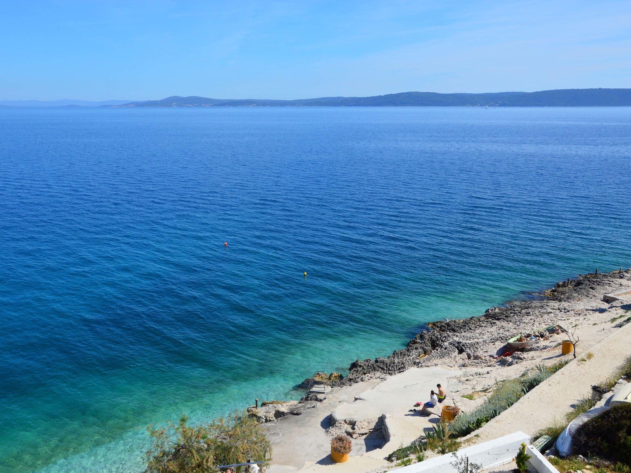 Okrug Gornji (Ciovo) 6 km from Trogir: Apartment house "Borka". 2 km from the centre of Okrug Gornji, in a quiet, sunny position, 30 m from the sea, 30 m from the beach, in a cul-de-sac. For shared use: property 250 m2 (fenced). Terrace (50 m2), garden furniture, barbecue. In the house: internet access. Parking at the house on the premises. Shop 850 m, restaurant 1 km, bus stop 2 km, rocky beach 30 m. Tennis 2.5 km. Please note: airfield 10 km from the property.